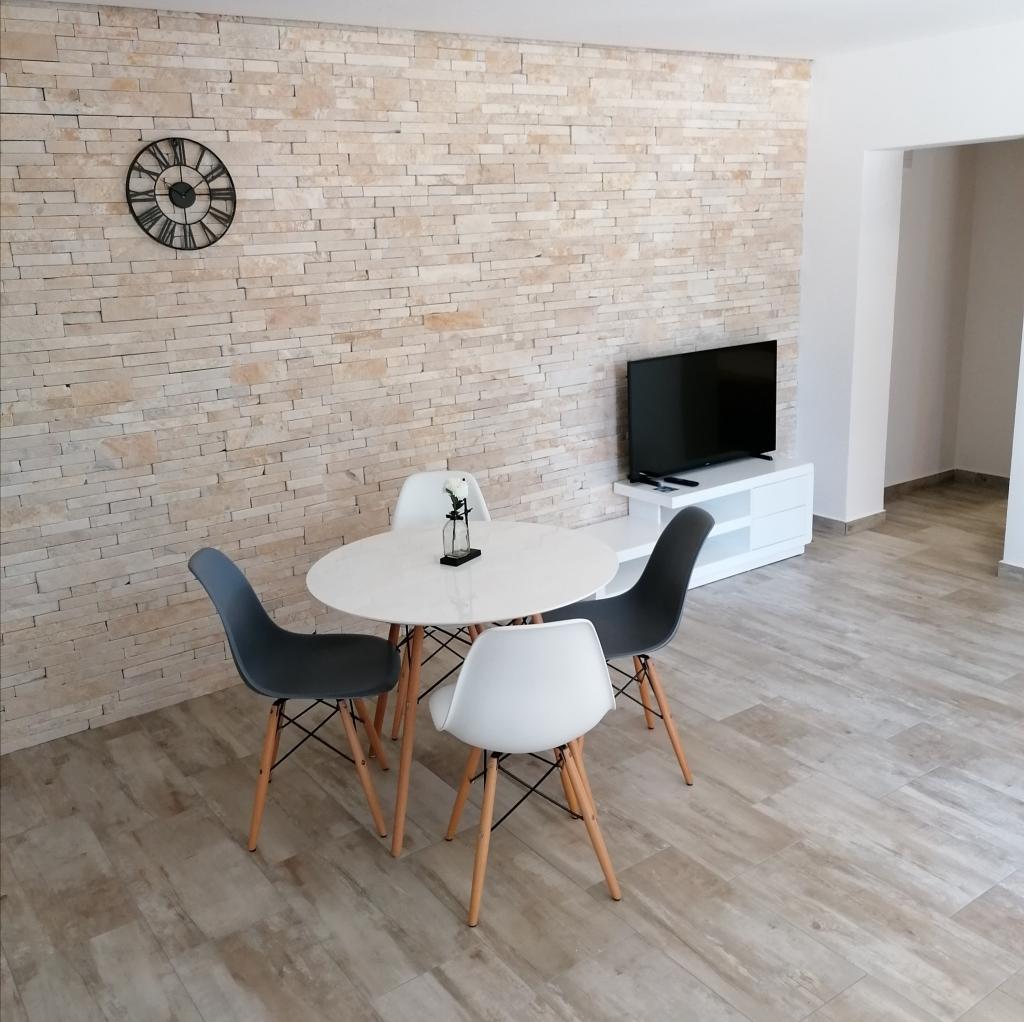 Die Wohnung ist brandneu, sauber und modern eingerichtet. Die Umgebung ist recht ruhig und eignet sich daher besonders für einen ruhigen Familienurlaub. Ein Kinderspielplatz ist vorhanden. Die Wohnung befindet sich auf der Rückseite des Hauses, wo die Sonne nur in den frühen Morgenstunden scheint.