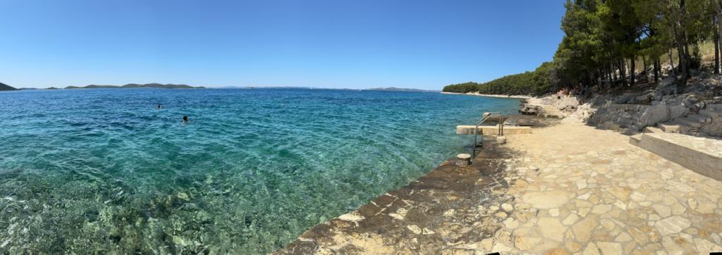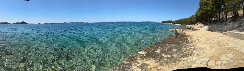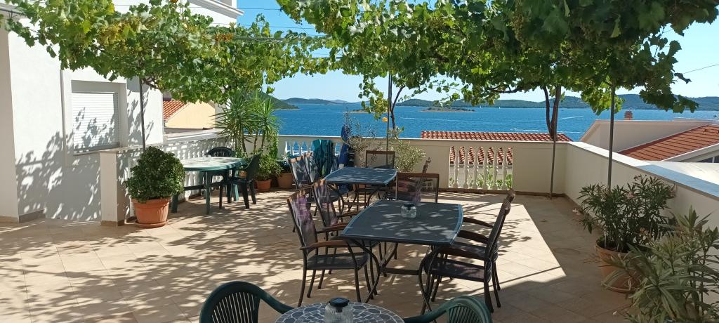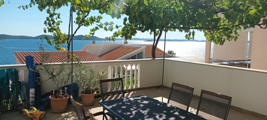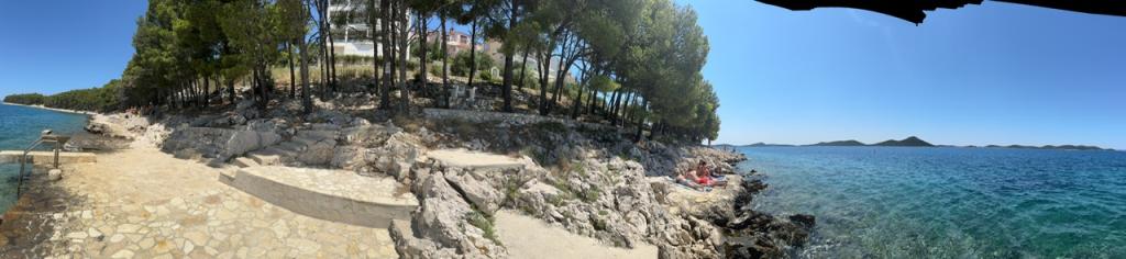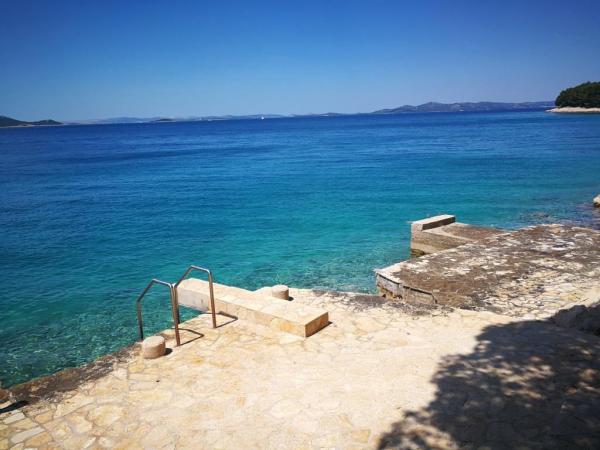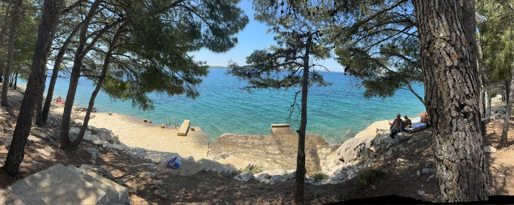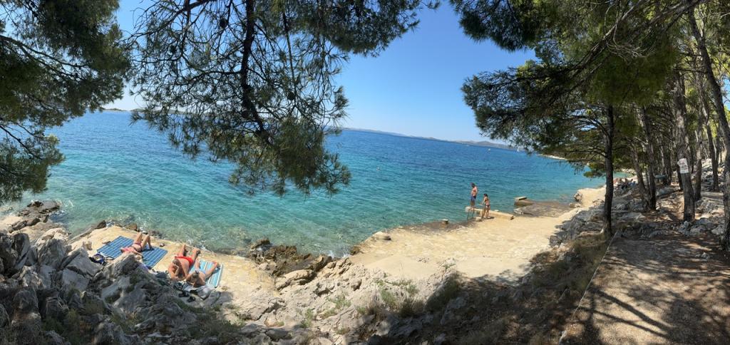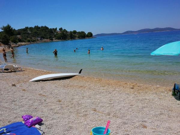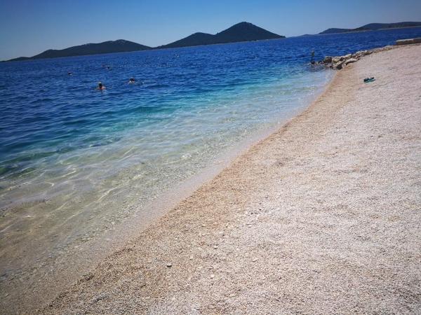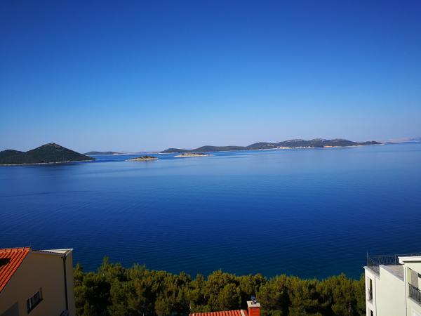 Die komplett und modern ausgestatteten Apartments befinden sich in einem neu gebauten Haus im ruhigsten Teil der Bucht, nur 30 m vom Meer entfernt. Eine echte Oase der Ruhe und Stille mit kristallklarem Meer. Vom Haus zu unserem gepflasterten Strand können Sie die Treppe direkt hinuntergehen. Der Strand befindet sich in unmittelbarer Nähe eines Kiefernwaldes mit Liegewiesen. In den benachbarten Buchten gibt es zwei größere Kieselstrände und viele kleinere und größere gepflasterte und felsige Strände. Alle Apartments bieten einen herrlichen Blick auf das Meer (Kornati-Archipel). Das Haus verfügt außerdem über eine große Gemeinschaftsterrasse (100 m²) mit Steingrill und herrlichem Meerblick. Wir haben eine Garage für 4 Autos und 4 Parkplätze neben dem Haus. Möglichkeit zu Spaziergängen im Kiefernwald auf dem gepflegten, abends beleuchteten Weg am Meer. Ein 15-minütiger Spaziergang bringt Sie zum Geschäft und Restaurant.