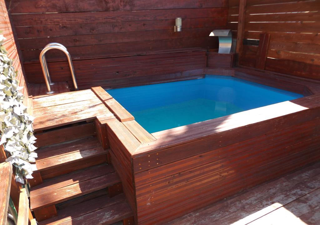 Kleiner Pool, Sonnenliegen, überdachter Parkplatz, jedes Apartment verfügt über einen eigenen Balkon, eine Terrasse zum Sitzen, einen Grillplatz und einen überdachten Sitzbereich.