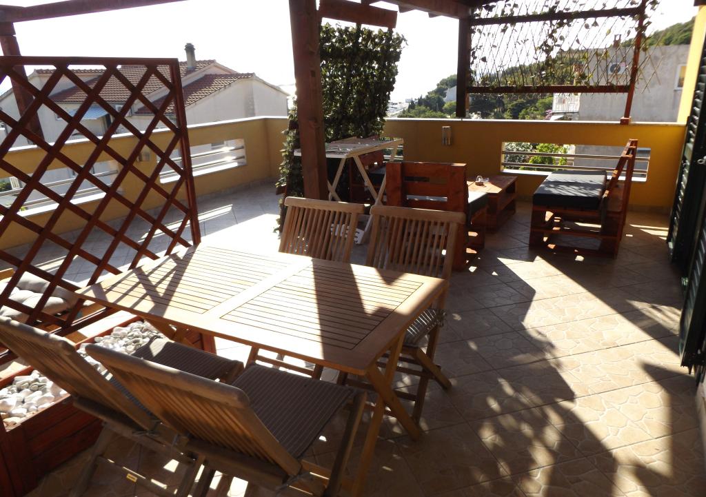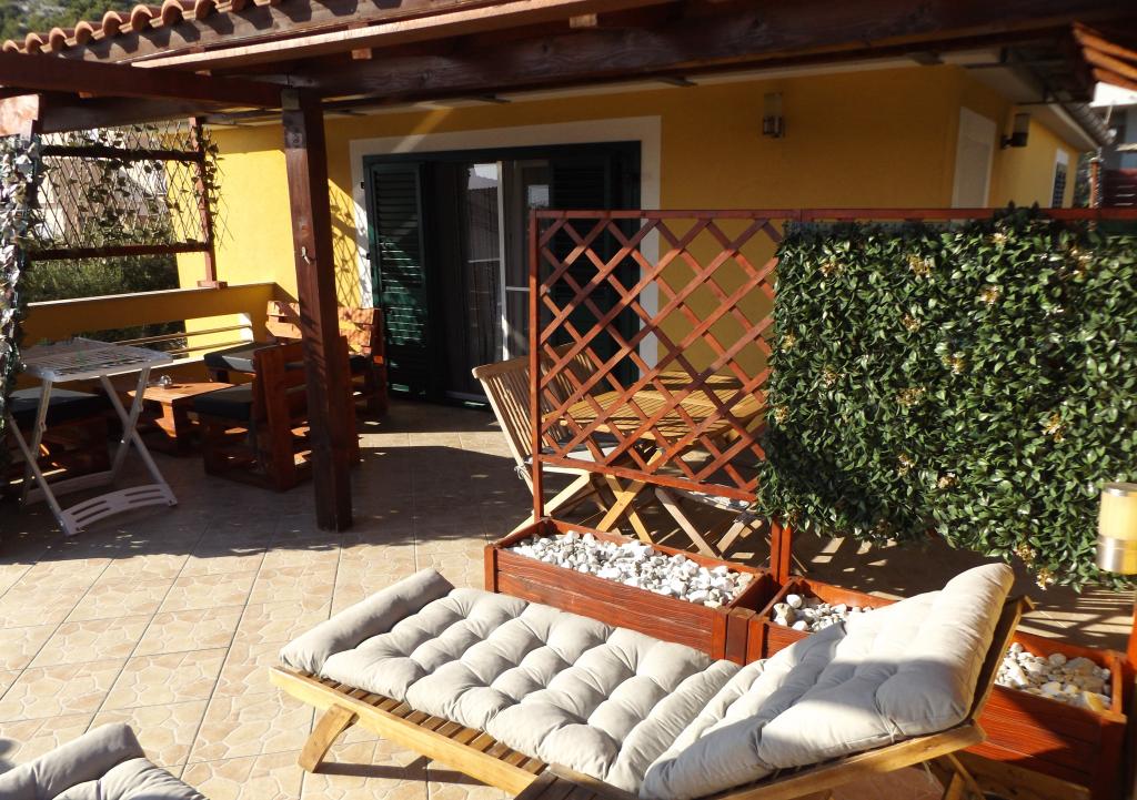 Voll ausgestattete Apartments in ruhiger Lage. Das Haus befindet sich in der Nähe aller Annehmlichkeiten, alles ist im Umkreis von 500 m erreichbar. Den Gästen stehen ein kleiner Pool mit Liegestuhl, ein überdachter Sitzbereich, ein Grill und ein zusätzlicher Tisch für den Grill zur Verfügung.