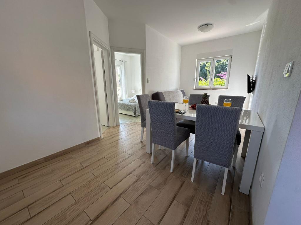 Willkommen in den Apartments Majna – die perfekte Wahl für einen entspannten und genussvollen Urlaub in Draga. Unsere Apartments sind neu renoviert, modern ausgestattet und bieten maximalen Komfort. Jedes Apartment verfügt über eine eigene Klimaanlage, die Ihnen auch im Sommer, unabhängig von der Hitze, einen angenehmen Aufenthalt garantiert. Ein besonderes Highlight unserer Anlage ist die geräumige Taverne mit großer Bar und Kamin (Grill), die allen Gästen zur Verfügung steht. Sie ist der ideale Ort zum geselligen Beisammensein, für gemütliche Abende, zum gemeinsamen Kochen und um eine entspannte, heimelige Atmosphäre zu schaffen. Die Apartments Majna bieten die perfekte Kombination aus Privatsphäre und geselligem Beisammensein – egal ob Sie einen ruhigen Urlaub verbringen oder Zeit mit Familie und Freunden genießen möchten. Überzeugen Sie sich selbst, warum unsere Gäste so gerne wiederkommen.