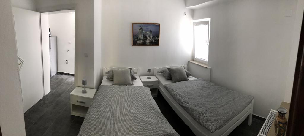 Sehr ruhiger und friedlicher Ort, nur für einen Urlaub ohne die Menschenmassen und den Verkehr der Stadt. Es gibt wirklich alle Arten von Stränden - von Sand für Kinder, Kies, Beton, aber auch solche in Einsamkeit, außerhalb des Ortes, für Ihre absolute Privatsphäre. Das Meer ist unbeschreiblich sauber und lädt zum Schwimmen ein. Sie haben weniger als 10 Gehminuten zum Strand, je nachdem, für welche Seite Sie sich entscheiden. Die Wohnungen selbst sind neuere Bauweise. Wohnung 1 hat eine riesige Lobby mit Grill und Tisch im Erdgeschoss. Wohnung 2 hat eine Terrasse von ca. 20 qm mit Tisch und Grill. Haustiere sind willkommen. Alles andere ist auf Bildern und Google Maps. Kontaktieren Sie uns für alles, was Sie interessiert, per E-Mail, WhatsApp, Viber oder Mob.