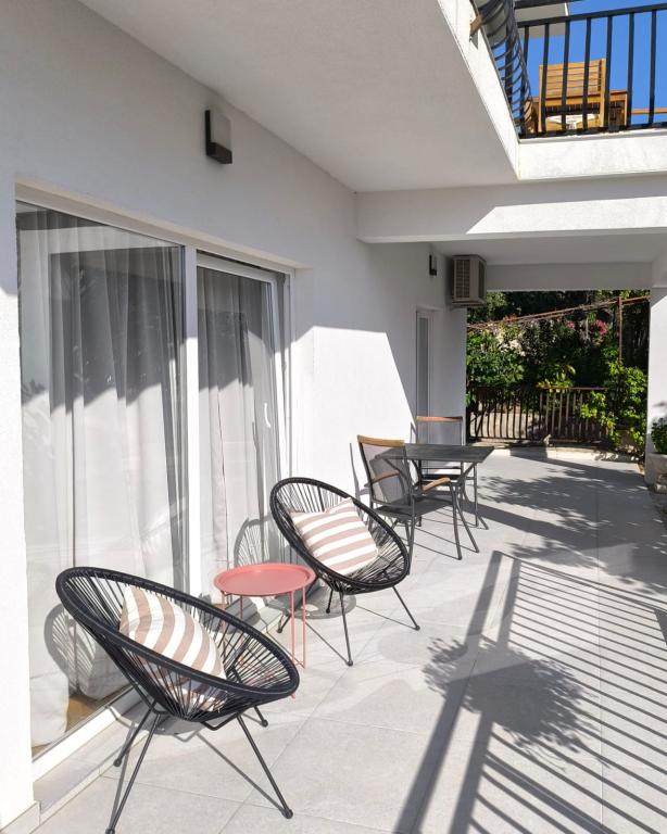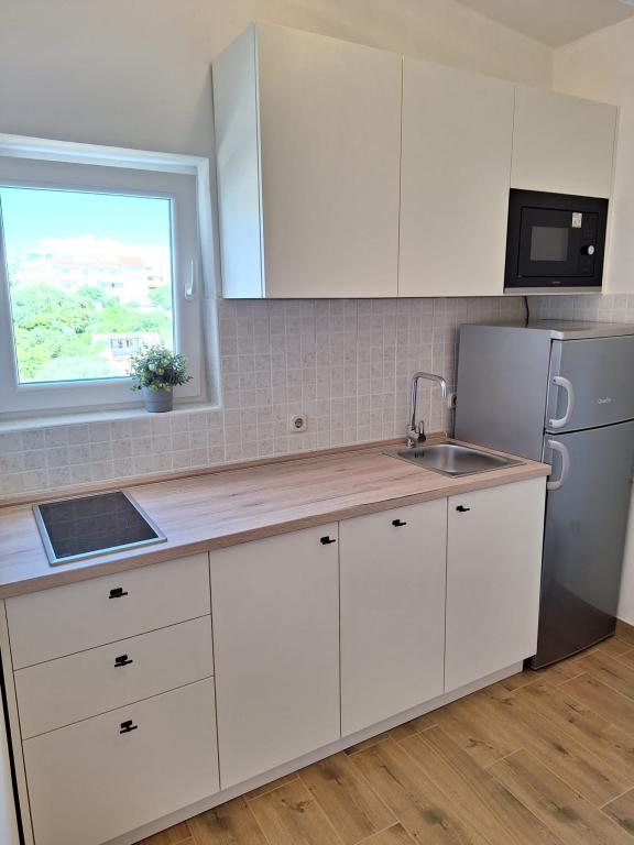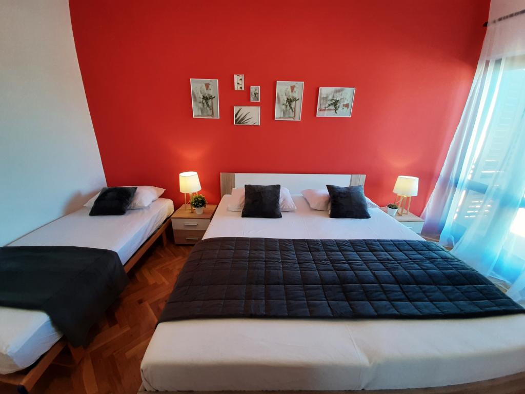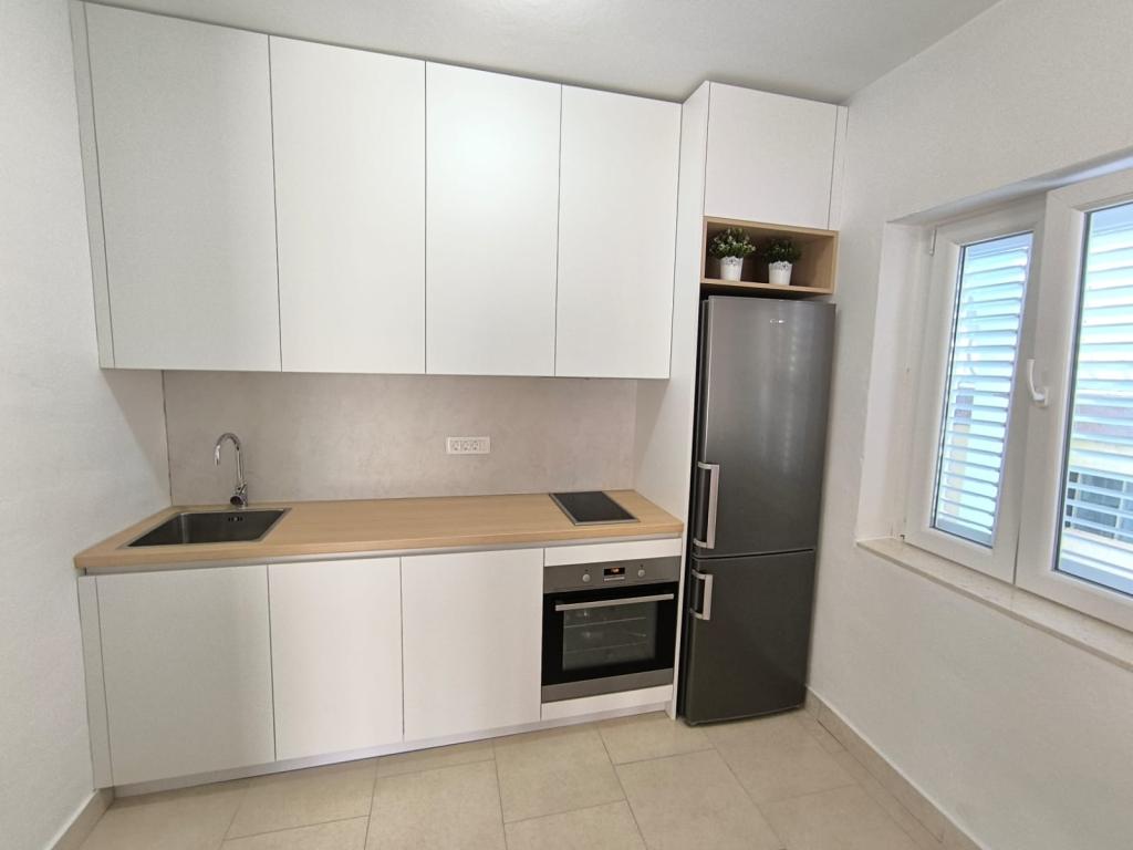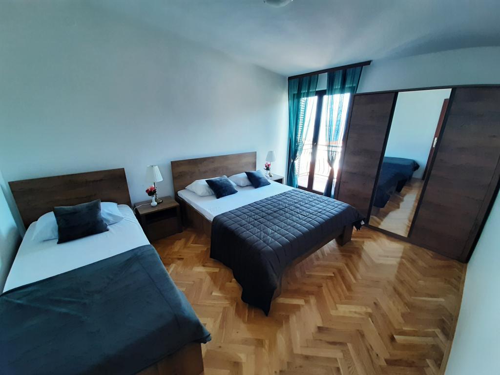 Voll ausgestattete Apartments (Herd, Kühlschrank, Besteck und Koch) und Sat-TV und Parkplätze direkt neben dem Objekt in Drage, nur 200 Meter vom Strand entfernt. Die Appartements bestehen aus einem oder zwei Schlafzimmer, ein Badezimmer mit WC, Dusche, Küche, Esszimmer und Terrasse auf das Meer und die Inseln der schönen Riviera mit Blick auf. Alle notwendigen Einrichtungen (Restaurants, Geschäfte, Bäckereien, Cafés ..) ist nur 2 Minuten vom Haus entfernt. Schließen Vrana See und Kornati beitragen Drage perfekte Ort für einen Urlaub zu verbringen.