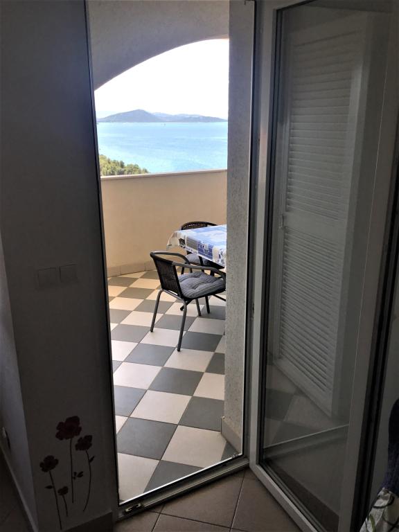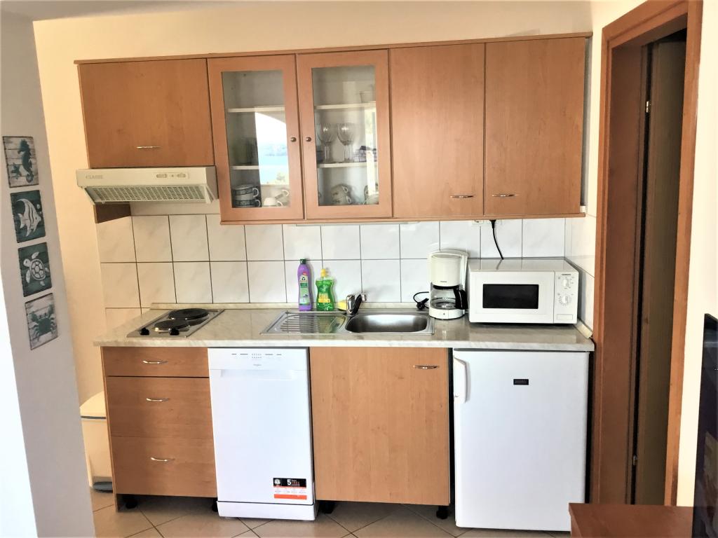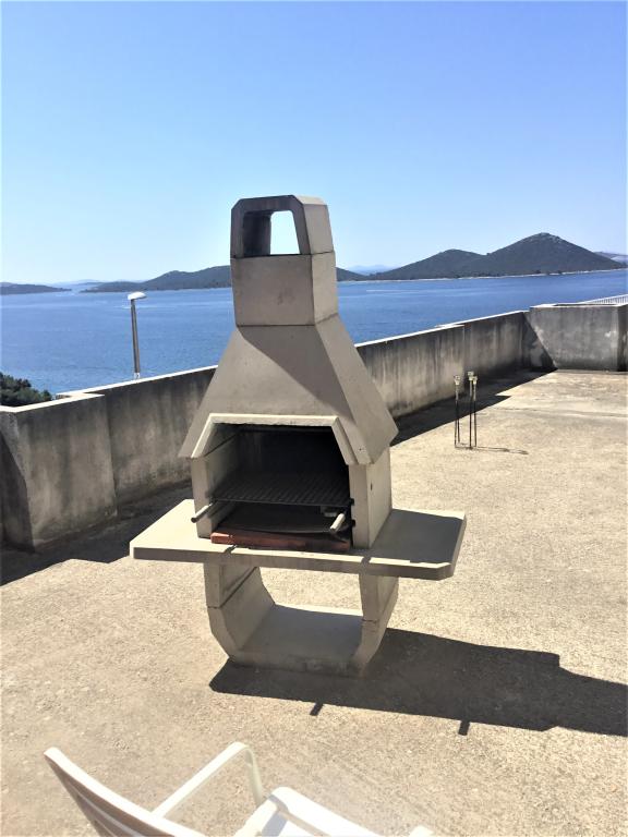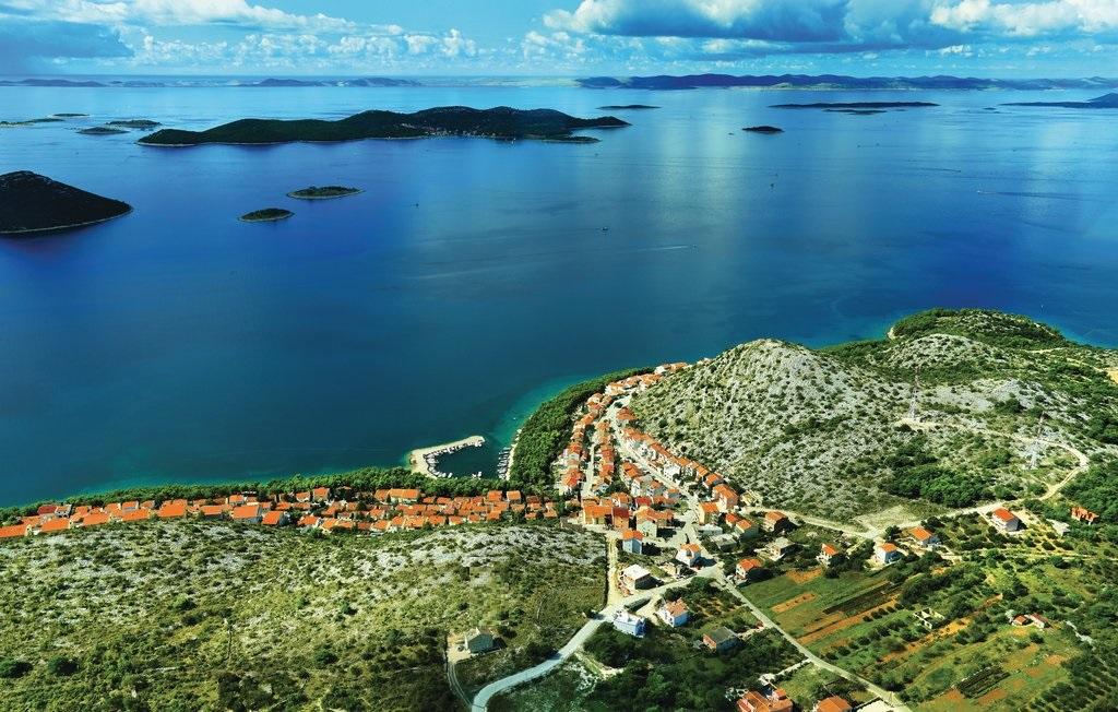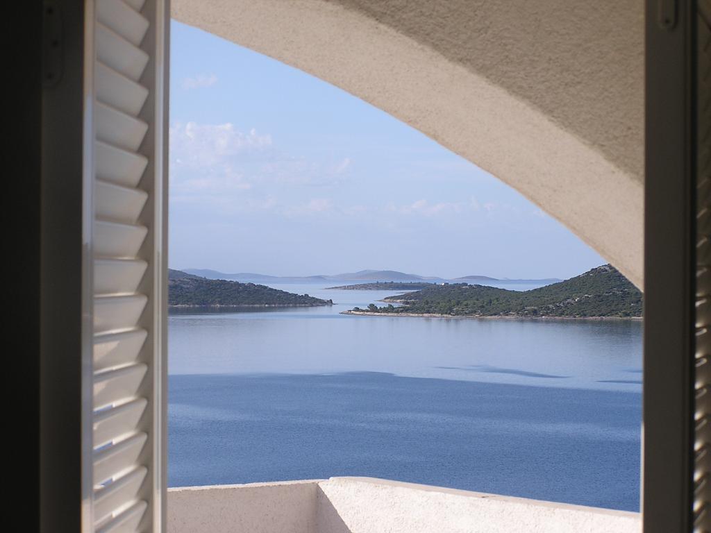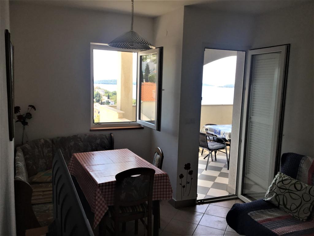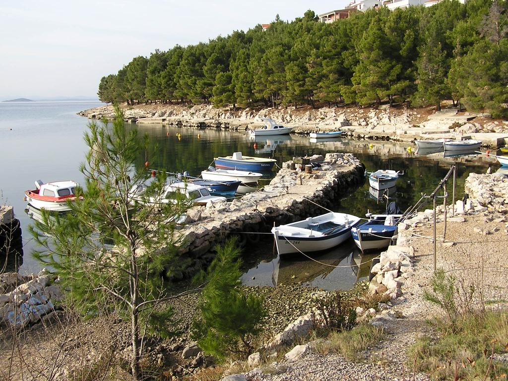Das Anwesen befindet sich in der dritten Reihe des Feriendorfes Dolaška draga, einem Ortsteil von Drage, ca. 100 m Luftlinie vom Meer und den Stränden entfernt, die sich entlang des Feriendorfes bis zum dichten Kiefernwald und der Promenade erstrecken. Dank der erhöhten Lage des Anwesens (ca. 50 m über dem Meeresspiegel) bieten alle Apartments und Terrassen einen wunderschönen Panoramablick auf das Feriendorf, den Hafen, die umliegenden Strände, die nahegelegenen Inseln sowie die Stadt Murter und die Kornati-Inseln in der Ferne. Die Entfernung zum Meer (Strände umgeben von dichten Kiefernwäldern und einer Promenade) beträgt ca. 300 m über die Zufahrtsstraße durch das Feriendorf Dolaška draga; zu Fuß entlang der Straße ca. 10 Minuten oder mit dem Auto 2 Minuten. Das Meer ist zu Fuß in nur 5 Minuten erreichbar, wenn man ein kurzes Stück der Zufahrtsstraße und eine der Treppen im Wochenenddorf benutzt, das speziell für den Zugang zum Meer, Strand, zur Promenade, zum Pinienwald, zum Hafen, zum Café usw. angelegt wurde. Die Anlage verfügt über zwei Apartments (im 2. und 3. Stock), von denen nur das Apartment im 2. Stock vermietet wird. Die Gastgeber (2–4 Personen) wohnen im Sommer im Apartment im 3. Stock und stehen den Gästen daher täglich zur Verfügung, ohne deren Ruhe und Privatsphäre zu stören. Gästen steht ein Pkw-Stellplatz in der Garage der Anlage zur Verfügung. Auf der 80 m² großen Panoramaterrasse über der Garage (1. Stock) können sie die vorhandenen Geräte (Grill, Gartentisch mit 4 Stühlen und 2 Liegestühle) uneingeschränkt nutzen.