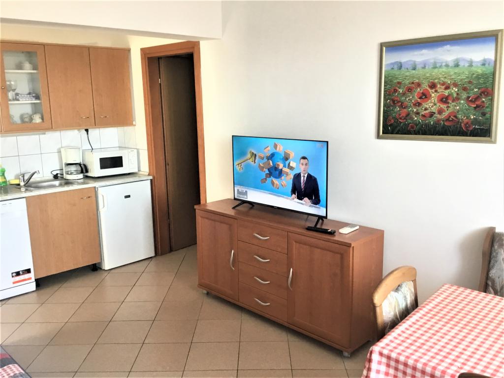 Mehr lesen UnterkunftseinheitenDie Reservierungsbestätigung für den gewählten Zeitraum (Gutschein) wird dem Gast nach Eingang der Anzahlung (30 % des Gesamtmietpreises) auf das Bankkonto des Vermieters per E-Mail zugesandt. Die angegebenen Mietpreise gelten für bis zu 4 Personen. Für eine 5. Person wird (nach vorheriger Absprache mit dem Vermieter) ein Aufpreis von 20 EUR pro Nacht berechnet. Der Restbetrag bis zur vollen Miete ist beim Einzug in die Wohnung an den Vermieter zu entrichten. Der Einzug ist am Anreisetag ab 14:00 Uhr und am Abreisetag bis 10:00 Uhr möglich. Eine frühere Anreise oder spätere Abreise ist je nach Verfügbarkeit und nach vorheriger Absprache mit dem Vermieter möglich. Dem Gast steht ein Parkplatz in der Tiefgarage des Gebäudes zur Verfügung. Die Nutzung der Waschmaschine ist nach Absprache mit dem Vermieter möglich. Die angegebenen Übernachtungspreise beinhalten: - Kurtaxe - Nutzung eines Parkplatzes in der Tiefgarage der Anlage - Nutzung einer offenen Panoramaterrasse (80 m²) mit Ausstattung (Grill, Gartentisch mit 4 Stühlen, 2 Sonnenliegen) - Strom- und Wasserverbrauch - Nutzung der Klimaanlage - Internetnutzung - Endreinigung des Apartments