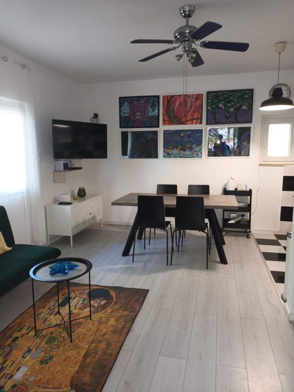 Genießen Sie unser komplett neu renoviertes Apartment im Schatten der Terrasse mit Blick auf das klare Meer! Die Wohnung befindet sich im Erdgeschoss der Villa und ist von einem großen, schattigen Innenhof umgeben in der ersten Reihe zum Meer. Verbringen Sie die Hitze des Nachmittags in unserem duftenden Garten, schlürfen Sie kalte Cocktails und warten Sie auf den schönsten Sonnenuntergang! Bei uns haben Sie alles in Reichweite: ein Getränk an der nahegelegenen Strandbar, Abendessen in der Pizzeria nebenan, alle möglichen Aktivitäten am Strand, ein Buch lesen im Schatten alter Pinien am Meer, ein Kinderspielplatz im Schatten, eine beleuchtete Promenade am Meer. Machen Sie sich keine Gedanken um das Parken – im Hof ist ein Parkplatz für Sie vorhanden. Da wir große Tierliebhaber sind, sind Ihre Haustiere herzlich willkommen!