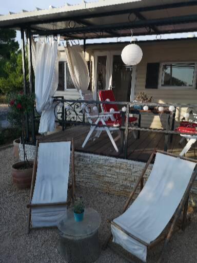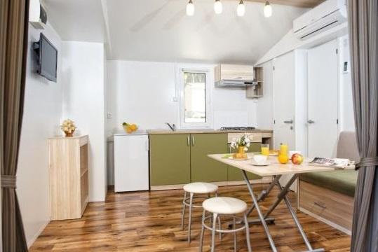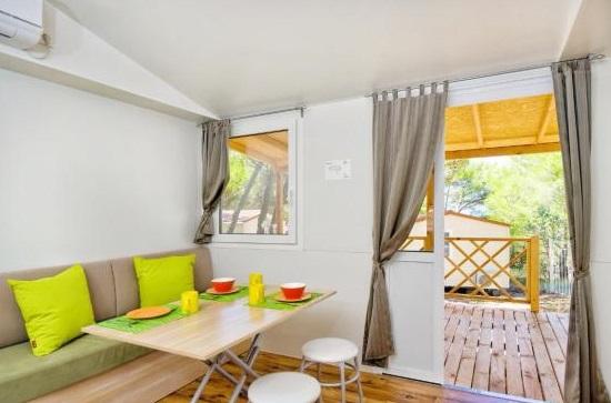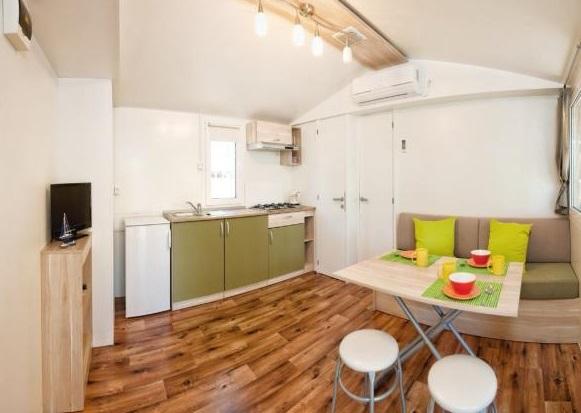 Klimatisiertes Mobilheim 30 m vom Meer entfernt mit 2 Schlafzimmern, Küche, 2 Bädern, Wohnzimmer, Terrasse, Parkplatz, Außendusche, Grill, Liegestühlen und Privatparkplatz. Haustiere sind erlaubt.