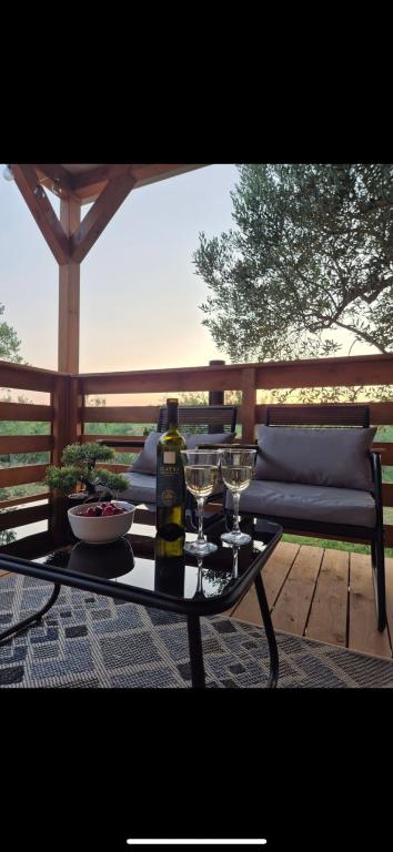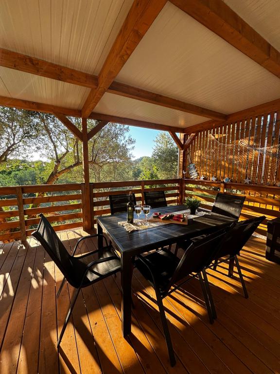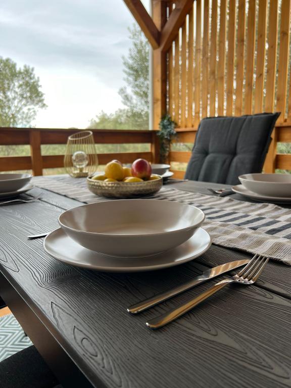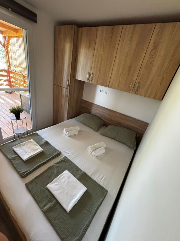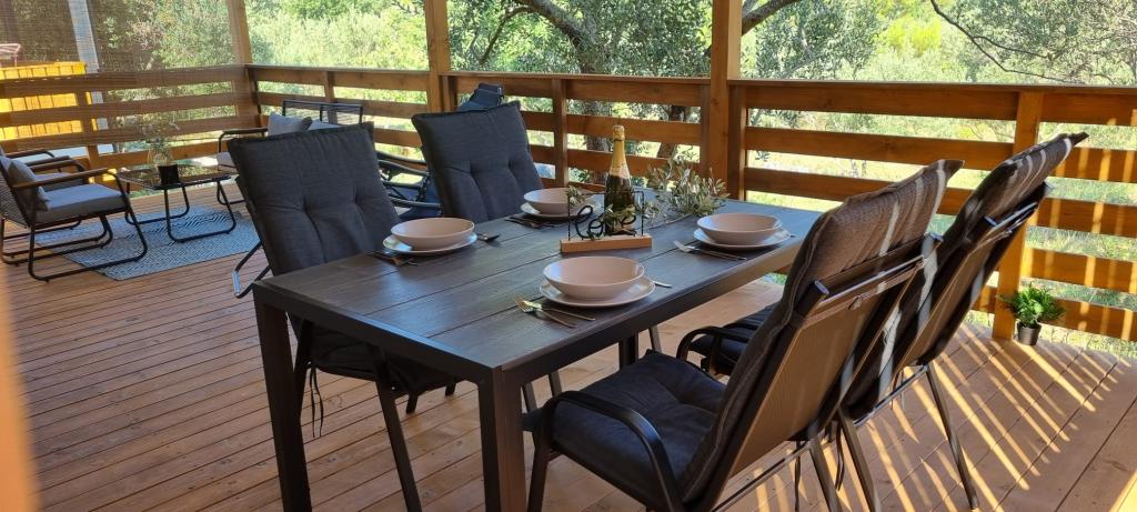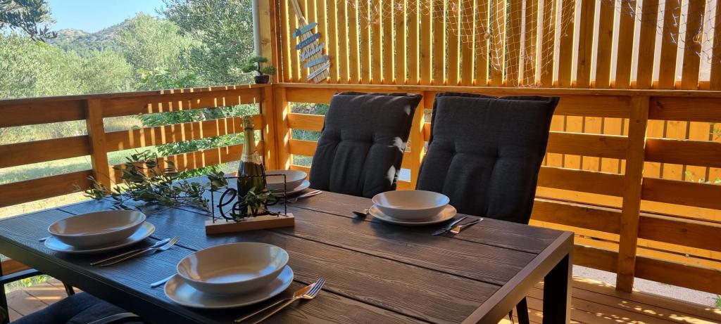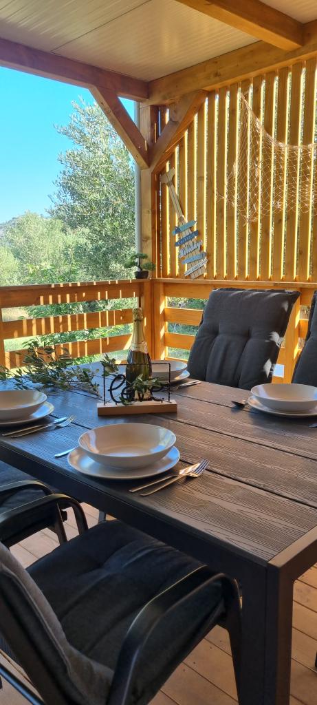 Olive Nest ist ein Mobilheim, das ab 2024 verfügbar ist. Das komplett ausgestattete, modern gestaltete Haus ist 32 m² groß und verfügt über eine ebenfalls 32 m² große, überdachte Außenterrasse. Es verfügt über ein Schlafzimmer mit Doppelbett, ein Zimmer mit zwei Einzelbetten und ein Ausziehbett für zwei Personen. Im Inneren befinden sich eine Küche mit Essbereich und ein Badezimmer (WC, Dusche, Waschbecken). Die überdachte Terrasse lädt zum Entspannen ein. Auf der Terrasse steht ein Esstisch. Erleben Sie einen Urlaub im Herzen Dalmatiens! ️- 1 Zimmer (Doppelbett) – 2 Zimmer (zwei Einzelbetten) – Ausziehbett für zwei Personen – tragbares Kinderbett für ein Kind bis 2 Jahre – 1 Badezimmer (Dusche und Waschbecken) – große Terrasse 32 m² mit einem Tisch für 6 Personen und einem Wohnbereich – WLAN – Fernseher – Geschirrspüler – Elektrogrill – Außendusche – ausgestattete Küche – kostenloser Parkplatz – Staubsauger – Haartrockner – Waschmaschine