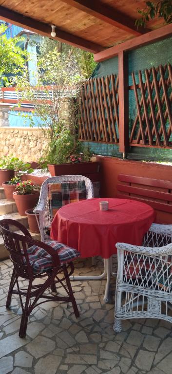 Das Familienhaus mit Apartments befindet sich in Dramalj, in einer ruhigen Gegend, 15 Gehminuten von der Promenade am Meer entfernt, die Dramalj mit Crikvenica verbindet. Das Apartment A3 2 besteht aus einer ausgestatteten Küche mit Esszimmer, einem Badezimmer, 2 Schlafzimmern, eines davon mit einem Doppelbett und das andere mit einem Doppelbett, einem Wohnzimmer und einer unabhängigen Terrasse außerhalb des Hauses. . Das Apartment A4 2 im Erdgeschoss besteht aus einer ausgestatteten Küche, einem Esszimmer auf der Veranda, mit 2 Schlafzimmern, eines mit einem Doppelbett, das andere mit 2 Betten und einem Wohnzimmer für 2 Personen, einem Badezimmer und einer Terrasse mit Grill am Eingang. Das Apartment A6 2 im 2. Stock besteht aus einer ausgestatteten Küche mit Esszimmer, 3 Schlafzimmern, alle mit einem Doppelbett, einem Wohnzimmer mit einer Couch für 2 Personen, 2 Badezimmern. Die Wohnung verfügt über eine 10 m große Loggia mit direktem Blick auf das Meer. Alle Wohnungen verfügen über Fernseher und WLAN. Neben dem Haus gibt es einen privaten Parkplatz für Gäste und einen Grill im Hof. auf einer von zwei Terrassen mit Blick auf das Meer