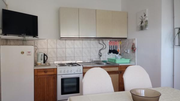 Die Wohnung befindet sich in Dramalj, der Straße von Milovan Muževiža 116. Das Zentrum von Crikvenica ist mit dem Stadtbus, dem Stadtboot und einem attraktiven touristischen Zug verbunden. Das Haus verfügt über mehrere Wohneinheiten, die sich im 1. Stock eines Einfamilienhauses befinden und der Rest davon sind Eigentümer. Wohnungen sind vom Meer ca. 5 min entfernt. Gehen Sie zum Supermarkt und genauso zum Strand. Ideal für kleine Familien. Die Wohnung besteht aus einem Schlafzimmer mit Doppelbett und Zustellbett, voll ausgestatteter Küche, Bad und Flur. Der Eingang zur Wohnung ist von der Rückseite des Hauses und kommt direkt in die Küche, von der aus man einen schönen Blick auf das Meer und die Insel Krk hat, sowie einen Balkon vor dem Schlafzimmer.