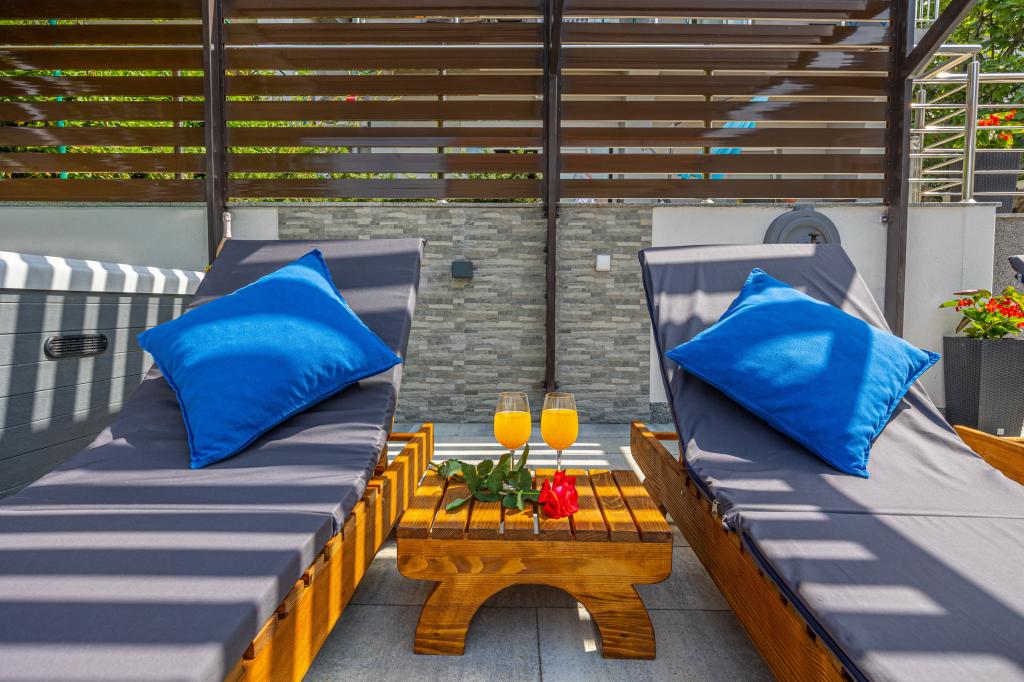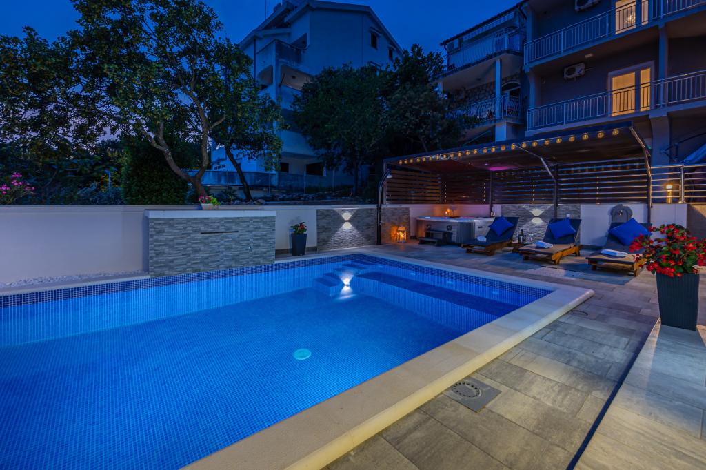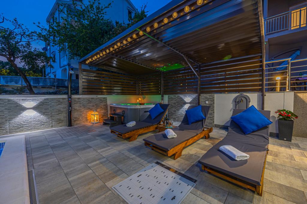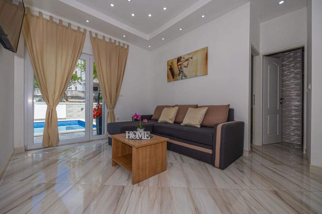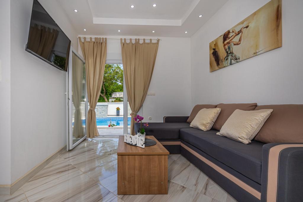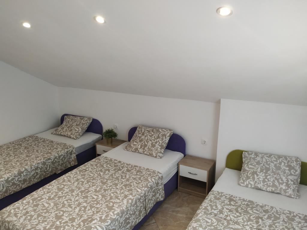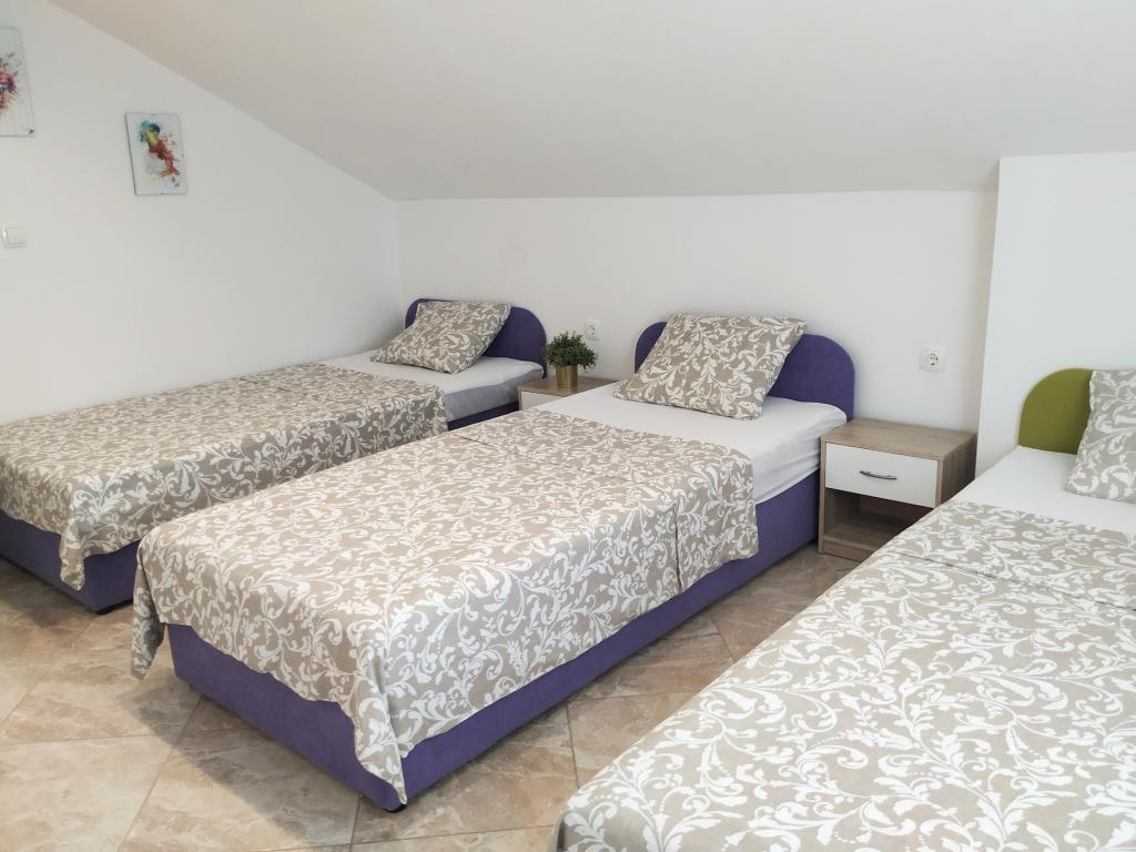 Das Familienhaus mit Apartments befindet sich in Dramalj, einem ruhigen Teil der Riviera von Crikvenica, nur 400 m von der Strandpromenade entfernt, die Dramalj mit Crikvenica verbindet. Die Apartments A2 + 2 bestehen aus einer ausgestatteten Küche mit Essbereich, Bad, 2 Schlafzimmern, eines mit einem Doppelbett und das andere mit einem Bett für 2 Personen und einem Balkon mit Meerblick. Die Apartments A3 bestehen aus einer ausgestatteten Küche mit Essbereich, einem Badezimmer, 1 Schlafzimmer mit einem Doppelbett und einem Einzelbett sowie einem Balkon mit Meerblick. Das Apartment A5 besteht aus einer ausgestatteten Küche mit Wohnzimmer, 2 Schlafzimmern, eines mit einem Doppelbett und das andere mit 3 Einzelbetten. Die Wohnung verfügt über eine geräumige Terrasse von 20m2 mit direktem Meerblick. Alle Apartments verfügen über Klimaanlage, TV und WLAN. Neben dem Haus gibt es einen privaten Parkplatz für die Gäste und im Hof einen Grill. .