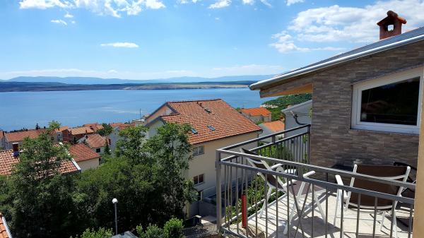 Dramalj ist eine ruhige Urlaubsoaze weg vom Massentourismus.Unsere Ferienwohnung im Dachgeschoß hat 55m2 und verfügt über zwei seperate Schlafzimmer mit Doppelbetten.Das Wohnzimmer hat ein Sofa (Schlafmöglichkeit),Klimaanlage, Sat-TV, kostenloser WI-FI und ist mit der Küche verbuden. In der Küche mit Eßbereich sind Kühlschrank und Gefrierfach, Gasherd / Strom, Kaffeemaschine und andere Bedürfnisse.Der Balkon bietet eine traumhafte Panoramaaussicht auf das Meer und die Insel Krk.Das Bad hat eine Duschkabine.Die zweite Wohnung im Erdgeschoß mit 48m2 und zwei Schlafzimmern, eines mit Doppelbett und TV mit kroatischen Programmen,das zweite mit Sofa (für 2 Personen).Badezimmer mit Dusche.Das Eßzimmer mit Sat-TV,Stereoanlage kostenloser WI-FI.Die Küche im gleichem Raum.Eine große Terrasse mit Gartenmöbel lockt zum Kaffee am Morgen.Grillgelegenheit Strandentfernung 700 m.