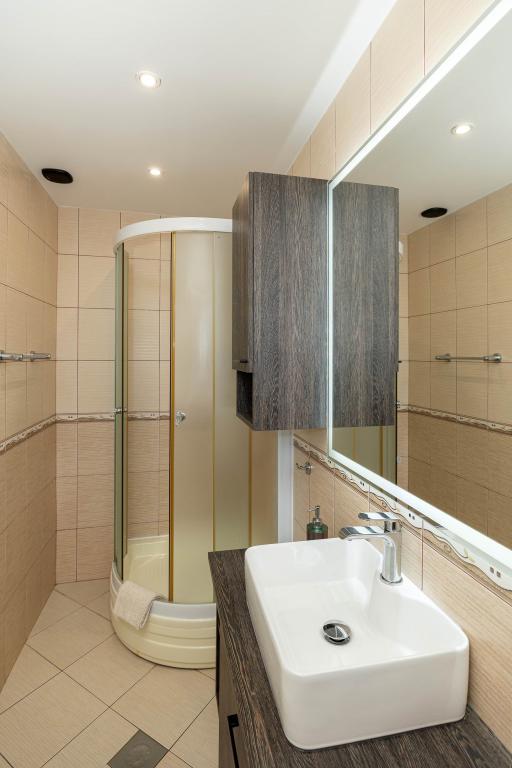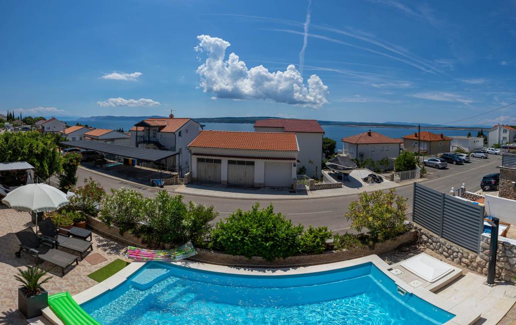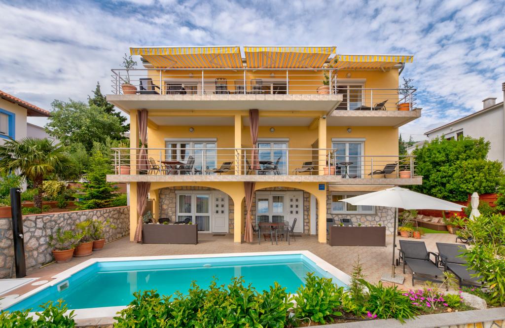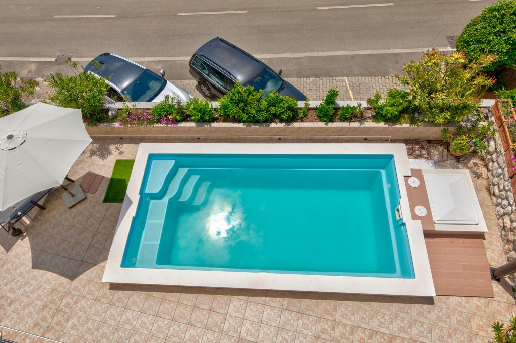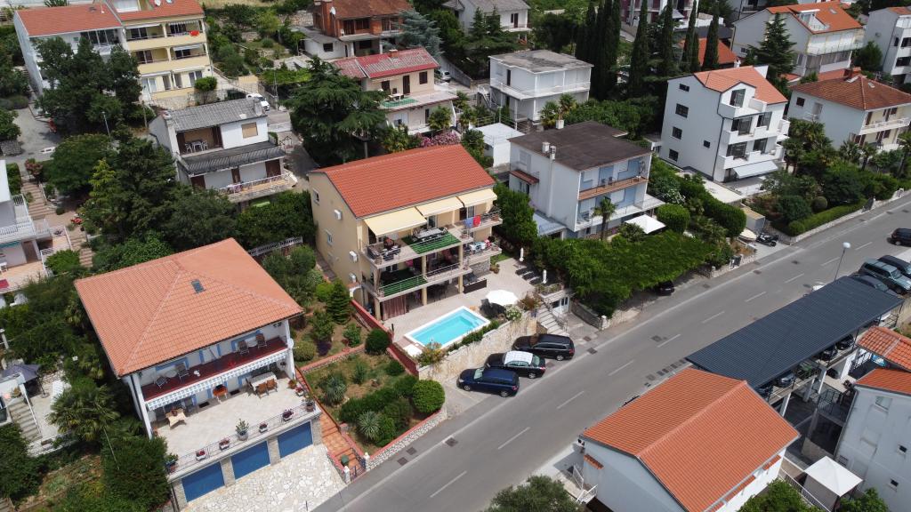 Das Haus mit modernen und gut ausgestatteten Apartments liegt in zweiter Reihe vom Meer entfernt, in der Nähe eines Restaurants, eines Marktes und einer Bäckerei. Die Anlage verfügt über eine großzügige Terrasse mit Swimmingpool, Liegestühlen und einem Außengrill. Vor dem Haus gibt es einen Parkplatz für Gäste. Im Erdgeschoss befinden sich das Studio-Apartment A1 (ID:45200) und das Apartment A2 (ID:45382) mit zwei Schlafzimmern, zwei Badezimmern und einem geräumigen Wohnzimmer mit Küche. Im 1. Stock befinden sich die Wohnungen A4 (ID:45381), A5 (ID:45380) und A6 (ID:45235) mit Meerblick und im letzten Stock befindet sich die Penthouse-Wohnung A7 (ID:45234), die außergewöhnlichen Komfort bietet.