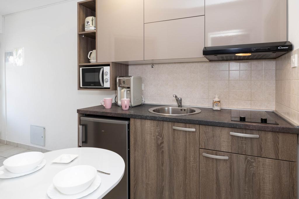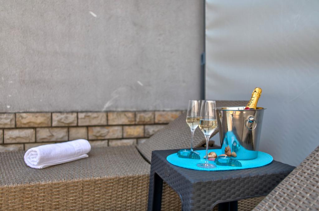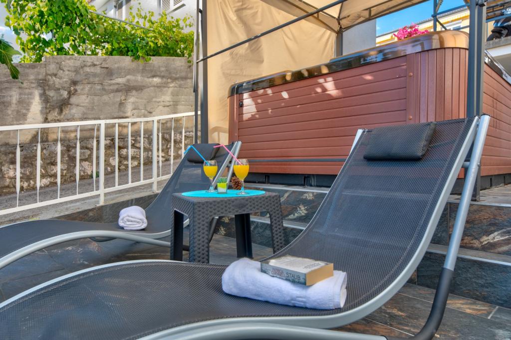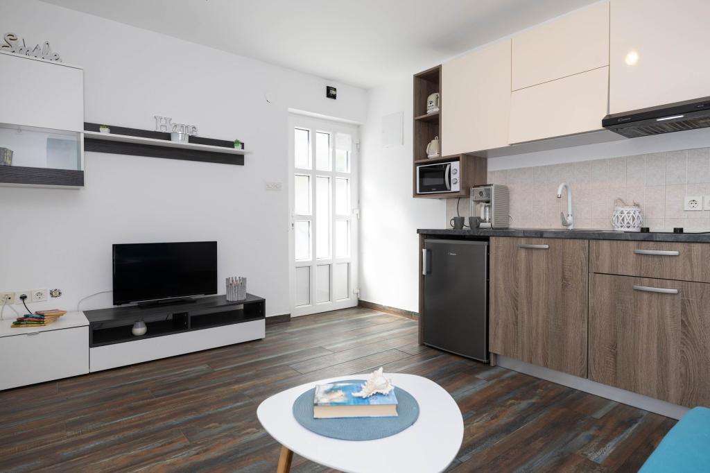 Kurtaxe ist im Preis inbegriffen.Wir können diese Apartments wärmstens empfehlen. Alles ist erstklassig und wie beschrieben. Die Apartments und die Umgebung sind sauber und gepflegt. Die Besitzer sind sehr freundlich. Der Pool war nach einem heißen Tag fantastisch. Die Terrasse mit Meerblick ist ein großes Plus. Die Entfernung zum Meer ist zwar kurz, aber dennoch etwas weit. Der gesamte Ort liegt verkehrsgünstig. Ich hoffe, irgendwann wieder dorthin zurückkehren zu können.