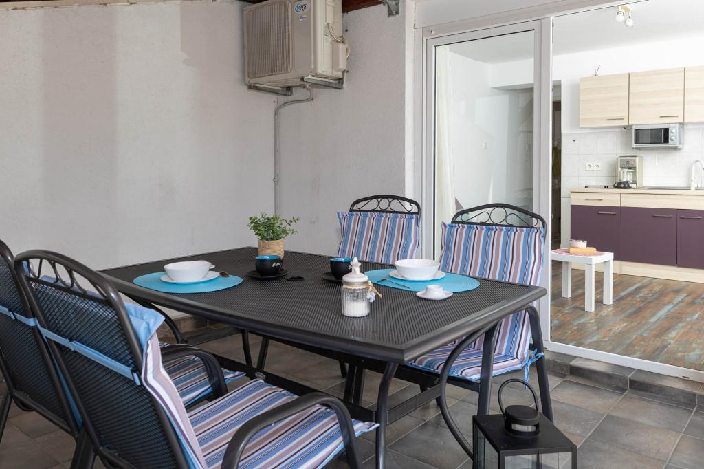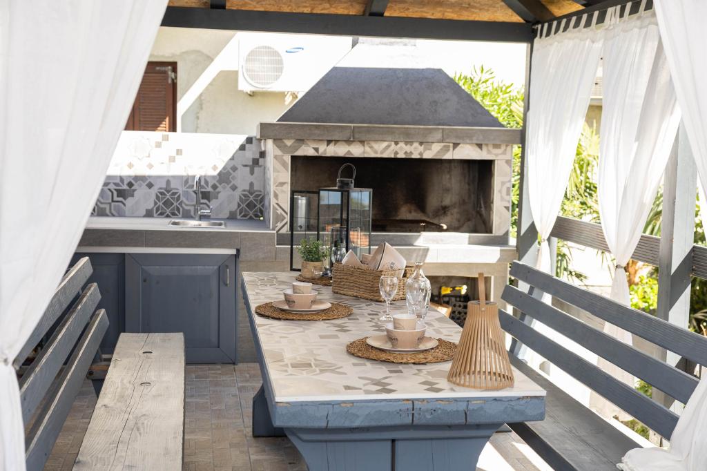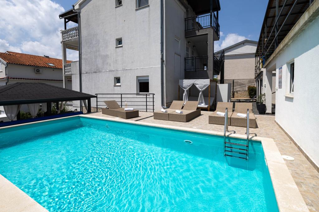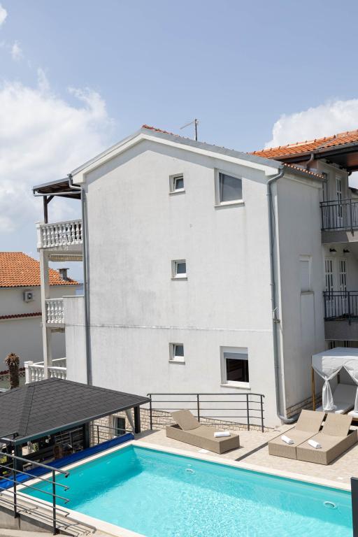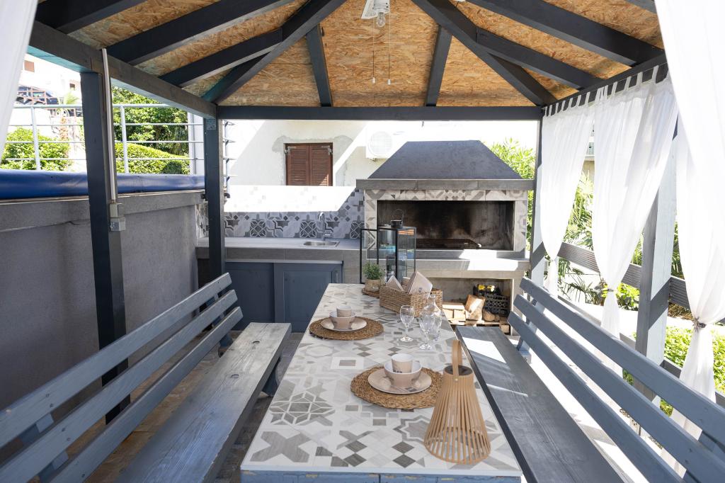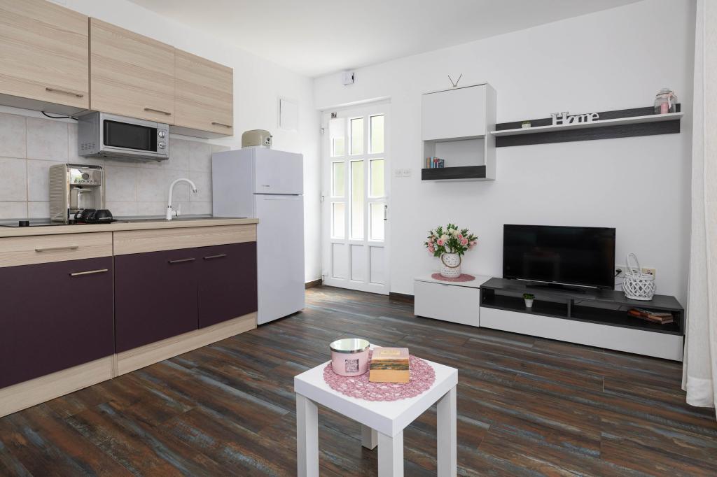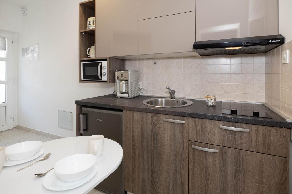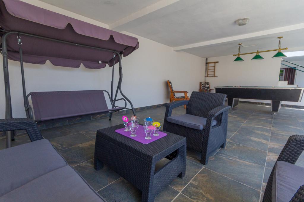 Unsere Anlage liegt in zweiter Reihe zum Meer, perfekt für einen erholsamen Sommerurlaub. Das Haus verfügt über sechs modern eingerichtete Apartments mit Meerblick, ausgestattet für einen angenehmen Aufenthalt. Alle Apartments verfügen über eine ausgestattete Küche mit Wasserkocher, Kaffeemaschine, Toaster und Mikrowelle. Die Badezimmer sind mit Dusche, WC und Haartrockner ausgestattet. Der Hof bietet zahlreiche Möglichkeiten zur Entspannung und Unterhaltung. Es gibt einen 7 x 3,5 m großen Swimmingpool mit Sonnenliegen, einer Hydromassagewanne, einer Dusche und einem Pavillon mit Grill. Der Grill ist mit einer Spüle und sämtlichem Essgeschirr ausgestattet. Der Pavillon verfügt über einen großen Tisch mit zwei Bänken für größere Zusammenkünfte. Im überdachten Teil des Hofes gibt es einen Billardtisch, Darts, Brettspiele und eine kleine Bibliothek mit Büchern. Vor dem Haus befindet sich ein überdachter Parkplatz, pro Wohnung ein Stellplatz. Die Wohnungen sind wie folgt angeordnet: A1 und A2 im Erdgeschoss, A3 im ersten Stock, A5 im zweiten Stock und A7 und A8 im dritten Stock. Willkommen!!!