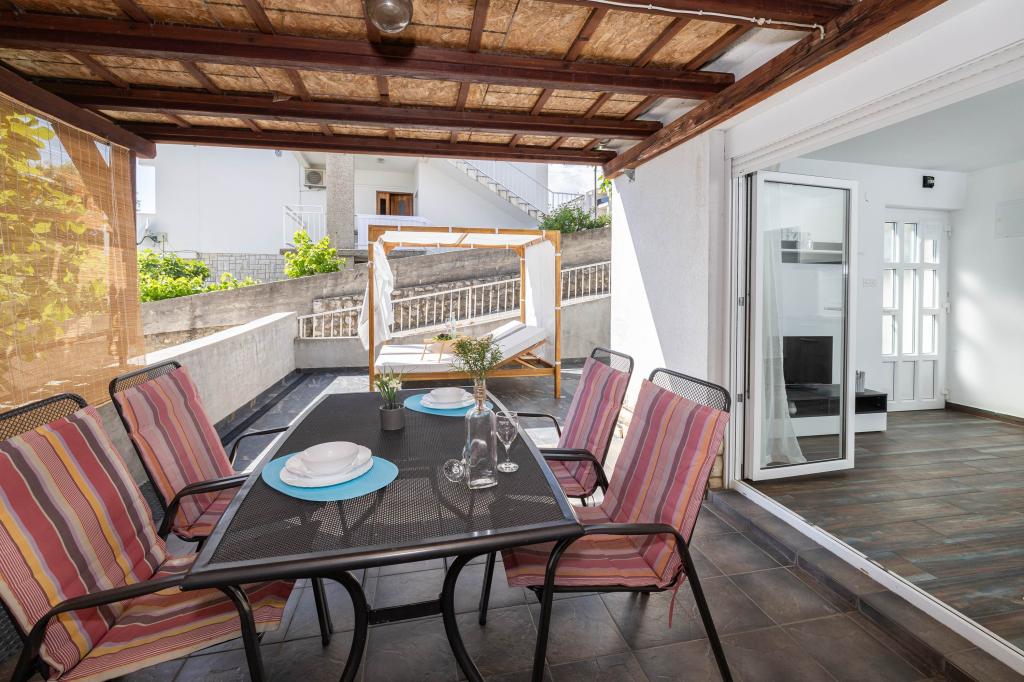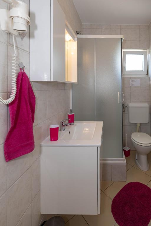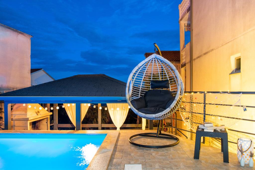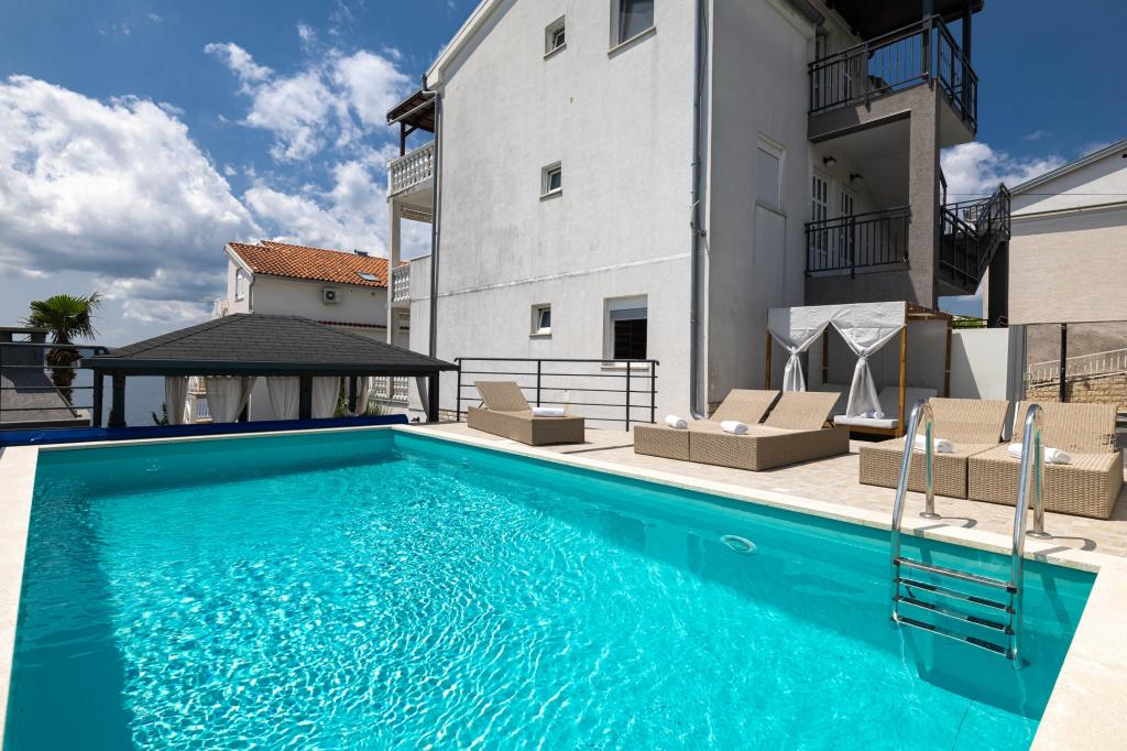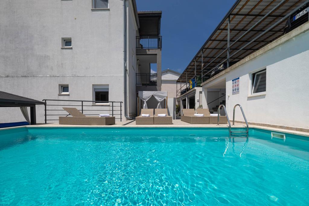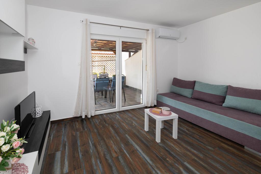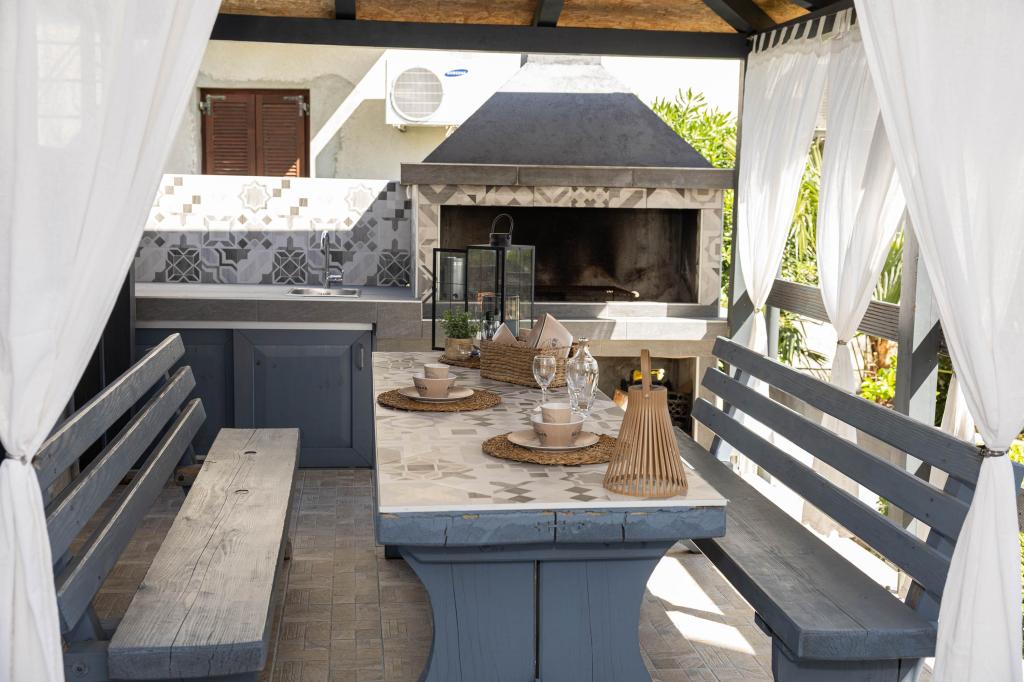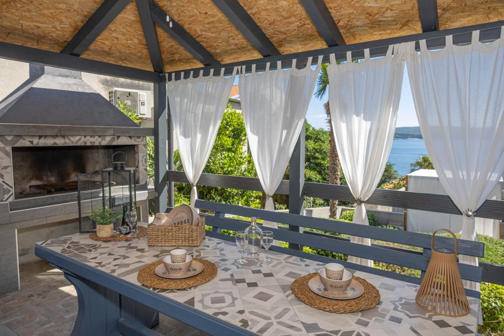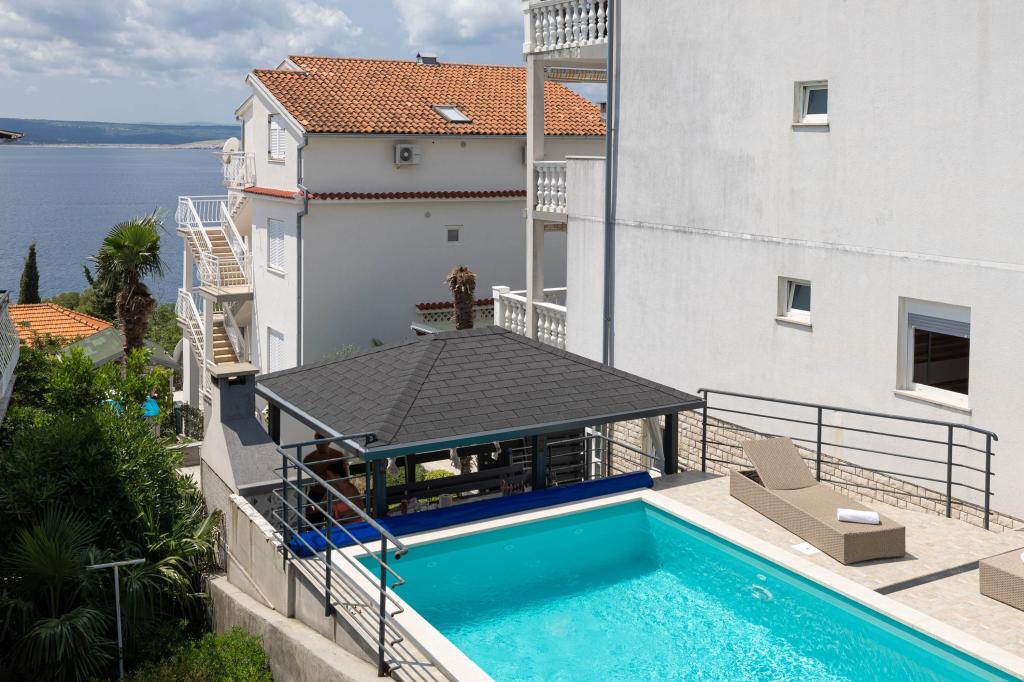 Unsere Anlage liegt in zweiter Reihe zum Meer, perfekt für einen erholsamen Sommerurlaub. Das Haus verfügt über sechs modern eingerichtete Apartments mit Meerblick, ausgestattet für einen angenehmen Aufenthalt. Alle Apartments verfügen über eine ausgestattete Küche mit Wasserkocher, Kaffeemaschine, Toaster und Mikrowelle. Die Badezimmer sind mit Dusche, WC und Haartrockner ausgestattet. Der Hof bietet zahlreiche Möglichkeiten zur Entspannung und Unterhaltung. Es gibt einen 7 x 3,5 m großen Swimmingpool mit Sonnenliegen, einer Hydromassagewanne, einer Dusche und einem Pavillon mit Grill. Der Grill ist mit einer Spüle und sämtlichem Essgeschirr ausgestattet. Der Pavillon verfügt über einen großen Tisch mit zwei Bänken für größere Zusammenkünfte. Im überdachten Teil des Hofes gibt es einen Billardtisch, Darts, Brettspiele und eine kleine Bibliothek mit Büchern. Vor dem Haus befindet sich ein überdachter Parkplatz, pro Wohnung ein Stellplatz. Die Wohnungen sind wie folgt angeordnet: A1 und A2 im Erdgeschoss, A3 im ersten Stock, A5 im zweiten Stock und A7 und A8 im dritten Stock. Willkommen!!!