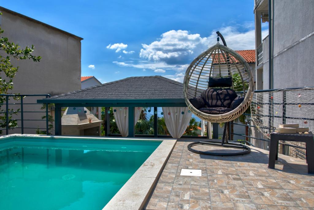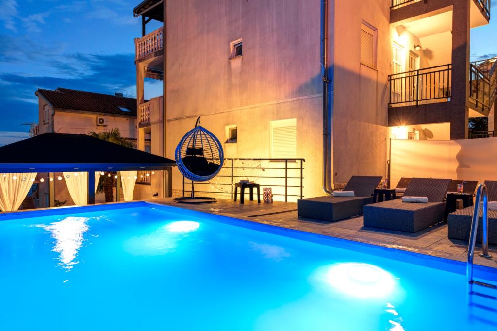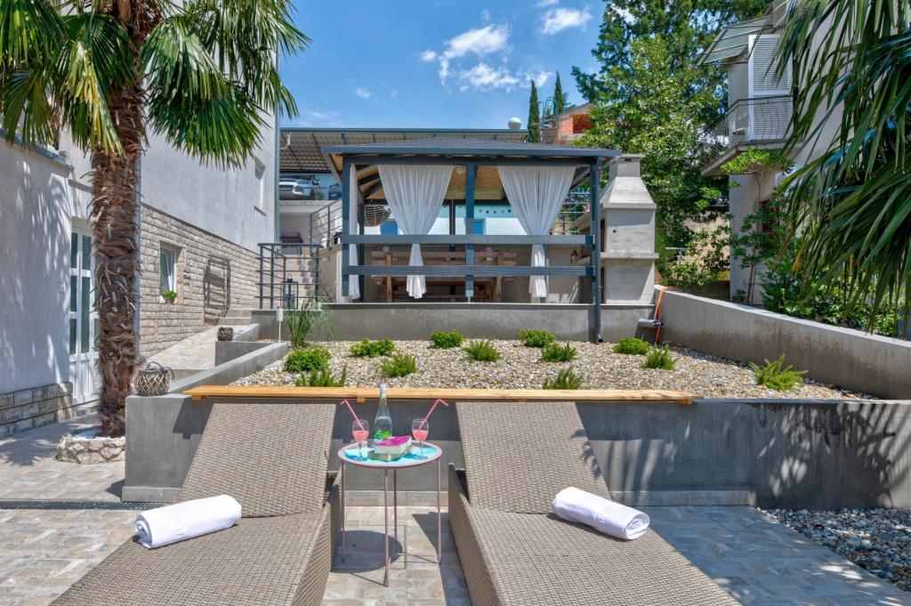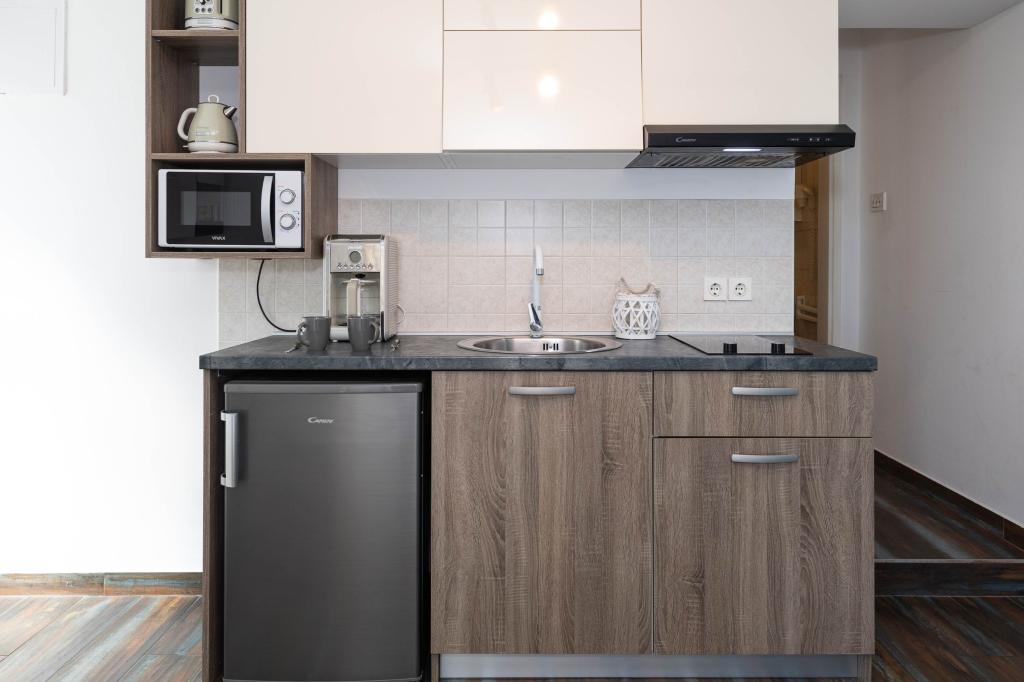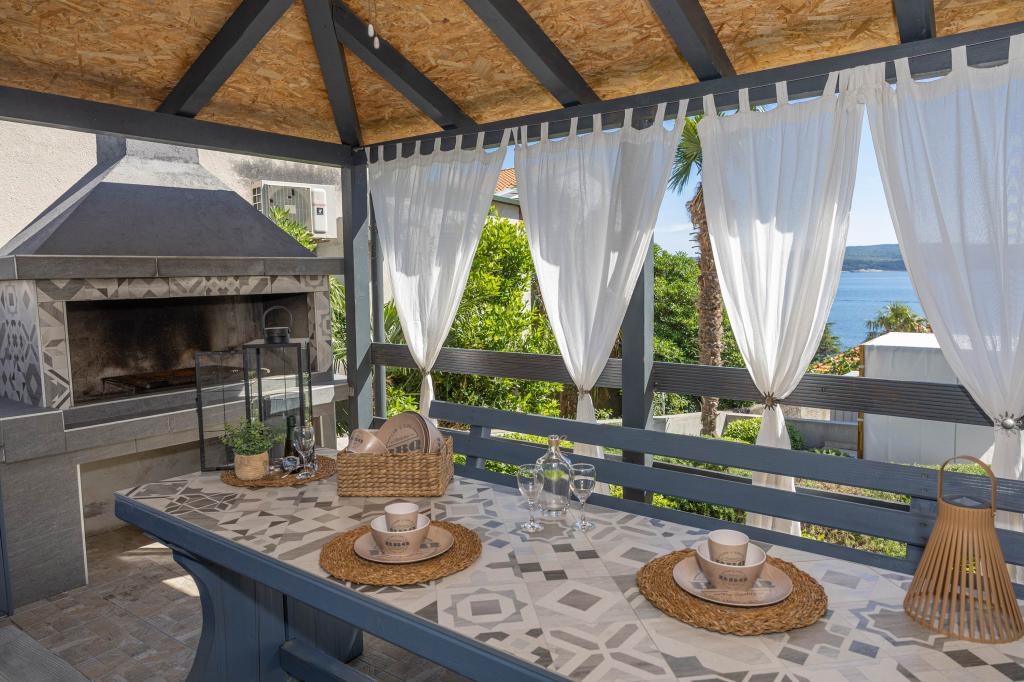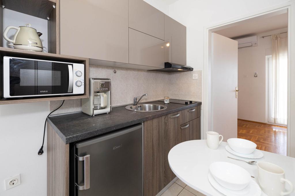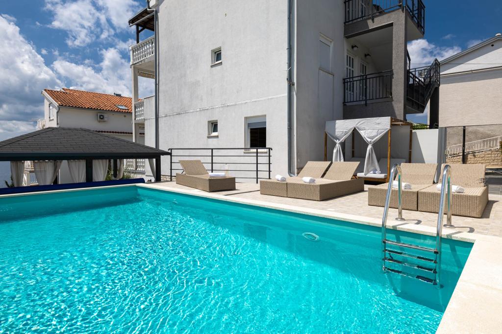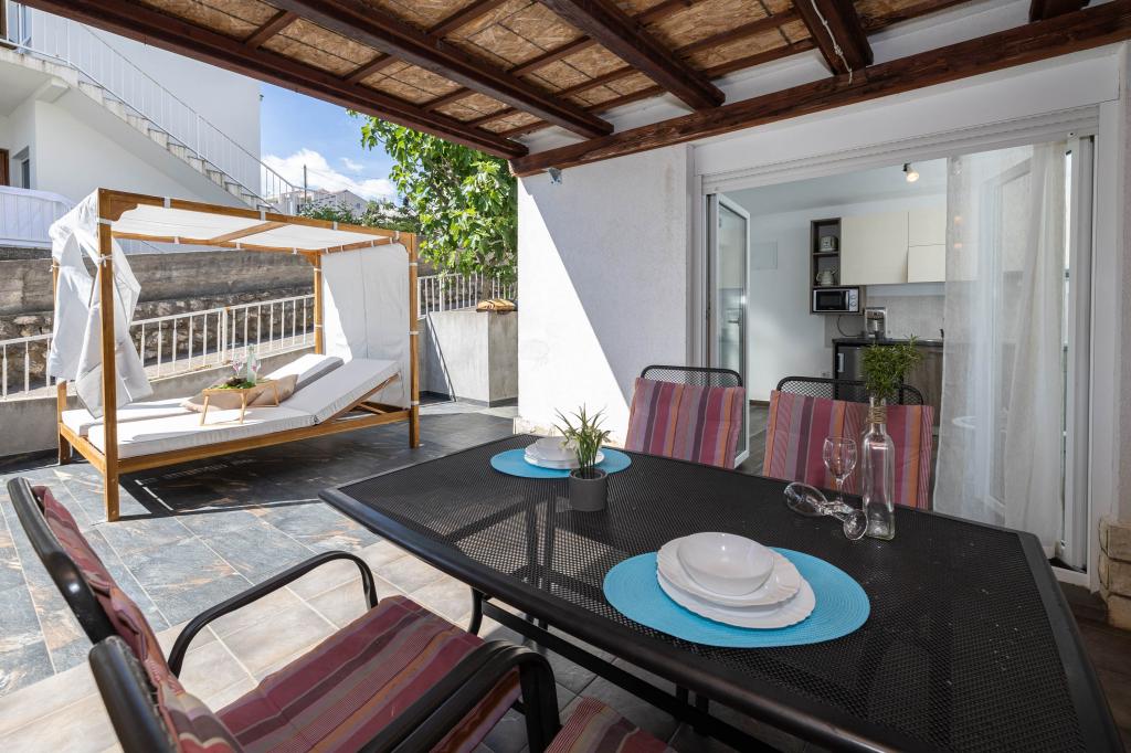 Unsere Anlage liegt in zweiter Reihe zum Meer, perfekt für einen erholsamen Sommerurlaub. Das Haus verfügt über sechs modern eingerichtete Apartments mit Meerblick, ausgestattet für einen angenehmen Aufenthalt. Alle Apartments verfügen über eine ausgestattete Küche mit Wasserkocher, Kaffeemaschine, Toaster und Mikrowelle. Die Badezimmer sind mit Dusche, WC und Haartrockner ausgestattet. Der Hof bietet zahlreiche Möglichkeiten zur Entspannung und Unterhaltung. Es gibt einen 7 x 3,5 m großen Swimmingpool mit Sonnenliegen, einer Hydromassagewanne, einer Dusche und einem Pavillon mit Grill. Der Grill ist mit einer Spüle und sämtlichem Essgeschirr ausgestattet. Der Pavillon verfügt über einen großen Tisch mit zwei Bänken für größere Zusammenkünfte. Im überdachten Teil des Hofes gibt es einen Billardtisch, Darts, Brettspiele und eine kleine Bibliothek mit Büchern. Vor dem Haus befindet sich ein überdachter Parkplatz, pro Wohnung ein Stellplatz. Die Wohnungen sind wie folgt angeordnet: A1 und A2 im Erdgeschoss, A3 im ersten Stock, A5 im zweiten Stock und A7 und A8 im dritten Stock. Willkommen!!!