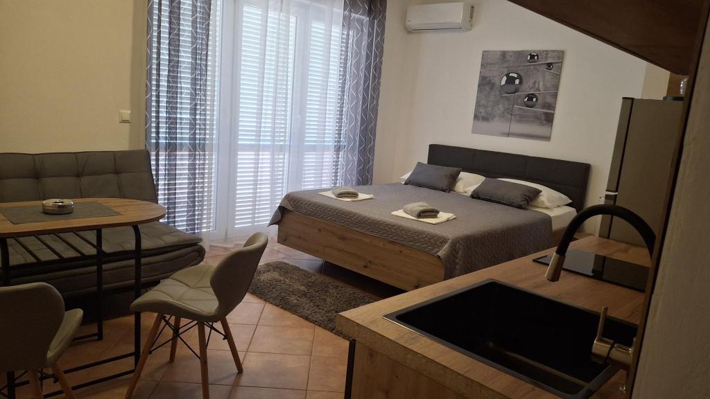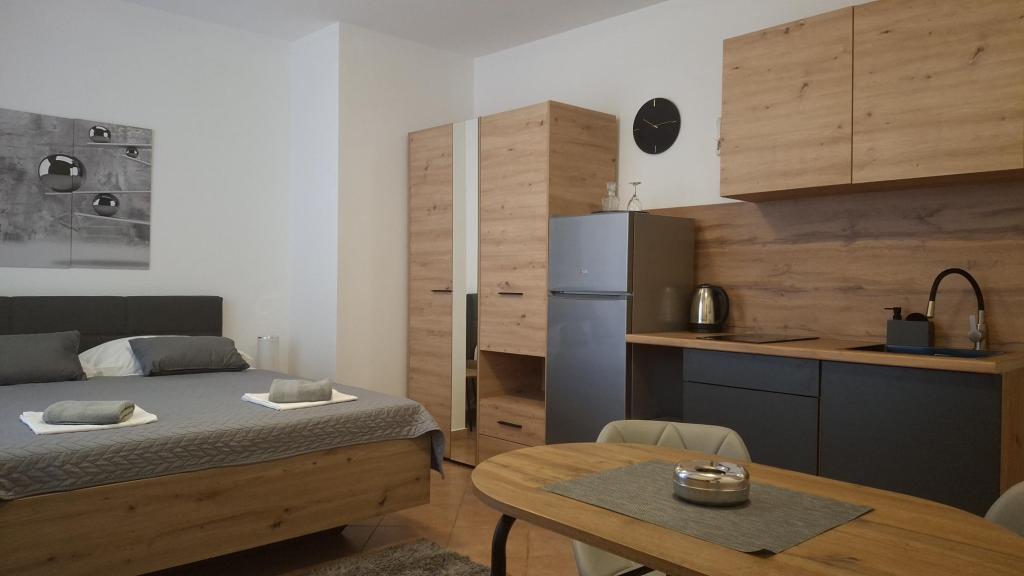 Für eine Auszeit vom Alltag und der Hektik bieten wir Studio-Apartments oder Zimmer Ihrer Wahl in einem neuen Familiengebäude mit Blick auf das Meer. Ihre Unterkunft liegt 4-5 Autominuten von der Stadt und 3-4 Autominuten vom Strand entfernt. Die Wohnungen verfügen über die Möglichkeit, einen Außengrill zu nutzen, und liegen in der Nähe der Einkaufszentren Duga Mall und Lidl. Bei uns haben Sie jederzeit gesicherte Parkplätze, was das größte Problem eines jeden Touristenziels darstellt. Die Möglichkeit, die Klimaanlage gegen einen Aufpreis von 5 EUR pro Tag zu nutzen. Ihr angenehmer Urlaub in unserer Anlage ist unsere größte Aufgabe.