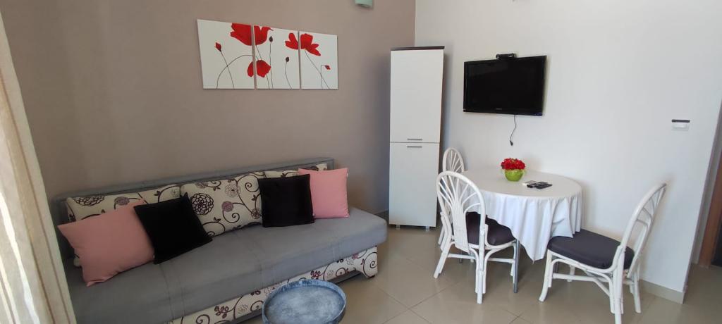 Kurtaxe ist im Preis inbegriffen. Buchungsbestätigungsdokument bei ReservierungFür alle, die einen echten Urlaub ohne Hektik suchen, ist Drašnice die ideale Wahl. Ein kleiner, ruhiger, manchmal fast verschlafener Ort, an dem man aber dennoch alles, was man braucht, leicht erreichen kann. Das Meer ist kristallklar, die Sonnenuntergänge sind unwirklich – jeder anders, jeder auf seine Weise magisch. Die Apartments Niko, die Unterkunft, in der wir 10 Tage verbrachten, rundeten das zuvor beschriebene Erlebnis ab. Die Apartments liegen direkt am Strand, was einen besonderen Charme mit sich bringt, wie zum Beispiel der Morgenkaffee beim Rauschen der Wellen. Sie sind ordentlich, sauber, mit viel Liebe zum Detail eingerichtet und die Gastgeberin bemüht sich, den Gästen einen angenehmen Aufenthalt zu bereiten. Besonders beeindruckt haben mich die Bücherregale im Flur, die die Gäste während ihres Urlaubs mitnehmen und lesen können. Die Gastgeberin ist freundlich und immer zur Stelle, wenn man sie braucht. Ich möchte diese Gelegenheit nutzen, um Ihnen noch einmal für Ihre Hilfsbereitschaft zu danken, als ich medizinische Hilfe brauchte. Der gesamte Aufenthalt in Drašnice und dieser Unterkunft war ausgezeichnet. Die Kombination aus natürlicher Schönheit, einem Ort, an dem man die Seele des Mittelmeers spüren kann, und der Gastfreundschaft der Gastgeber machten unseren Urlaub perfekt.
