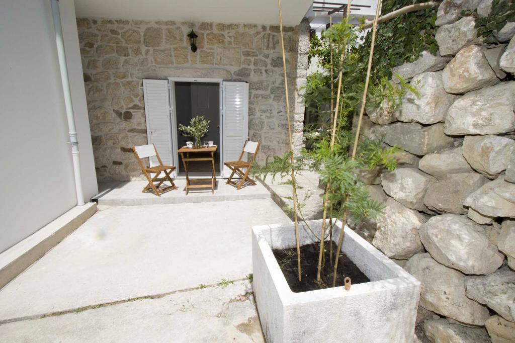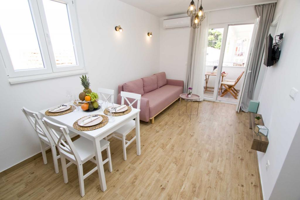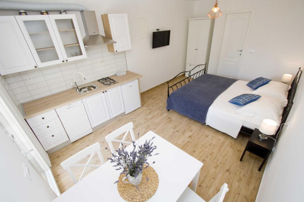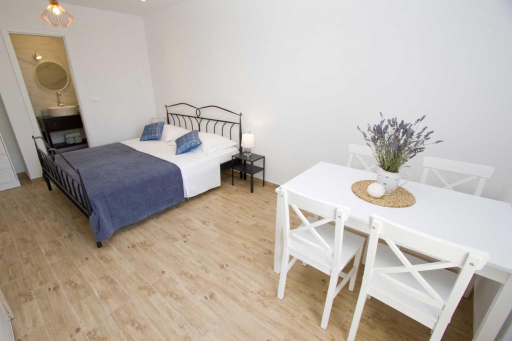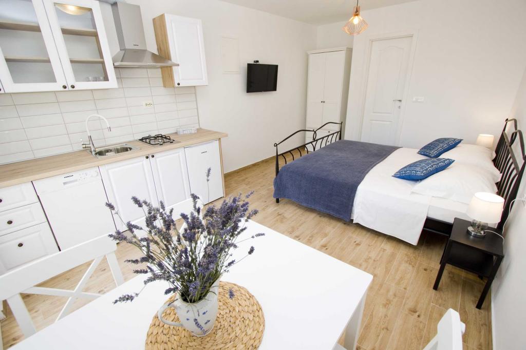 Die Apartments Rustica befinden sich 20 m vom Meer entfernt in einem traditionellen dalmatinischen Teich in der kleinen Stadt Drasnice. Sie bieten Unterkunft für 11 Personen in drei separaten Wohnungen, und es ist möglich, das ganze Haus zu mieten. Sie enthalten 3 Wohneinheiten - zwei Apartments mit Meerblick und ein Studio-Apartment. Jedes der Apartments verfügt über eine Terrasse und oben auf dem Haus befindet sich eine Terrasse mit herrlichem Blick auf das Meer und die nahe gelegenen Inseln. Jedes der Apartments verfügt über einen separaten Eingang, ist klimatisiert und mit einem Geschirrspüler sowie Utensilien und einem Flachbildfernseher mit Satellitenkanälen ausgestattet. Die Apartments Rustica befinden sich in der Nähe mehrerer Strände, 50 m vom Strand Čevajele und 200 m vom Strand Soline sowie 200 m vom nächsten Supermarkt, Restaurant und Café entfernt. Die Apartments Rustica ermöglichen Ihnen einen ruhigen und friedlichen Urlaub in ihren Einheiten, die entsprechend der Umgebung eingerichtet sind, in der sie sich befinden.