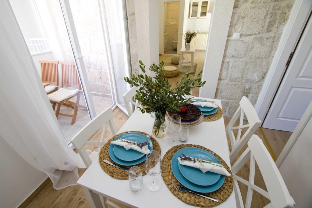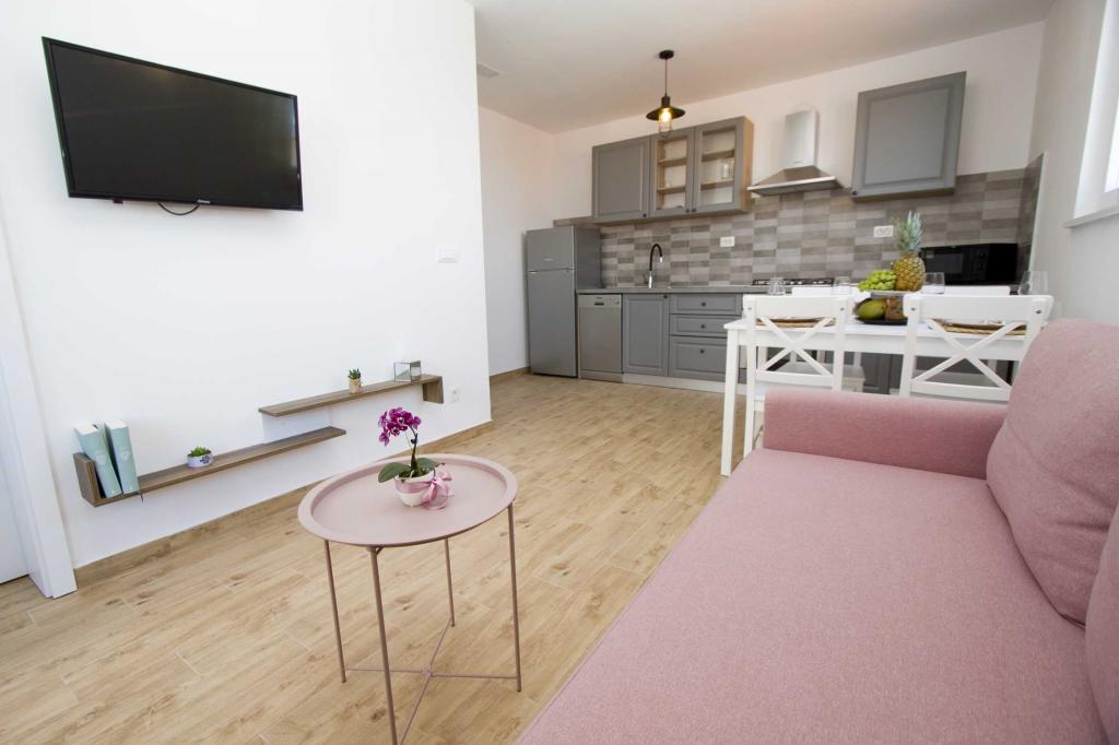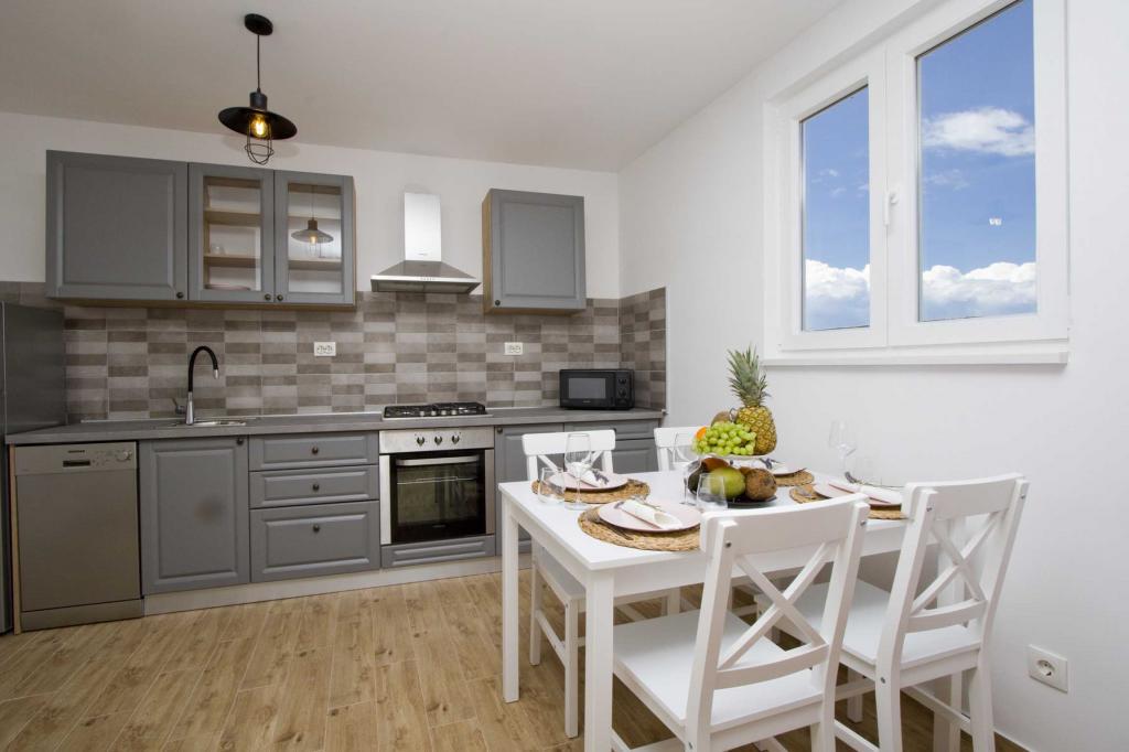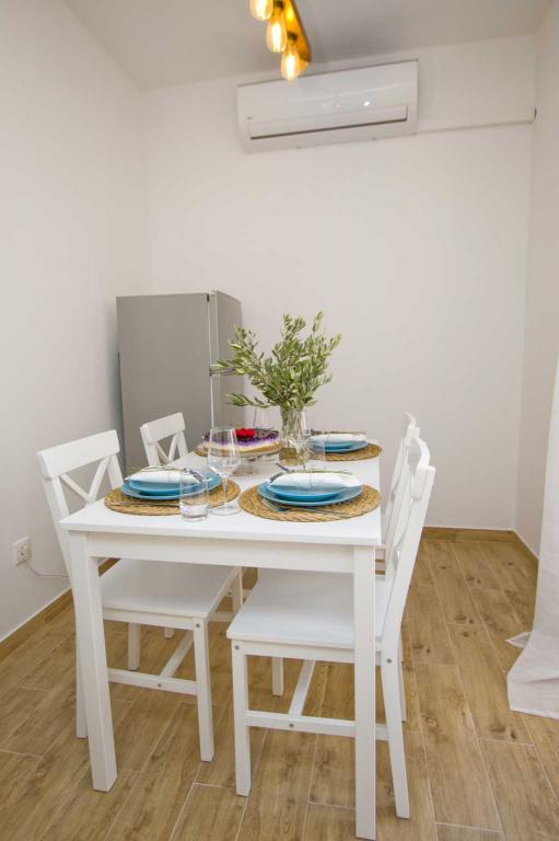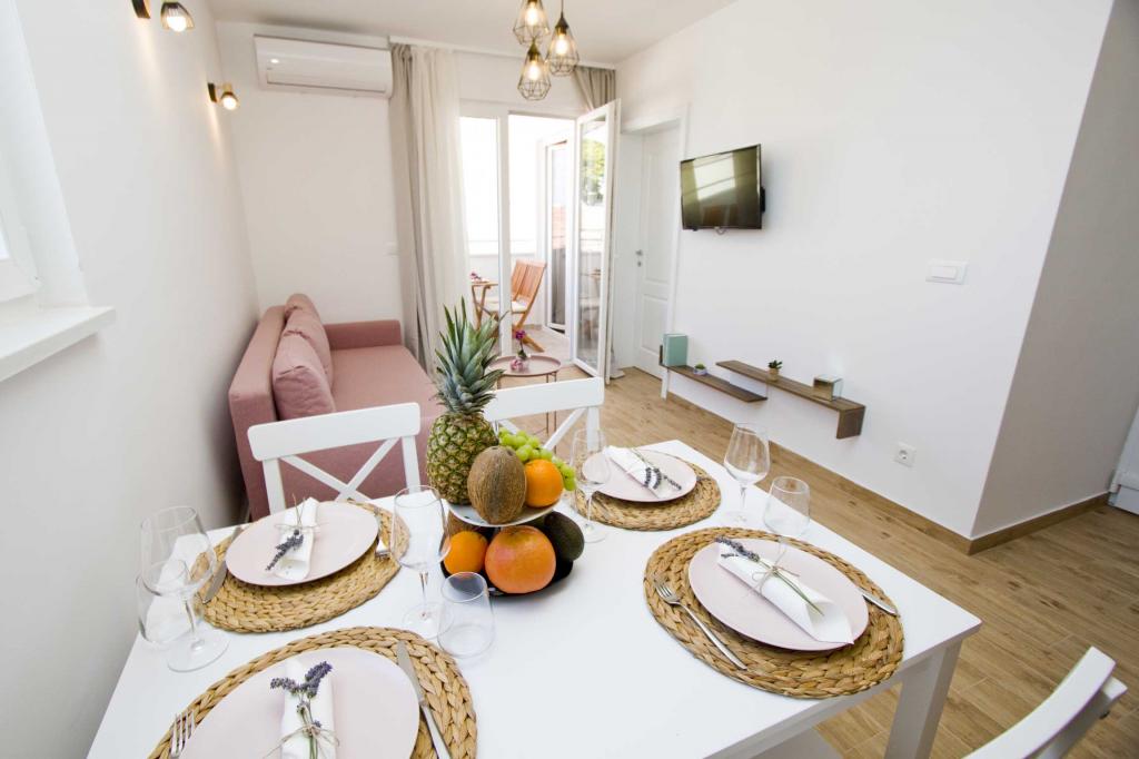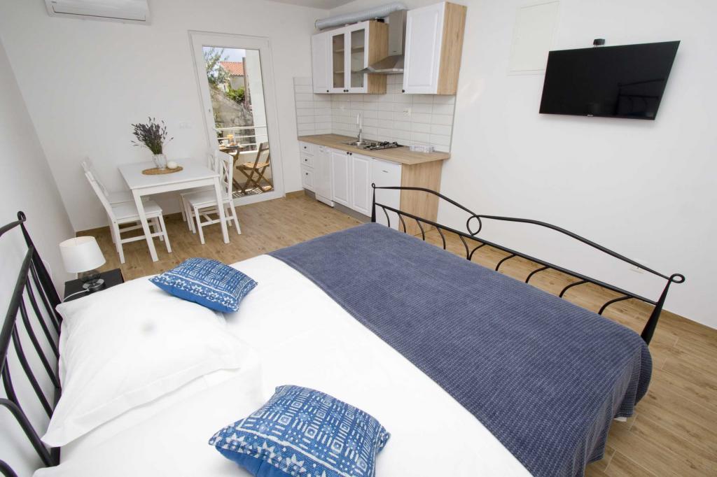 Die Apartments Rustica befinden sich 20 m vom Meer entfernt in einem traditionellen dalmatinischen Teich in der kleinen Stadt Drasnice. Sie bieten Unterkunft für 11 Personen in drei separaten Wohnungen, und es ist möglich, das ganze Haus zu mieten. Sie enthalten 3 Wohneinheiten - zwei Apartments mit Meerblick und ein Studio-Apartment. Jedes der Apartments verfügt über eine Terrasse und oben auf dem Haus befindet sich eine Terrasse mit herrlichem Blick auf das Meer und die nahe gelegenen Inseln. Jedes der Apartments verfügt über einen separaten Eingang, ist klimatisiert und mit einem Geschirrspüler sowie Utensilien und einem Flachbildfernseher mit Satellitenkanälen ausgestattet. Die Apartments Rustica befinden sich in der Nähe mehrerer Strände, 50 m vom Strand Čevajele und 200 m vom Strand Soline sowie 200 m vom nächsten Supermarkt, Restaurant und Café entfernt. Die Apartments Rustica ermöglichen Ihnen einen ruhigen und friedlichen Urlaub in ihren Einheiten, die entsprechend der Umgebung eingerichtet sind, in der sie sich befinden.