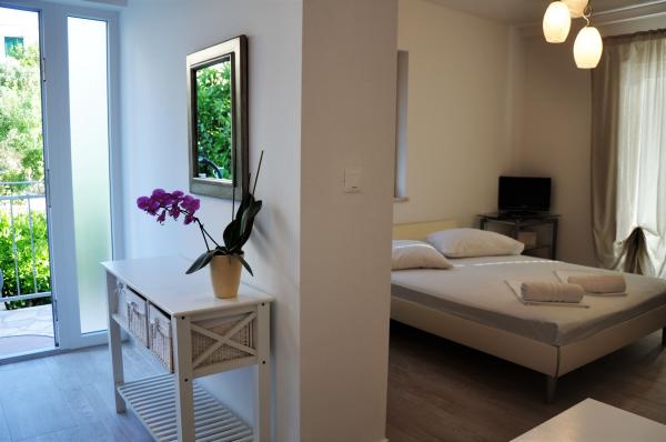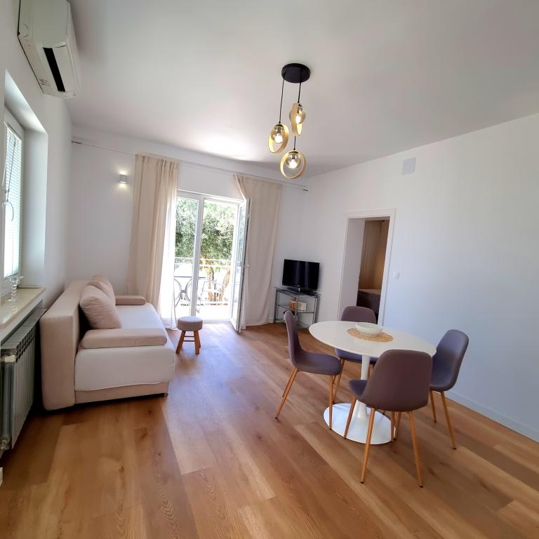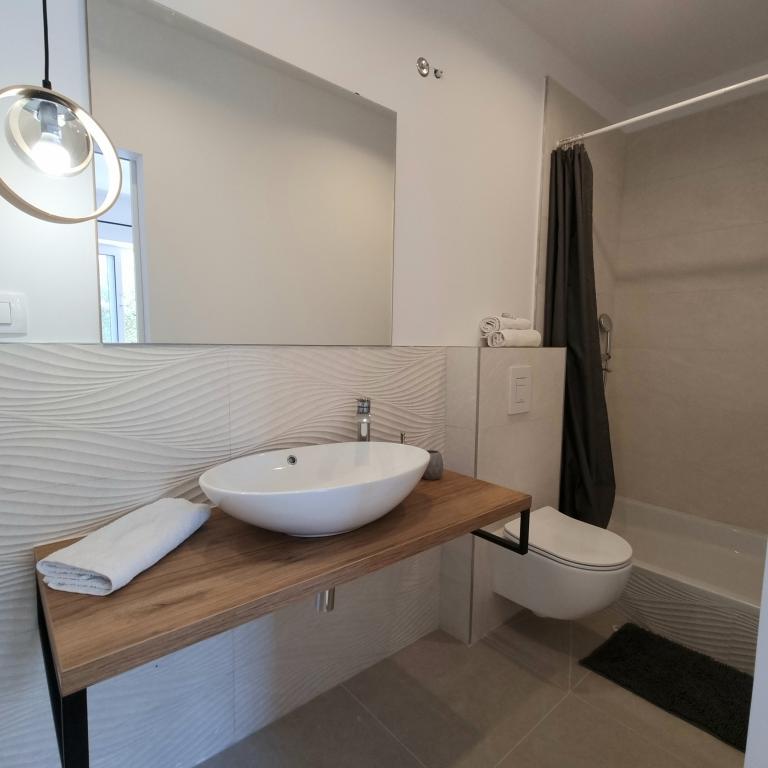 Wir haben unseren diesjährigen Urlaub mit meiner Familie hier verbracht. Wir hätten keine bessere Wahl treffen können. Die Wohnung war gemütlich, sauber und mit allem Notwendigen ausgestattet. Die Terrasse lädt zum Entspannen, Wellenrauschen und wunderschönen Sonnenuntergängen ein. Der Zugang zum Strand erfolgt über einen schönen Garten, in dem man aufblasbare Gegenstände im Wasser aufbewahren kann, sodass man sie nicht jeden Tag zur Wohnung tragen muss. Die Besitzerin, ihr Mann und ihre Mutter sind sehr freundlich, hilfsbereit und nett. Das Apartmenthaus liegt nur wenige Schritte von einem wunderschönen Kieselstrand entfernt. Das Meer ist perfekt und voller Fische. Wir wollten beide nicht nach Hause und hoffen, nächstes Jahr wiederzukommen.