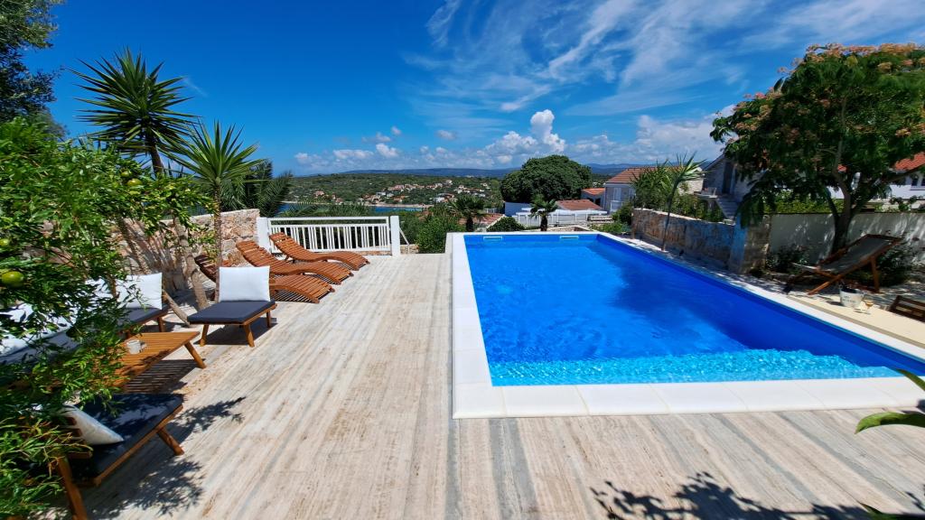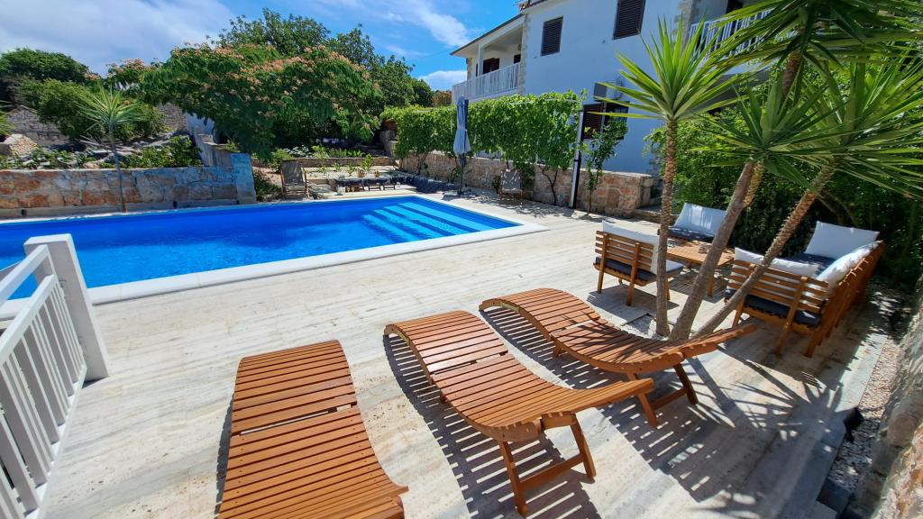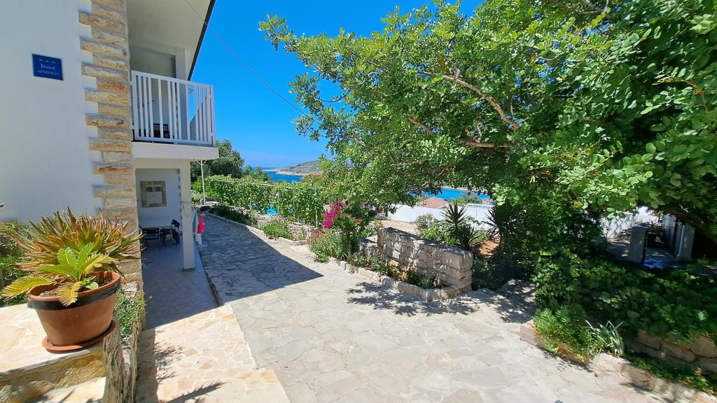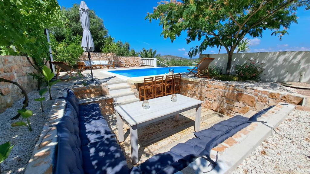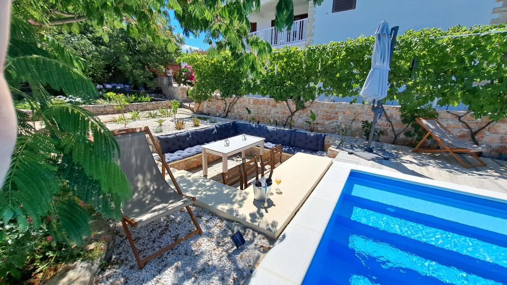 Die Apartments Villa Knez bieten moderne und voll ausgestattete Apartments mit Swimmingpool, Grill und einem angenehmen Außenbereich für Zusammenkünfte. Drvenik Mali (Ploča) ist eine Insel, auf der die Zeit stehen geblieben ist. Die Insel ist ruhig, die Küste ist zugänglich, sodass man die gesamte Insel umrunden kann. Es ist wünschenswert für diejenigen, die sich nach unberührter Natur, sauberem Meer, schönen Stränden, Nachttauchen und Entspannung fernab der Zivilisation sehnen. Es ist der richtige Ort für moderne Robinsons. Drvenik Mali ist eine mitteldalmatinische Insel, die zur Stadt Trogir gehört und von der sie 10 Seemeilen entfernt ist. Es ist dreimal täglich mit einer Fährlinie verbunden. Die Fahrt dauert 50 Minuten. Die Vegetation besteht aus Oliven, Johannisbrot, duftenden und heilenden mediterranen Kräutern. Der Laden ist bescheiden mit Grundnahrungsmitteln ausgestattet und es wird empfohlen, Lebensmittel in Trogir zu kaufen. Es gibt keine Disco-Clubs. Alles ist in der Nähe, die Insel ist ideal für Spaziergänge. Die Apartments befinden sich im alten Dorf Petomavar und sind mit dem Auto erreichbar. Zu jedem Apartment gehört ein gesicherter Parkplatz