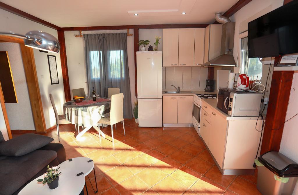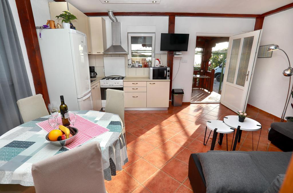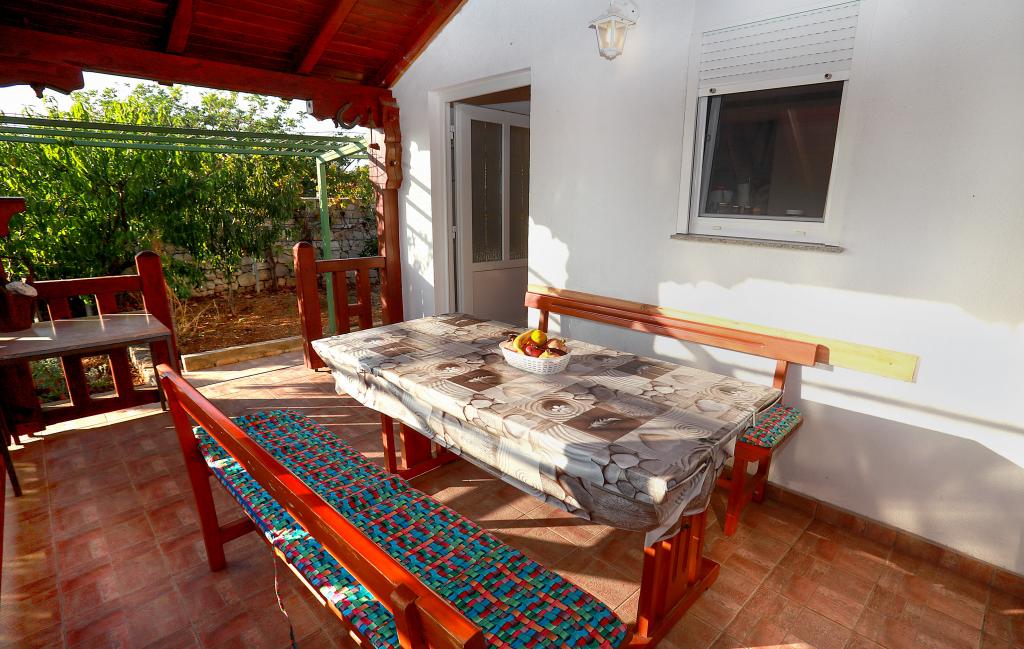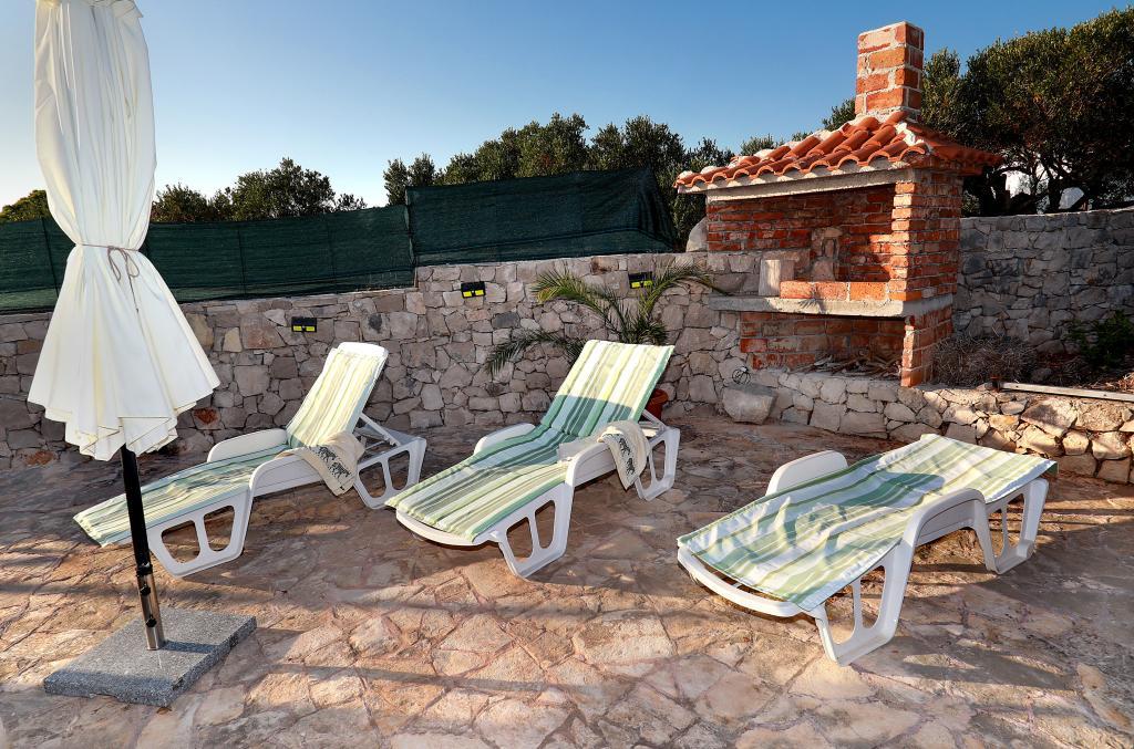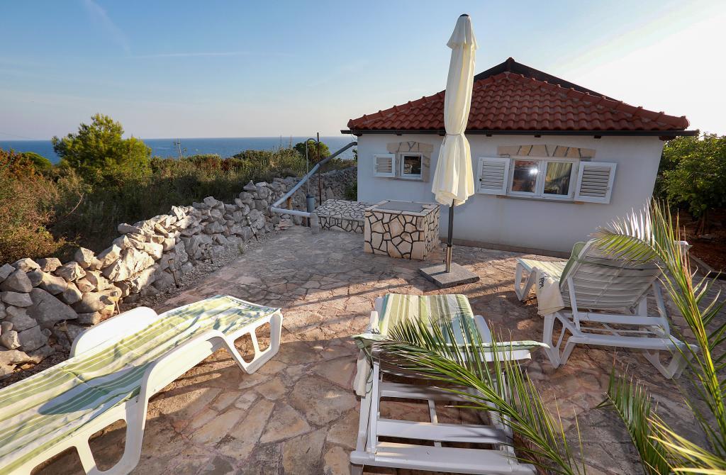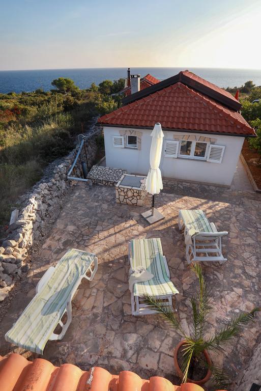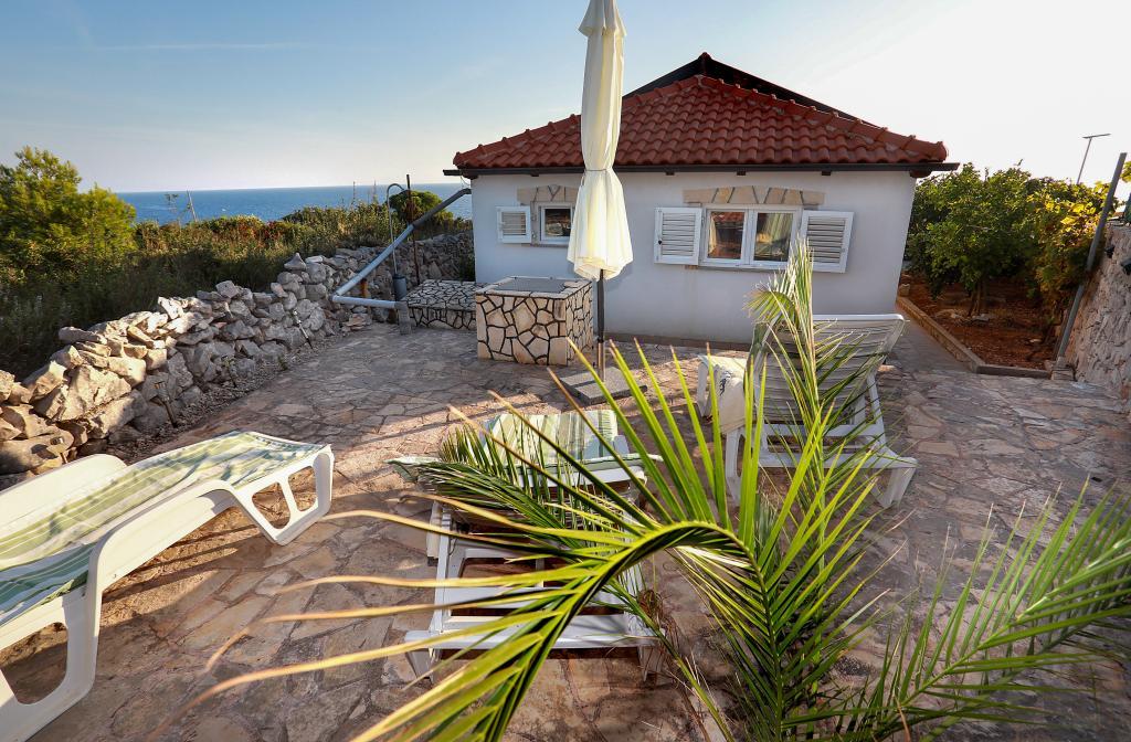 Über diesen Ort: Das Ferienhaus Veronika ist der perfekte Ort für einen Urlaub im Robinson-Stil auf der Insel Drvenik Mali in Mitteldalmatien, in der Nähe der UNESCO-geschützten Stadt Trogir. Die Insel verfügt über einen der schönsten Sandstrände, Vela Rina, im Stil der Blauen Lagune. Wir liegen in unberührter Natur, oberhalb der Sandstrandbucht und des Kap Kalafate, sodass unser Grundstück einen spektakulären Blick auf das offene Meer bietet; göttlich im Morgengrauen und Sonnenuntergang. Raum: Unser Anwesen ist ein einstöckiges Haus, komplett ausgestattet und klimatisiert, mit einem Garten, in dem sich eine sonnige Terrasse mit wunderschönem Blick auf das Meer befindet. Weitere Hinweise: Auf dem Grundstück gibt es zwei separate Häuser, Veronika und Šimun, die einzeln oder zusammen gemietet werden können, dennoch haben die Gäste dank der Lage jedes Hauses Privatsphäre. Beide Einheiten teilen sich einen umzäunten, gemeinsamen Parkplatz und eine geräumige Taverne – Grill.