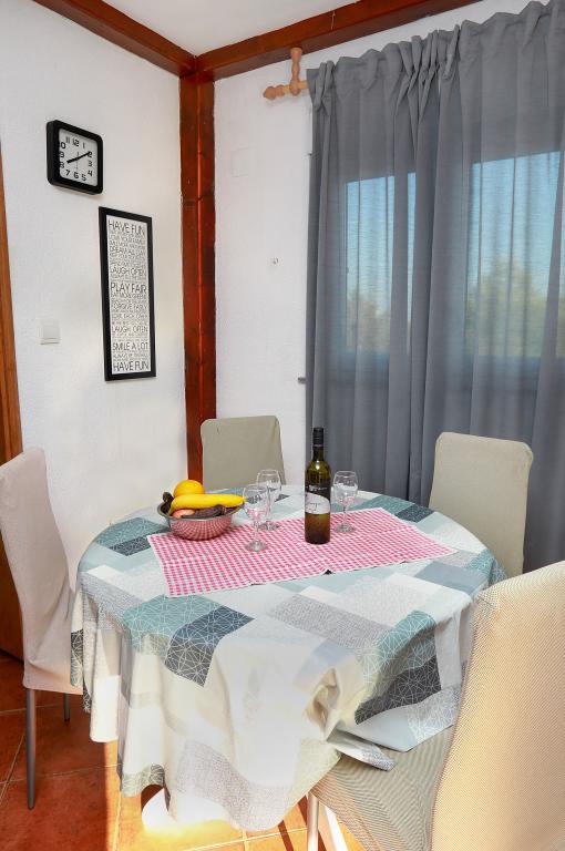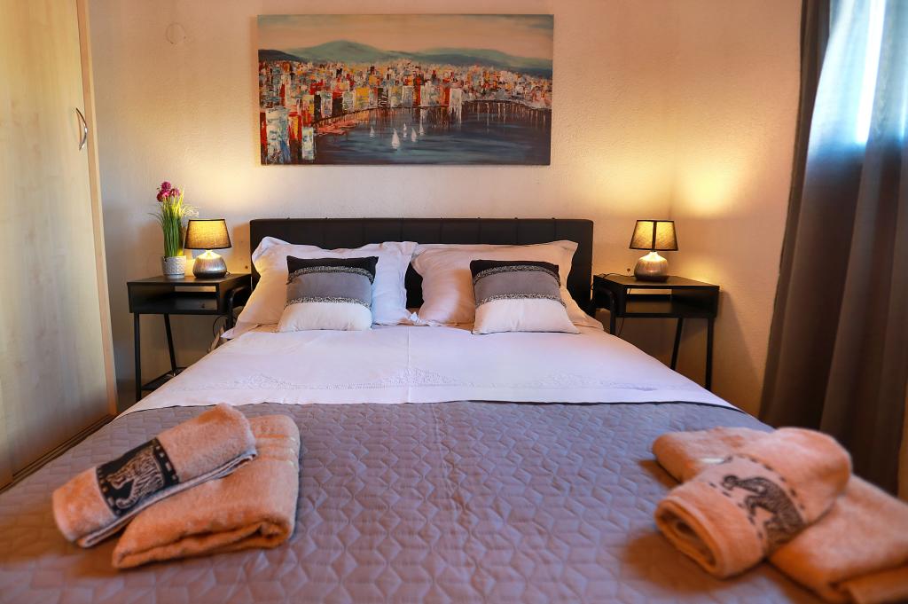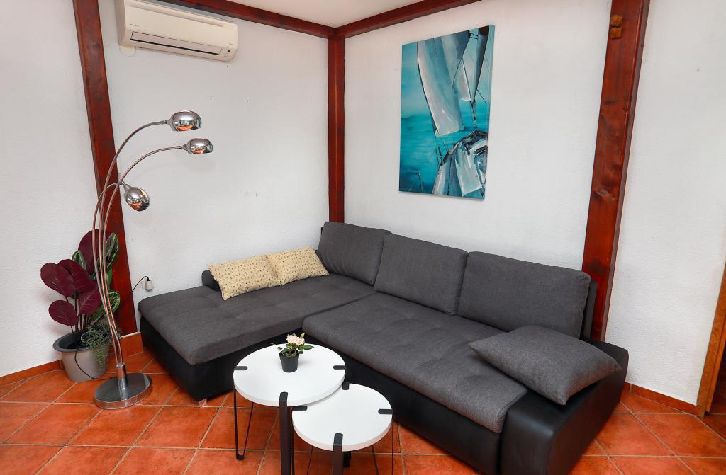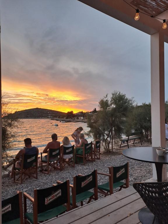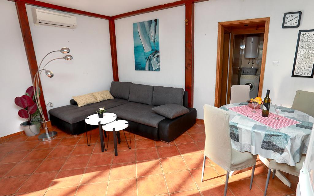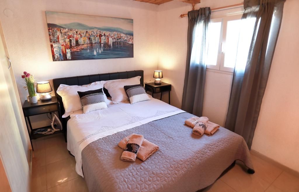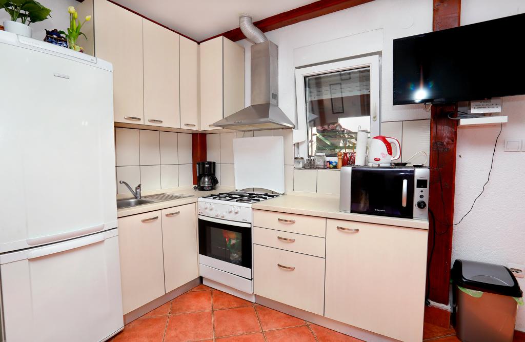 Über diesen Ort: Das Ferienhaus Veronika ist der perfekte Ort für einen Urlaub im Robinson-Stil auf der Insel Drvenik Mali in Mitteldalmatien, in der Nähe der UNESCO-geschützten Stadt Trogir. Die Insel verfügt über einen der schönsten Sandstrände, Vela Rina, im Stil der Blauen Lagune. Wir liegen in unberührter Natur, oberhalb der Sandstrandbucht und des Kap Kalafate, sodass unser Grundstück einen spektakulären Blick auf das offene Meer bietet; göttlich im Morgengrauen und Sonnenuntergang. Raum: Unser Anwesen ist ein einstöckiges Haus, komplett ausgestattet und klimatisiert, mit einem Garten, in dem sich eine sonnige Terrasse mit wunderschönem Blick auf das Meer befindet. Weitere Hinweise: Auf dem Grundstück gibt es zwei separate Häuser, Veronika und Šimun, die einzeln oder zusammen gemietet werden können, dennoch haben die Gäste dank der Lage jedes Hauses Privatsphäre. Beide Einheiten teilen sich einen umzäunten, gemeinsamen Parkplatz und eine geräumige Taverne – Grill.
