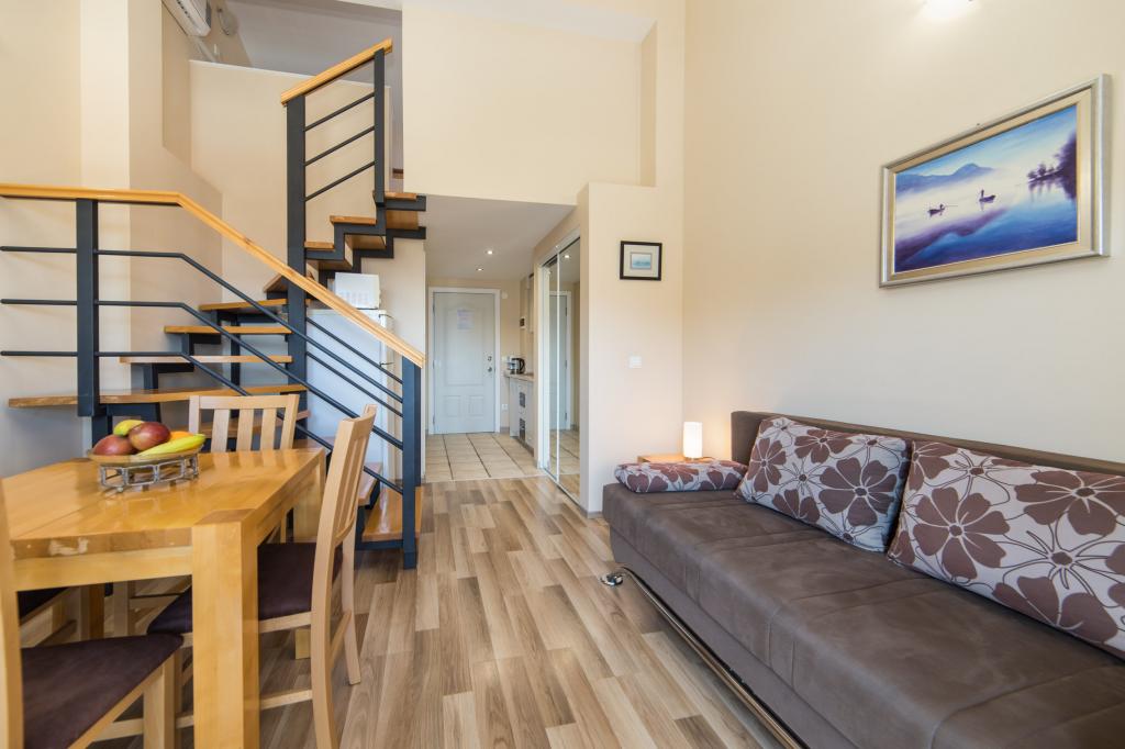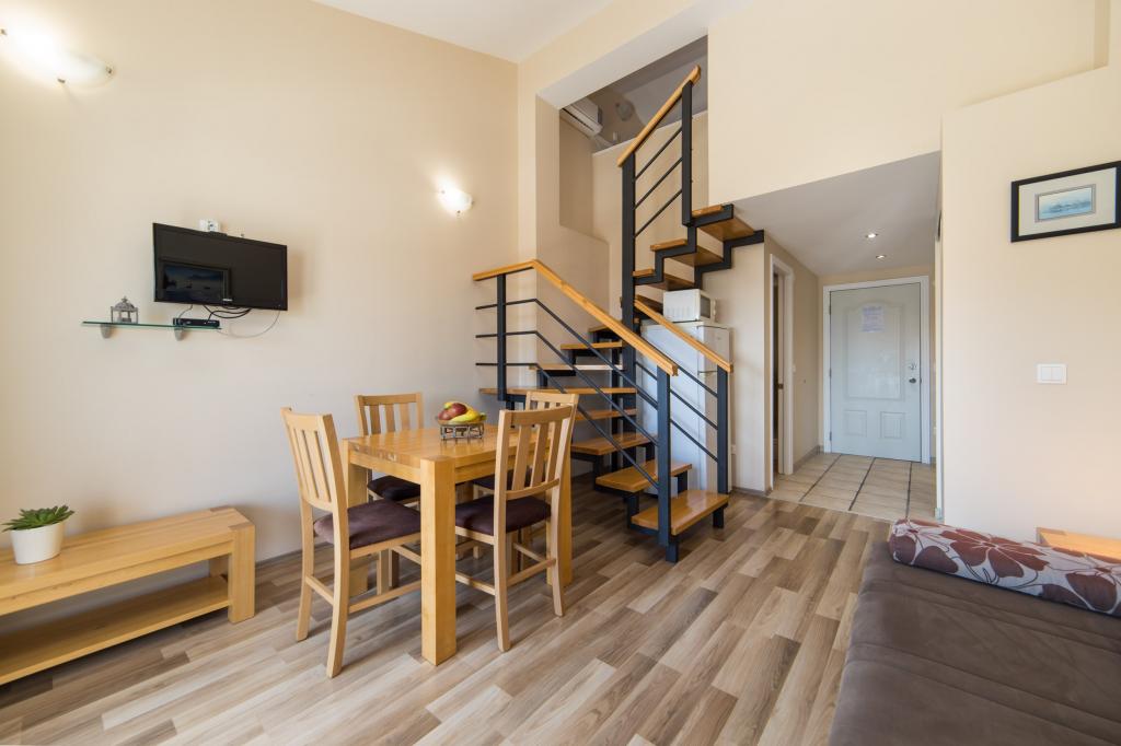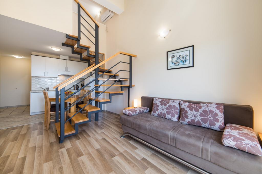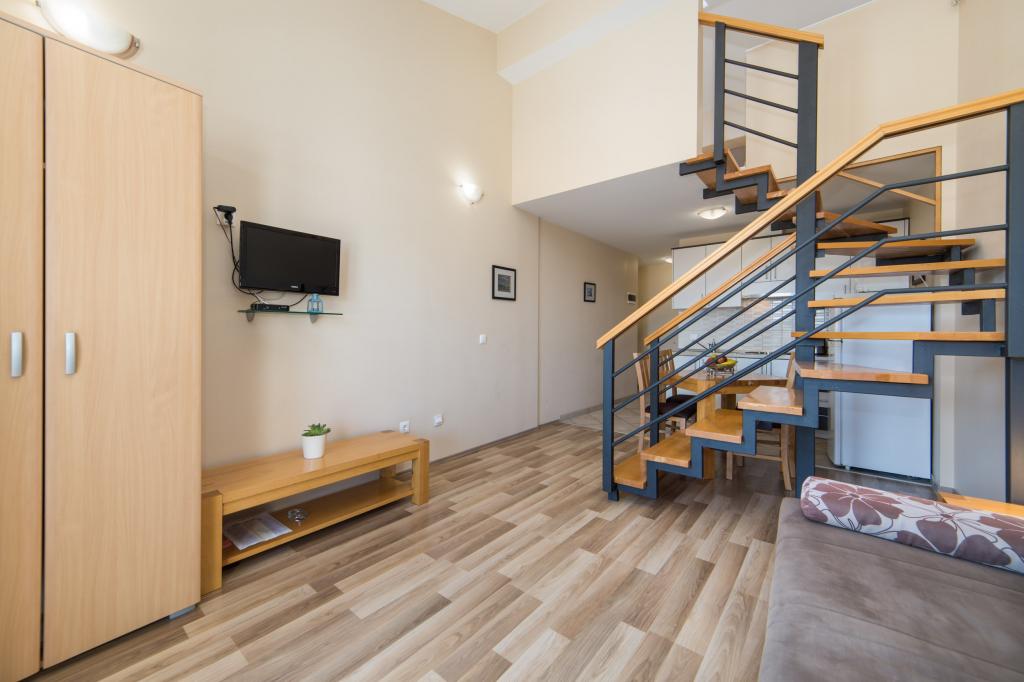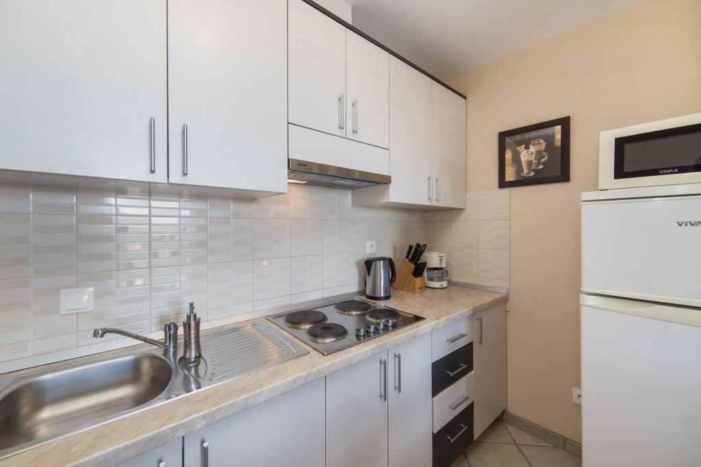 Moderne und voll ausgestattete Apartments im Zentrum der Gemeinde., Gewählte zweiten Reihe. Die Anlage befindet sich 5 Minuten zu Fuß in die Innenstadt und weniger als 5 Minuten zu Fuß zum Strand. Die Apartments sind neu und verfügen über Klimaanlage, TV, Mikrowelle, Wasserkocher und alle Küchenutensilien. Das Grundstück ist 30 Meter entfernt von den Gerichten und Bowling Gelände. Parkplatz ist 10 Meter vom Haus entfernt. In der Nähe des Hauses gibt es ein Postamt, Lebensmittelgeschäft, eine Bäckerei, eine Wechselstube und Geldautomaten, Cafés und ein paar Restaurants mit einer Vielfalt von Inhalten.