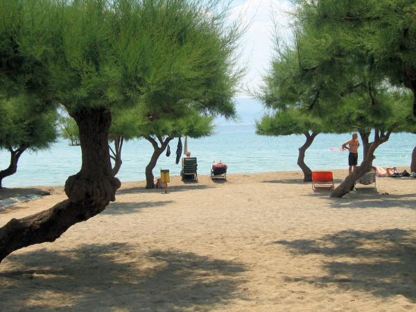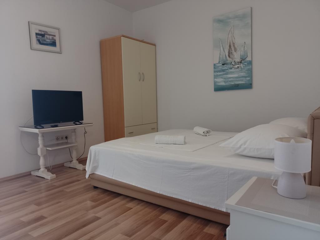 Fantastisch! Sauber, viel Platz zum Sandstrand mit Bäumen. Die Aussicht ist atemberaubend. Zusätzlicher großer Kühlschrank im Flur für 2 Apartments. Kostenlose Klimaanlage. Keine Klimagebühren. Zum Zentrum von Omis, Brücke, 20 Min. zu Fuß. Ruhige Gegend, aber es gibt Räumlichkeiten, in denen Sie auch etwas trinken oder essen gehen können. Ich empfehle sehr