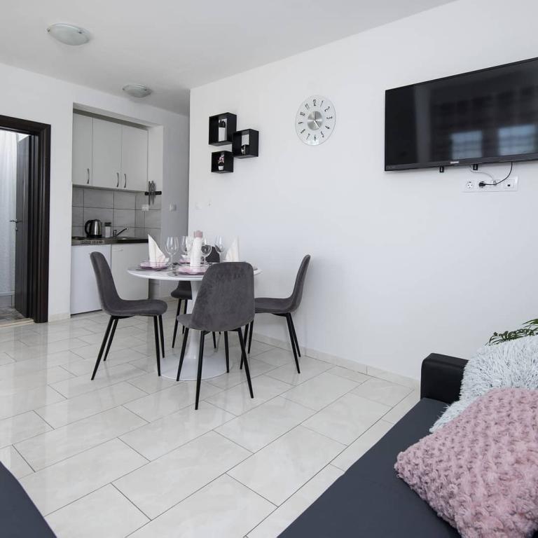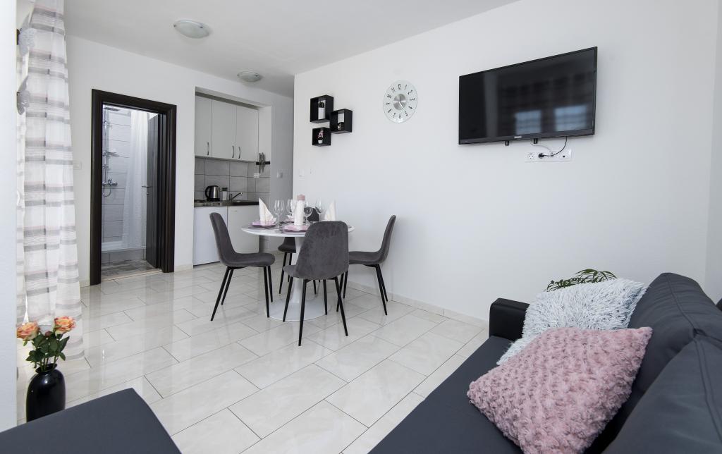 Komplett renovierte, klimatisierte Apartments mit Meerblick in einem ruhigen Touristenort. In der Nähe verschiedener Serviceeinrichtungen, Geschäfte, Bars, Restaurants. Am Sandstrand werden neben dem klaren Meer verschiedene Sport- und Freizeitmöglichkeiten angeboten. Unsere Gäste haben auch Ermäßigungen auf bestimmte Restaurants, Rafting, Bootsfahrten durch die Schlucht des Flusses Cetina, Bootsfahrten zur Insel Brac, Jet-Ski, Bootsverleih und Bananen- und Röhrenfahrten für die Jüngsten. Der Preis beinhaltet Internet, SAT, Privatparkplatz und die Nutzung des Außengrills.