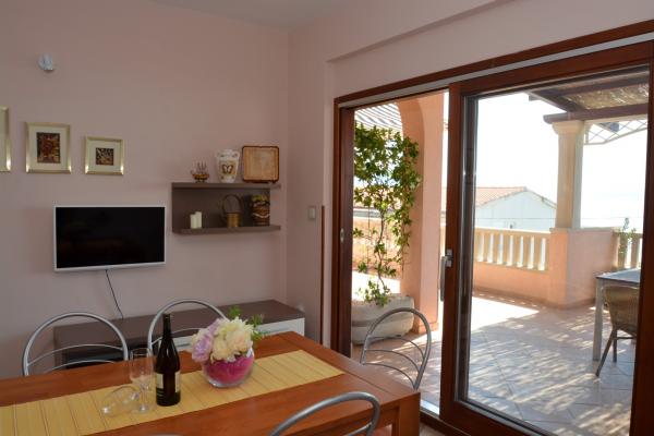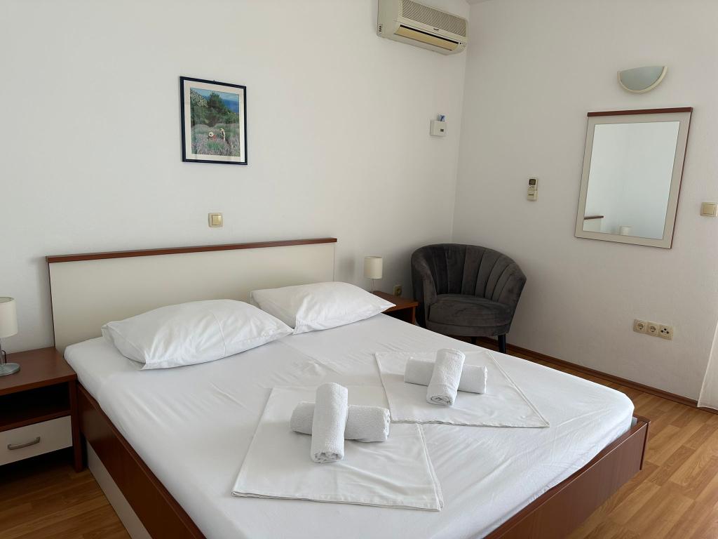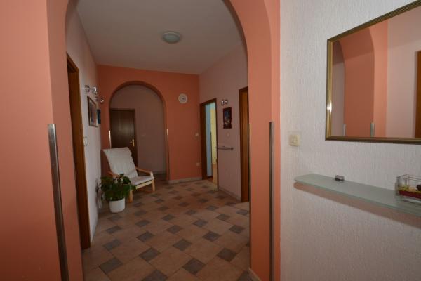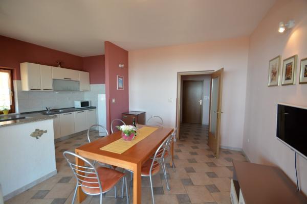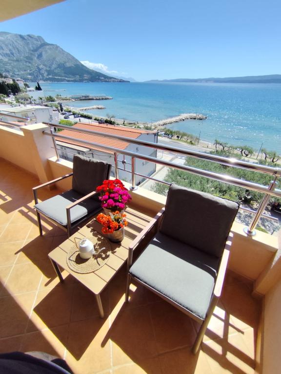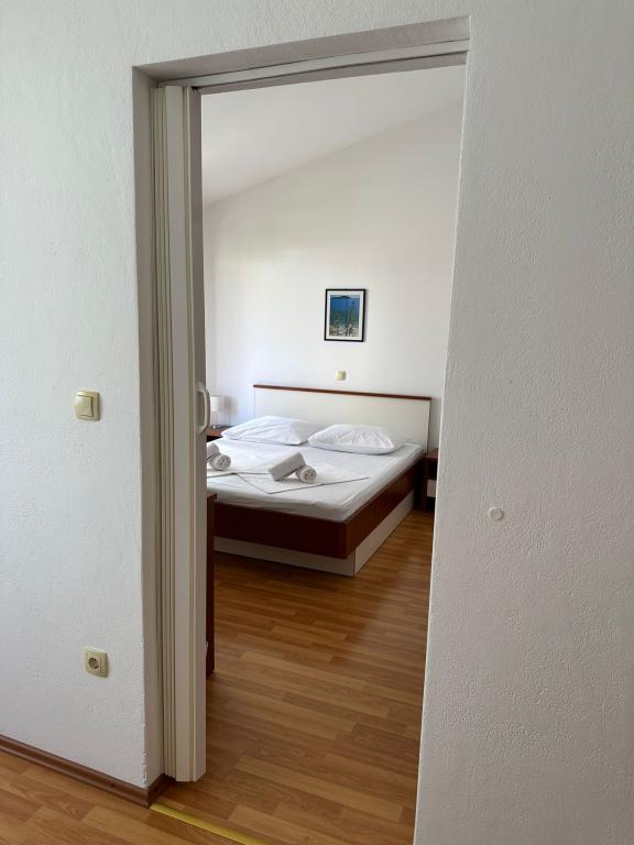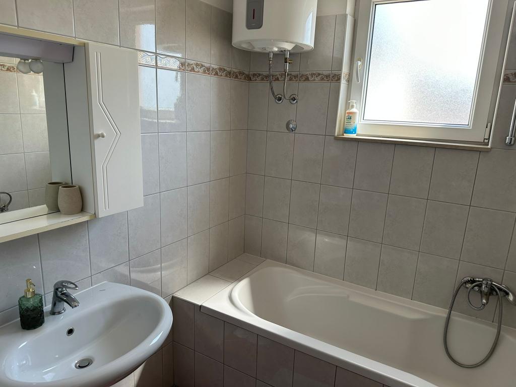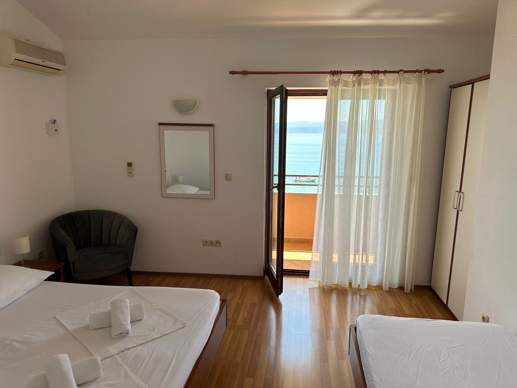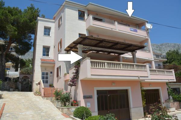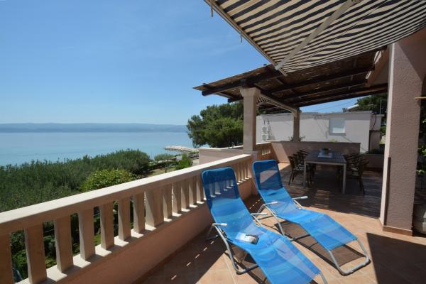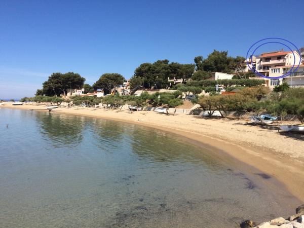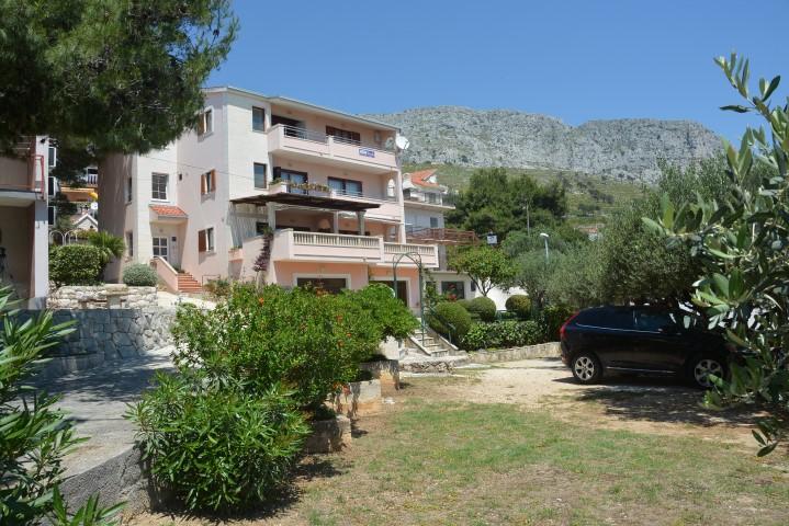 Wir bieten zwei geräumige und gut ausgestattete Apartments mit Meerblick, 50 m vom Sandstrand entfernt. Die Apartments sind für 8 Personen ausgelegt - sie sind ideal für eine Gruppe von Freunden oder Familien mit Kindern. Die Unterkunft bietet kostenlose Parkplätze, WI-Fi, Hof, Grillplatz. Apartment A1 besteht aus vier Doppelzimmern, jedes mit eigenem Bad, großer Terrasse und Küche. In der Küche gibt es eine Mikrowelle, Geschirrspüler, Kühlschrank, Herd. Apartment A2 besteht aus drei Zimmern; Ein Zimmer besteht aus zwei Doppelbetten für vier Personen, das andere ist ein Doppelzimmer und das dritte besteht aus einem Doppelbett und einem Einzelbett. Jedes Zimmer hat ein Badezimmer. Die Wohnung verfügt über eine große Küche und eine Terrasse mit Meerblick. Jedes Apartment verfügt über einen TV im Sitzbereich. Die Unterkunft befindet sich 2 km von der Stadt Omis und nur 50 m vom nächsten Restaurant entfernt. Die Bushaltestelle befindet sich direkt neben dem Haus, was eine gute Verkehrsanbindung an das 20 km entfernte Split bietet.