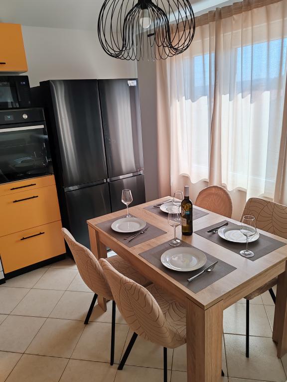 Die Wohnungen befinden sich in einer ruhigen Gegend Duce, zweite Reihe von magistrale.Moderno eingerichtet und mit allem, was für die perfekte odmor.Posebno geeignet für Familien mit Kindern wegen der großzügigen Terrasse und die Nähe zum Strand (keine Notwendigkeit, die Straße zu überqueren). Fazilität liegt 15 Minuten entfernt benötigt ausgestattet entfernt. zu Fuß zum Stadtzentrum und 2 Minuten zu Fuß zum plaže.Mogućnost, Boote zu mieten, Jet-Ski, der Organisation von Reisen und viele andere Unterhaltungsmöglichkeiten.
