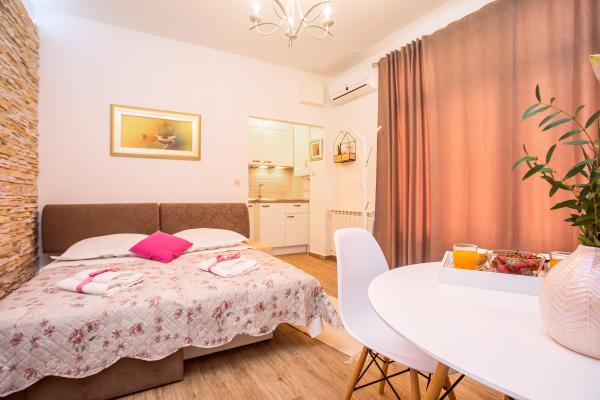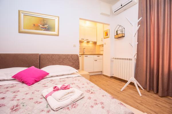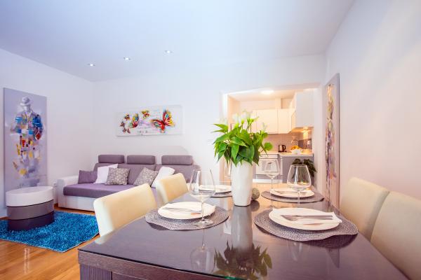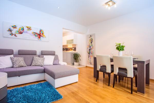 Neue Wohnung gut in der ruhigen Umgebung von Split ausgestattet. Die Wohnung befindet sich nur 2 Minuten zu Fuß vom Stadtzentrum und 5 Minuten vom Strand entfernt und neben der Sportanlage entfernt. Die Wohnung befindet sich in einer ruhigen Straße im ersten Stock eines privaten Hauses. Eingeschlossen sind: Klimaanlage; TV mit 900 Programmen; Wi-Fi Internet; Spülmaschine, Waschmaschine und eine voll ausgestattete Küche. Die Wohnung verfügt über ein Schlafzimmer mit Doppel krevettom, Wohnzimmer mit Schlafsofa, 1 Bad und einen Balkon mit Tisch und Stühlen, und eine Garage für das Auto. Doamćin ist für jede Coyne Hilfe und Beratung zur Verfügung. Wir freuen uns auf jede Ihrer Ankunft.