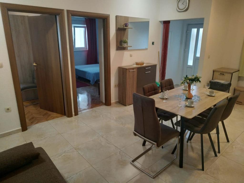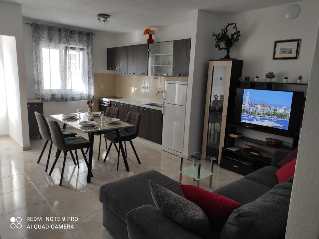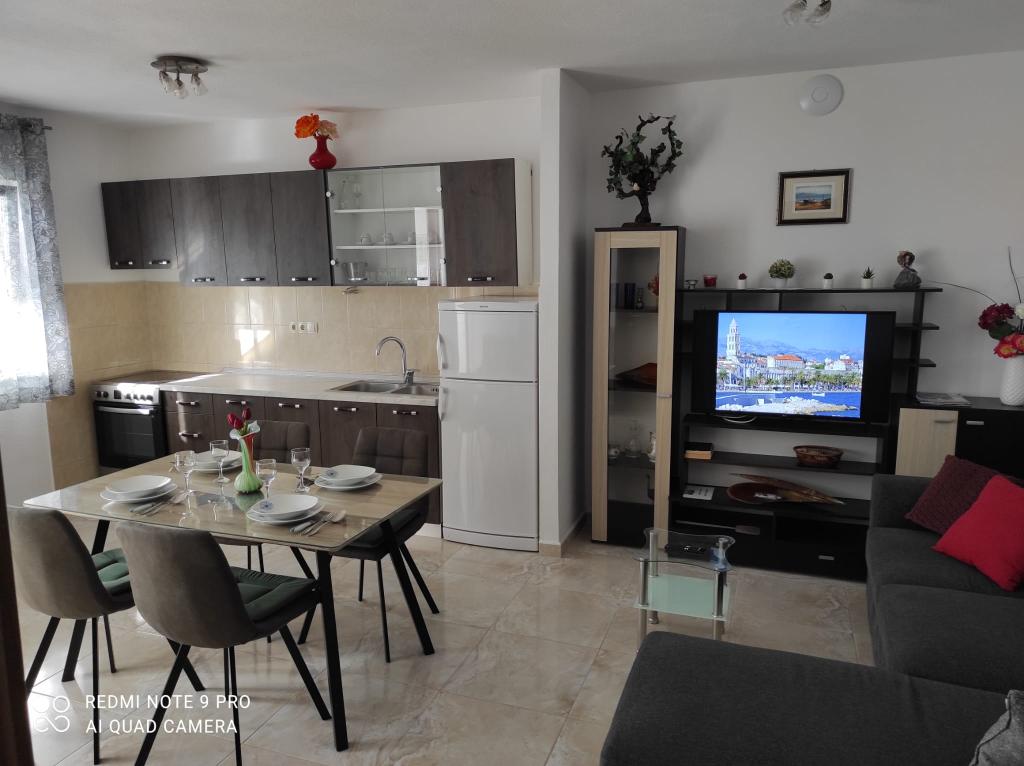 Die Apartments Mušac befinden sich in Dugi Rat - Duće mit seinen wunderschönen Stränden und viel Sonne, nur 25 km von Split oder Makarska und 5 km von Omiš entfernt! Die erste Wohnung für 6 Personen befindet sich im ersten Stock (Erdgeschoss) des Hauses. Es besteht aus zwei großen Schlafzimmern, zwei Toiletten, Wohnzimmer, Küche und Terrasse. Ein Grill ist ebenfalls vorhanden. Die zweite Wohnung (Neubau, Baujahr 2024 im Dachgeschoss) für 7 Personen befindet sich im letzten Stock des Einfamilienhauses. Es besteht aus drei Zimmern, einem Wohnzimmer, einer Küche, zwei Toiletten und einem Balkon. Die Apartments liegen 100 Meter vom Strand entfernt. Vom Balkon aus hat man einen wunderschönen Blick auf die Adria und die Insel Brač. Für unsere Gäste stehen für jede Wohnung zwei Parkplätze vor dem Haus zur Verfügung. Endreinigung und Kurtaxe sind im Preis inbegriffen. Im Zentrum von Dugi Rat (nur 10 Gehminuten entfernt) gibt es Supermärkte, Cafés, Post, Bäckerei, Kirche, Wechselstube... 5 km von Dugi Rat entfernt liegt Omiš und 20 km von Split. Omiš ist bekannt für den Fluss Cetina (Rafting, Seilrutsche).