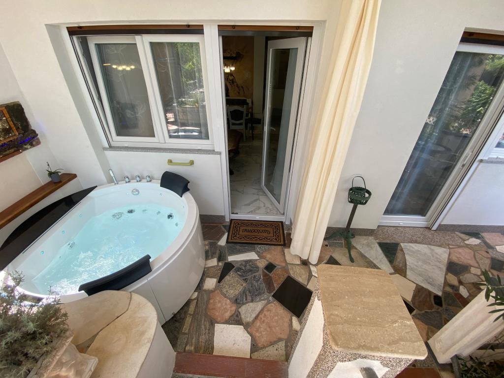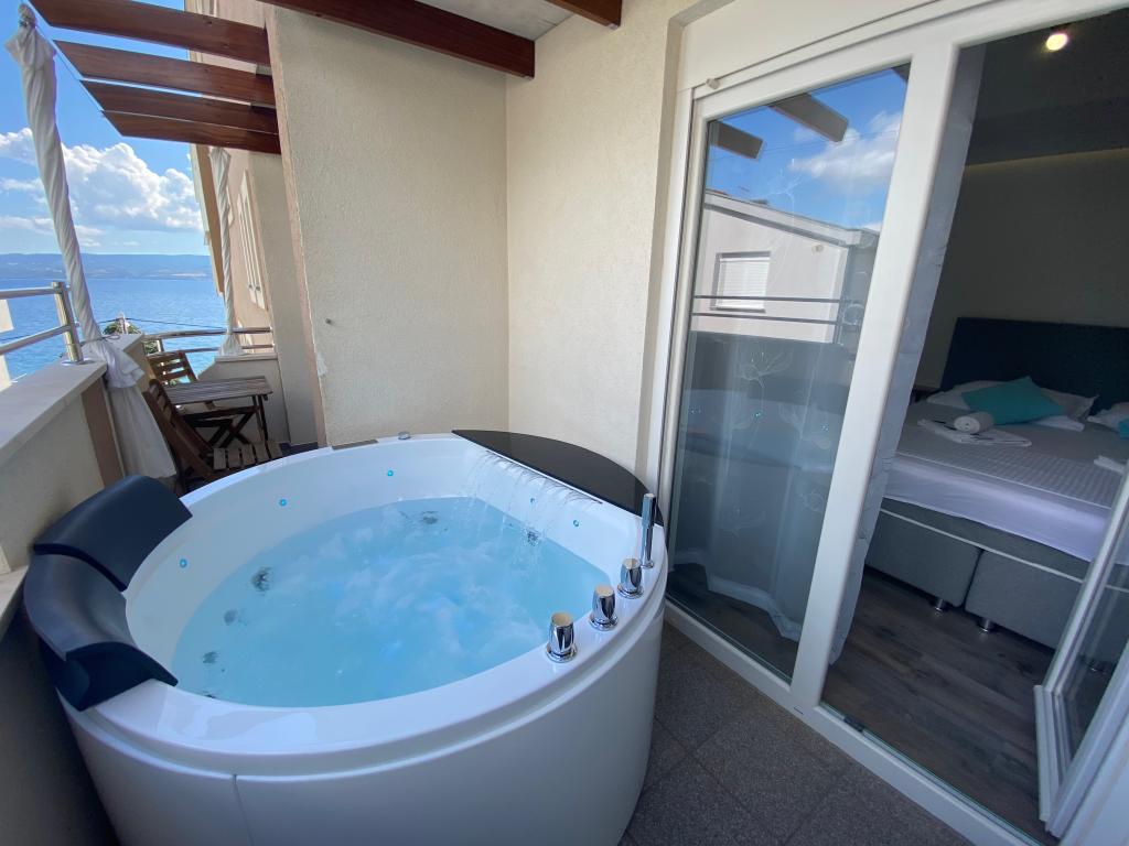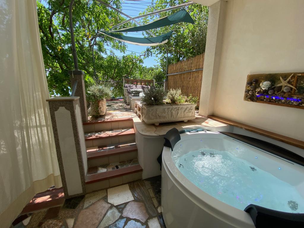 Luxuriös ausgestattete Apartments in einer ruhigen Gegend mit privater Hydromassage-Badewanne (Jacuzzi) in erster Reihe zum Meer. Vor dem Haus befindet sich ein Kieselstrand und in der Nähe ein Strandcafé. Kostenlose Parkplätze stehen vor Ort zur Verfügung.