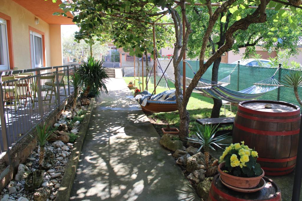 Ich kann die Apartments von Ingrid und Mauricio Bencic wärmstens empfehlen. Perfekte Lage, nur 5 Minuten zu Fuß vom Hauptstrand und dem Zentrum entfernt. Die Apartments sind sauber, groß und mit allem ausgestattet, was Sie brauchen: Waschmaschine, Geschirrspüler, komplette Küchenausstattung, Handtücher, Strandmatten, Klimaanlage, Wäschetrockner. Im Garten gibt es Schaukeln, Hängematten, ein Trampolin, ein Badmintonnetz und ... Schildkröten, die auf dem Rasen laufen Großer schattiger Esstisch im Freien. Besitzer nett, hilfsbereit, mit wundervollen Hunden. Wir empfehlen es wärmstens weiter und bedanken uns für einen tollen Urlaub!