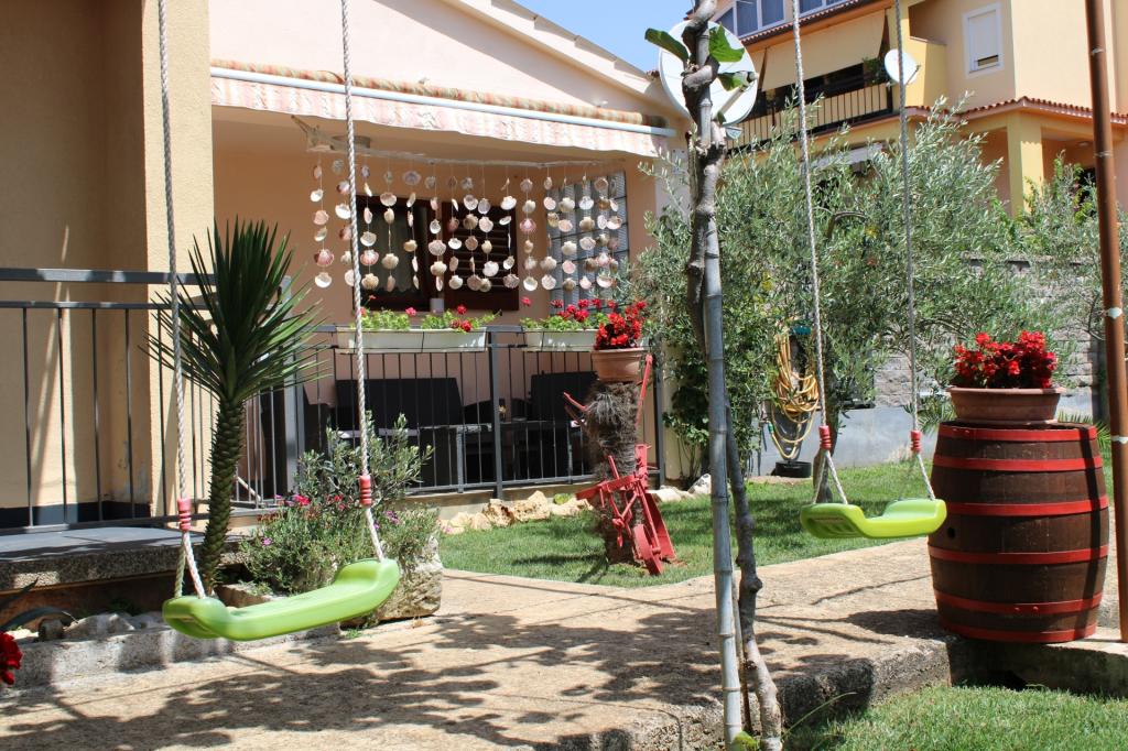 Die Wohnung verfügt über 3 voll ausgestattete Schlafzimmer, 2 Badezimmer, 1 Küche und ein Wohnzimmer mit großem Sofa, sodass genügend Platz für zwei Familien vorhanden ist. Außerdem können Sie draußen auf der überdachten Terrasse mit großem Tisch essen. Sie können sich hier auch vor der Sonne schützen. Der große Garten mit Schaukeln und einem Trampolin ist großartig für Kinder. Der Eigentümer hat hier kleine Schildkröten, die so süß sind. Es ist nicht weit vom Meer und vom Stadtzentrum mit Kneipen und Restaurants entfernt, aber Sie haben hier trotzdem Privatsphäre ohne Lärm. Die beiden Gastgeber sind wirklich hilfsbereit und nett. Wir waren zweimal hier und werden sicher wiederkommen, wenn wir Fažana besuchen!