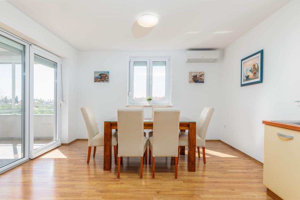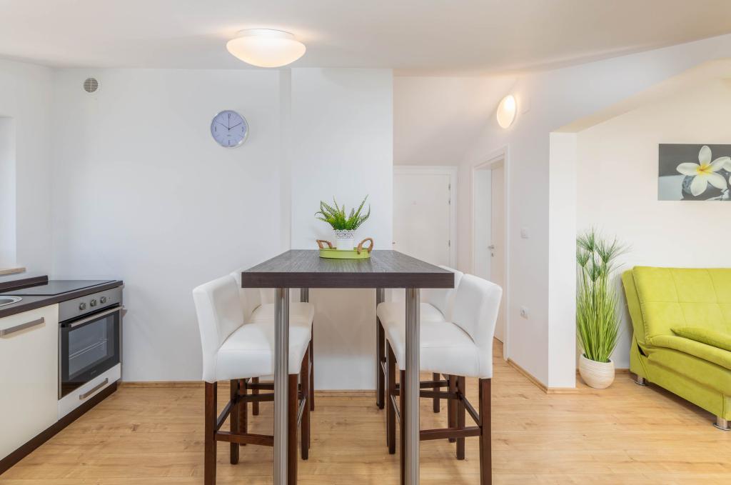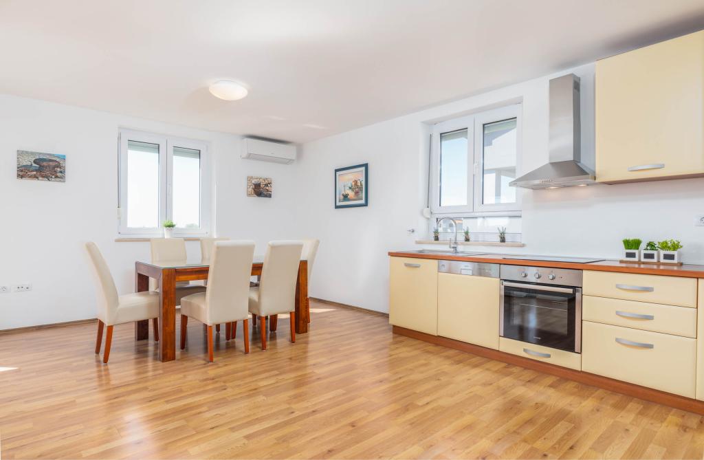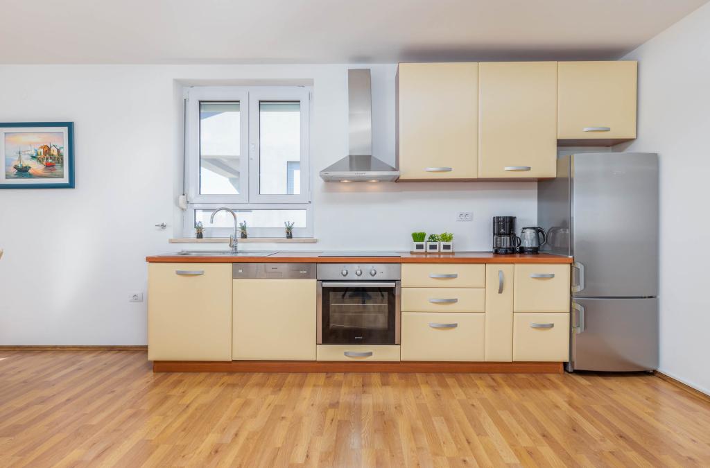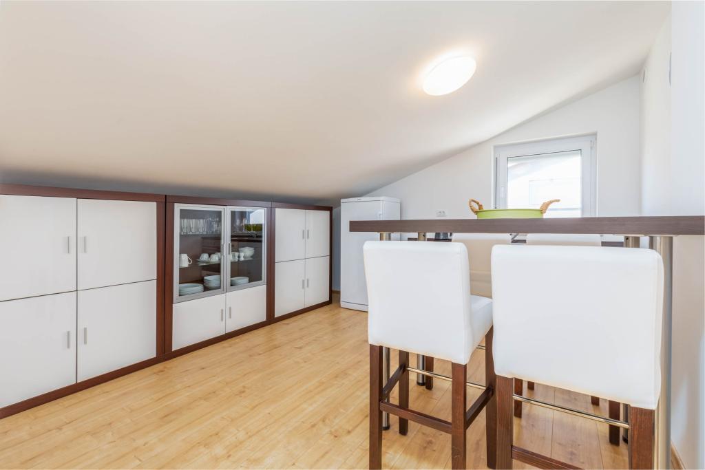 Neue, komfortable Wohnungen in einem 2014 erbauten Haus. Sie liegen nur 800 m vom Strand und dem Stadtzentrum entfernt, in einem grünen und ruhigen Teil von Fažana. Sie befinden sich im ersten und zweiten Stock des Familienhauses und bieten absolute Privatsphäre sowie die Möglichkeit zur Entspannung und Erholung. Die Nachbarschaft ist sehr ruhig, es gibt nur wenige Einfamilienhäuser in der Gegend. Andererseits ist es nicht weit vom Strand und dem Stadtzentrum entfernt. Der nächste Markt ist 5 Gehminuten entfernt. Im Zentrum der Stadt gibt es viele Restaurants, Cafés, Geschäfte, Souvenirläden, Apotheke, Arzt, Post, Bank, Bushaltestelle, Geldautomaten – alles, was Sie für einen perfekten Urlaub brauchen.