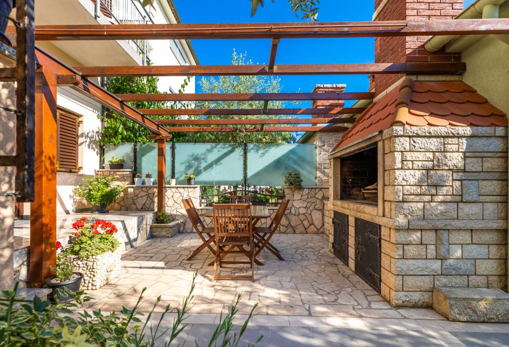 Haus im neuen Stadtteil Fažane, in einer ruhigen Straße, besonders attraktiv für Familien mit Kindern. Es gibt einen Grill und einen privaten Parkplatz im Hof. 5 Gehminuten vom Zentrum und dem Strand entfernt. Jede Wohnung ist klimatisiert, verfügt über eine große Terrasse und kostenfreies WLAN.