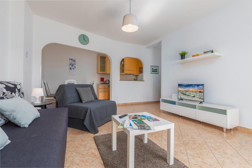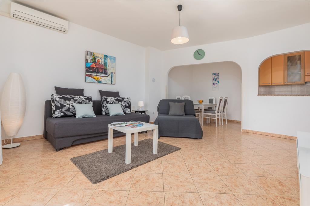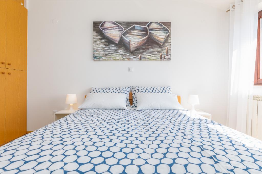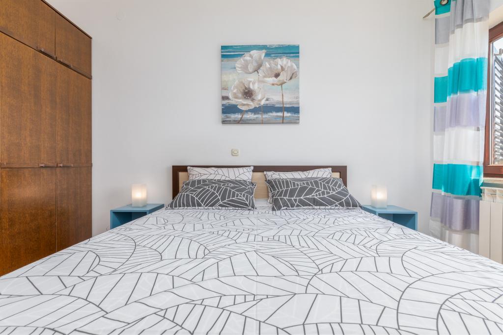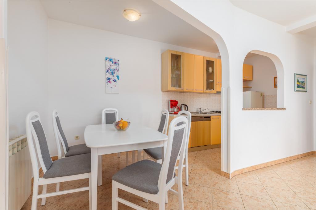 Das Apartment liegt im 1. Stock eines sehr schönen und gepflegten Hauses. Die Vermieter sind sehr zuvorkommen und freundlich. Wir wurden zu einem ganz tollen Essen mit frisch gefangenem gegrillten Wolfsbarsch eingeladen. Das ganze Haus und vor Allem unser Apartment waren sehr sauber und schön eingerichtet. Wir hatten eine komfortable Küche, ein großes Bad und einen Balkon über die gesamte Hausseite zur Südwest-Seite mit ausreichend Platz zum Trocknen der Strandhandtücher und Badesachen. Zum Strand sind es ca. 200, ins Ortszentrum 350 m. Besser hätten wir es nicht treffen können. Diese Vermieter und die Apartments sind uneingeschränkt zu empfehlen.
