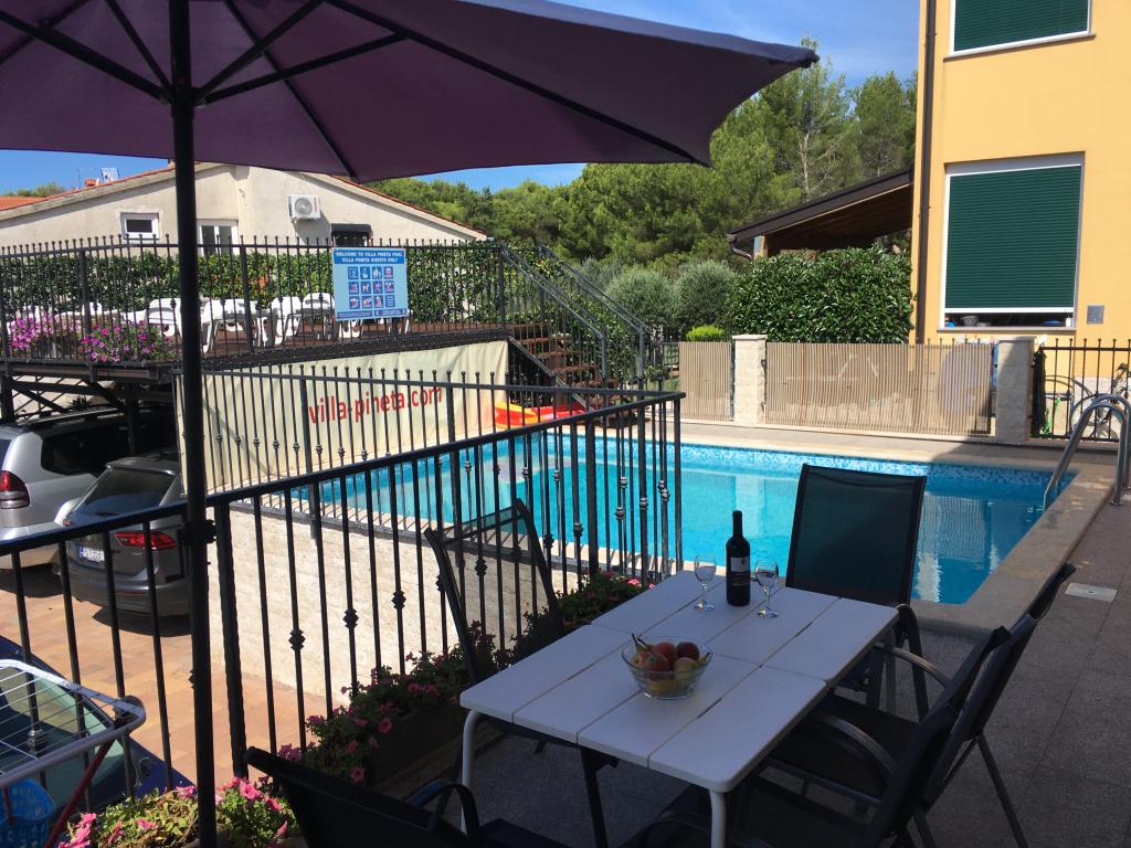 Die Villa Pineta in Fažana, nahe dem Nationalpark Brijuni und dem Camp Pineta, nur 650 m vom Strand entfernt, bietet einen unvergesslichen Urlaub in 5 modern ausgestatteten und komfortablen Suiten. Die Villa mit Meerblick bietet Entspannung, Genuss an frischer Meeresluft und die Vorteile eines nahe gelegenen Kiefernwaldes, Erholung und Aktivurlaub. Die Apartments sind klimatisiert und verfügen über kostenlosen Internetzugang und Sat-TV. Für jede Wohnung stehen zwei Parkplätze zur Verfügung. Das Parken ist auch von Überwachungskameras überwacht.