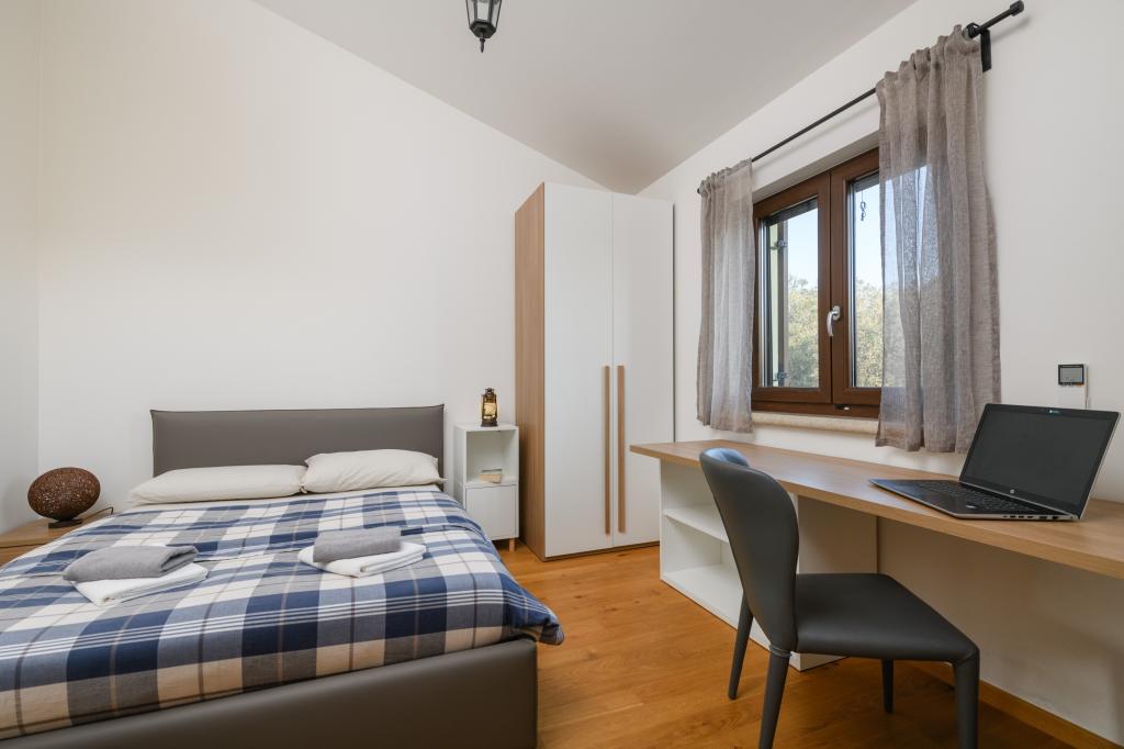 Apartment Ana Bruna, im ersten Stock eines neu gebauten Einfamilienhauses gelegen, befindet sich in einem ruhigen Teil von Fazana, umgeben von Olivenhainen und Weinbergen. Modern und komplett ausgestattet, bietet es eine komfortable Unterkunft für alle, die Entspannung und Spaß suchen. Der äußere Teil des Hofes ist für Entspannung und Geselligkeit eingerichtet, und es gibt zwei Parkplätze. Das Gebäude selbst ist 10-15 Gehminuten vom Strand oder der Uferpromenade von Fažana entfernt. Fažana liegt im südwestlichen Teil Istriens und ist von zahlreichen landschaftlich gestalteten und natürlichen Stränden umgeben. In unmittelbarer Nähe von Fažana befindet sich der Nationalpark Brijuni-Inseln, der Sie mit seiner Natur und seinen kulturellen und historischen Überresten verzaubern wird. Reichhaltige Sommeranimationsprogramme und Veranstaltungen in Fažana sowie die Möglichkeit, verschiedene Erholungsmöglichkeiten zu wählen, sorgen für einen unvergesslichen Sommer für jeden Geschmack.