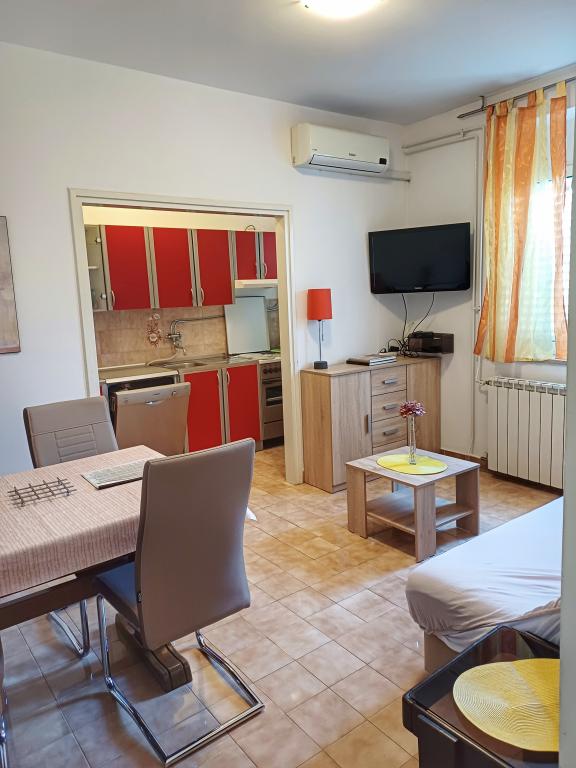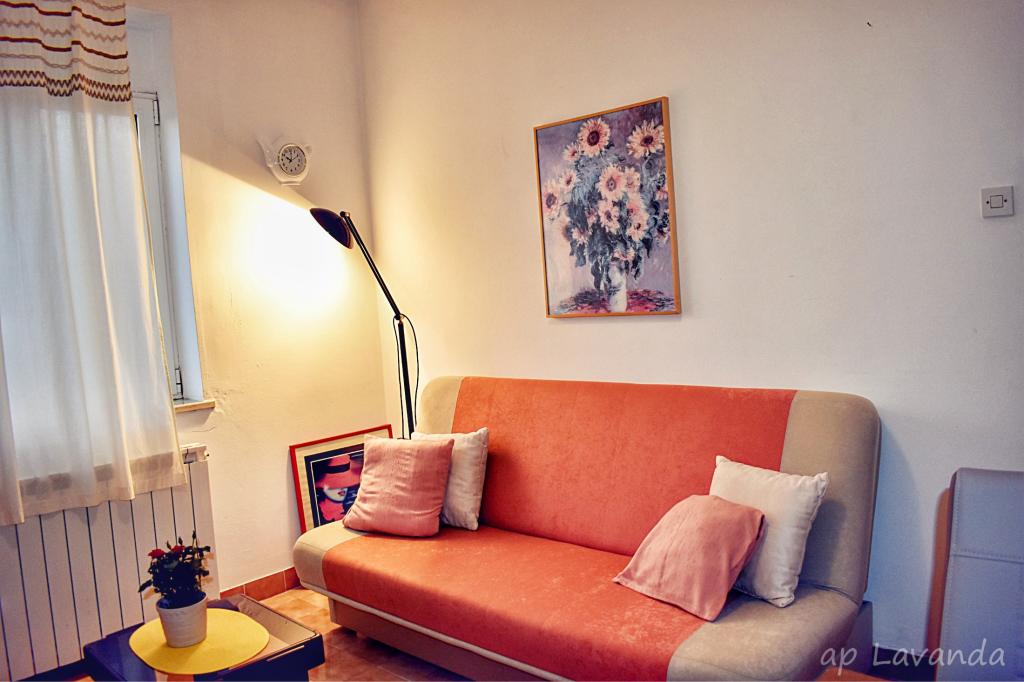 Das Apartment Lavanda 18 befindet sich in einer ruhigen Gegend im Dorf Valbandon. Es ist 850 m vom Meer und 2 km vom Zentrum von Fažana entfernt. Zum nächstgelegenen Strand mit natürlichem Schatten und Promenade sind es 15 Gehminuten. Die Wohnung befindet sich im Erdgeschoss eines Familienhauses, umgeben von viel Grün und einem großen Hof (ideal zum Spielen für Kinder und zum Ausruhen und Entspannen mit Grillmöglichkeit). Im Hof gibt es einen privaten Parkplatz mit natürlichem Schatten (für 2 Autos). Die Wohnung verfügt über einen eigenen Eingang und bietet Platz für bis zu 4 Personen. Es besteht aus: Flur, Schlafzimmer mit Doppelbett, Schlafzimmer mit 2 Einzelbetten, Badezimmer, Küche, Esszimmer, Wohnzimmer und großer Terrasse. Die Küche ist voll ausgestattet (Herd mit Backofen, Dunstabzugshaube, Kühlschrank mit Gefrierfach, Geschirrspüler, Mikrowelle, Wasserkocher, Kaffeemaschine, Mixer, Saftpresse, ausreichend Geschirr zum Zubereiten und Servieren von Speisen. Weitere Annehmlichkeiten: Sat.-TV, WLAN, zwei Klimaanlagen, Schreibtisch für einen Laptop.