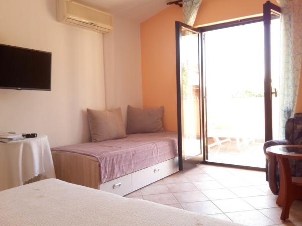 Voll ausgestattete Apartments in Funtana, 300 Meter vom neuen Kiesstrand und 100 Meter vom nächsten Restaurant und Geschäft entfernt. Alle Wohnungen verfügen über eine Terrasse, ein oder zwei Schlafzimmer, ein bis zwei Badezimmer, Wohnzimmer mit Esszimmer, Klimaanlage, kostenfreies WLAN und Parkplätze vor Ort. Der Hof ist mit einem großen umzäunten Garten mit Rosengarten, einem Grillplatz und zwei überdachten Veranden geschmückt. Willkommen!