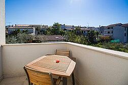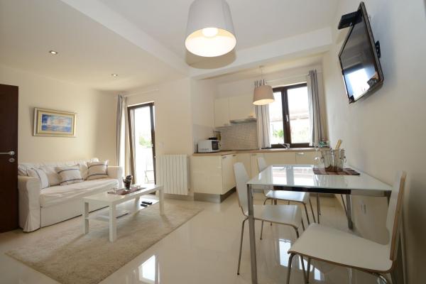 Luxuriös ausgestattete Apartments, eine ruhige Lage im Zentrum der Stadt, abseits des Verkehrslärms, umgeben vom Grün der Eichenwälder und Olivenhaine, mit dem Geruch des Meeres und dem Rauschen der Masten sorgen für unvergessliche Momente in Ihrem Urlaub .