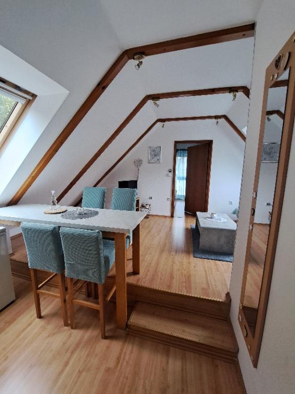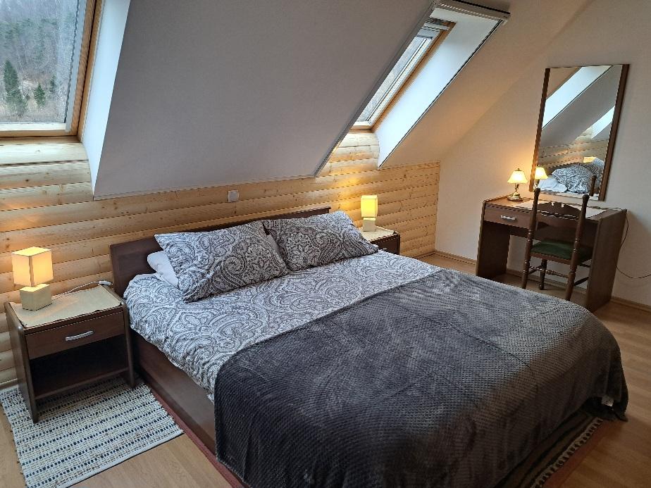 Die Apartments Erika liegen 800 m vom Zentrum von Fužine entfernt. Sie befinden sich in einem Familienhaus mit separatem Eingang für Gäste. Wir haben zwei Appartements, die mit ***- und ****-Sternen kategorisiert sind, und ein Doppelzimmer mit separatem Bad, das mit ***-Sternen kategorisiert ist. Unsere Unterkünfte tragen das Label „Kvarner-Familienqualität“ und sind unter den Marken „Wanderfreundlich“ und „Fahrradfreundlich“ erhältlich. Wir haben Abstellmöglichkeiten für acht Fahrräder. Den Gästen der Wohnung steht unser Garten zur Verfügung, der wunderschön dekoriert ist und viel Grün bietet. Wir haben einen Gartengrill, einen Spielplatz für Kinder, der aus Rutsche, Wippe, Schaukel und einem Badmintonplatz besteht. Die Gäste können in Ruhe den Grillplatz, den Schatten und die frische Bergluft genießen. Die Wohnungen verfügen über Zentralheizung, Klimaanlage und WLAN-Verbindung. In der Nähe befindet sich unser Adrenalinpark (Vara Fun- und Paintballpark), den Sie in den Sommermonaten besuchen können. Kommen Sie und spüren Sie den Charme einer kleinen Stadt in Goran und die heimelige Wärme in unseren Apartments, die viele unserer lieben Gäste gespürt und erlebt haben und die mit vielen Lob und Empfehlungen geantwortet haben. Willkommen!