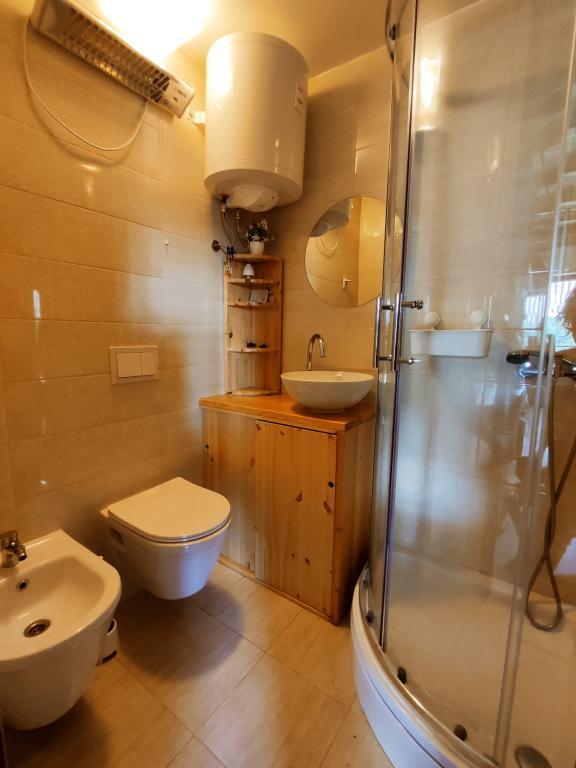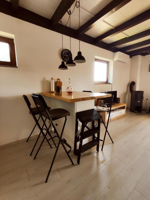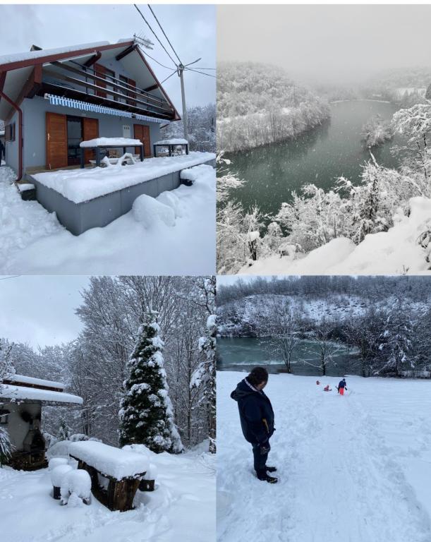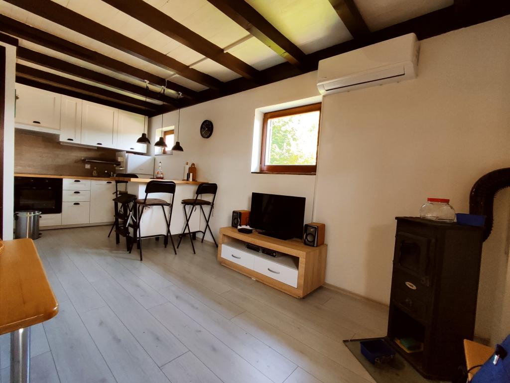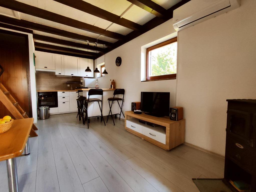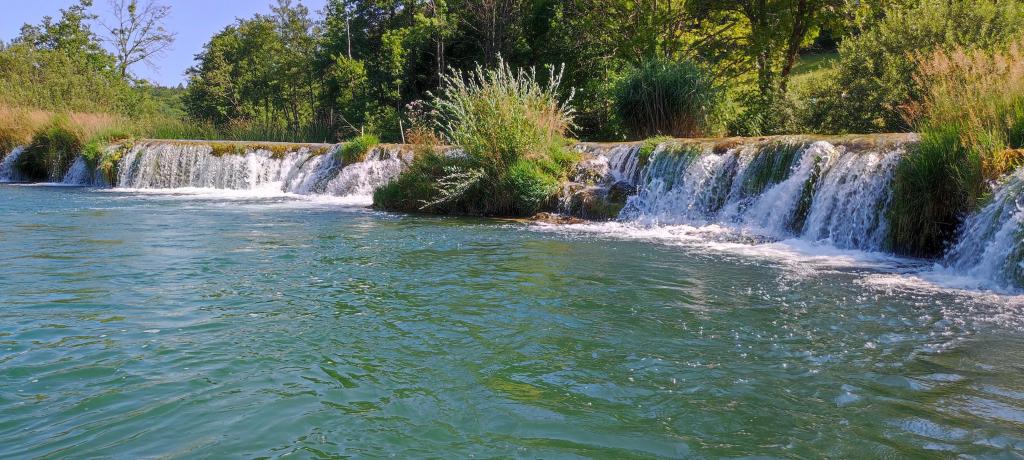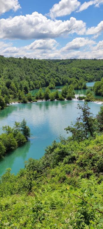 Ein kleines Haus, das selbst die anspruchsvollsten Besucher voll zufriedenstellt. Im Haus finden Sie alles, was Sie für einen unbeschwerten Aufenthalt benötigen, und den Fluss und den wunderschönen Wasserfall erreichen Sie in wenigen Minuten (300 m) zu Fuß. Das Haus liegt an einem sehr ruhigen Ort. Im Stadtzentrum gibt es zwei Geschäfte, ein Postamt und ein Café. Das Haus bietet Aussicht auf den Fluss und den Wasserfall. Da es sich um ein zweistöckiges Gebäude handelt, besteht die Möglichkeit, eine angrenzende Wohnung (5 Personen) zu mieten. Die Wohnung im Erdgeschoss besteht aus einer Küche (Kühlschrank mit Gefrierfach, Backofen und 4 Kochplatten, alles notwendige Geschirr und Küchenutensilien), Wohnzimmer (Schlafsofa, TV, Musikanlage, Brettspiele, Bücher) und Badezimmer (Toilette, Bidet), Dusche und Waschbecken). Im Obergeschoss, im Dachgeschoss, gibt es ein Doppelbett (160x200) und zwei Einzelbetten (90x200) sowie eine kleine Terrasse mit Blick auf den Wasserfall. Im Hinterhof gibt es einen Grill. Die Wohnung ist für maximal 5 Personen + Babybett geeignet, der Mindestaufenthalt beträgt zwei Nächte. Das Haus liegt an einem sehr ruhigen Ort. Im Stadtzentrum gibt es zwei Geschäfte, ein Postamt und ein Café.