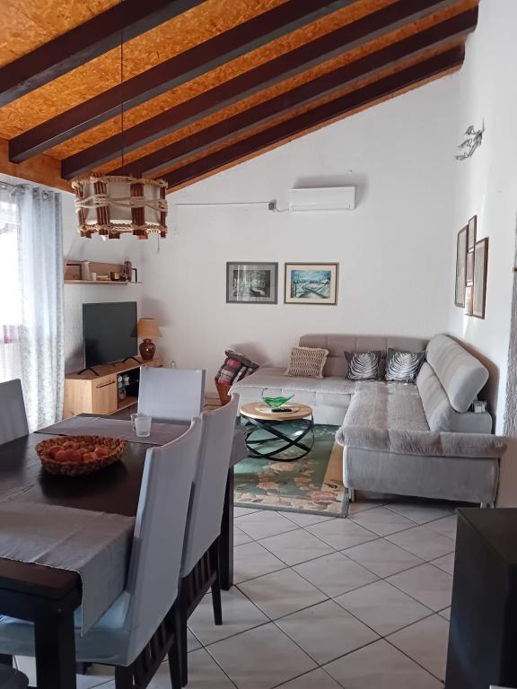 Die Wohnungen sind im Erdgeschoss, die die erste Straße auf das Meer befindet. Sie sind mit Geräten (Kühlschrank, Herd, Backofen. Mikrowelle, Geschirr und Besteck), TV, Parkplätze, sind nicht klimatisiert ausgestattet. Jeder hat seine eigene Terrasse mit Blick auf die Landschaft. Die Möglichkeit der Verwendung Hof Barbecues. Die Wohnungen sind geeignet für eine kleine Familie oder ein Paar. Haustiere sind gegen eine kleine Gebühr willkommen. Handtücher und Bettwäsche werden einmal pro Woche gewechselt. 50 m vom Meer, 200 m vom Stadtzentrum, und der erste Store Sie sofort über die Straße. Obwohl in der Hauptstraße, versteckte Terrassen und Olivenbäume, Granatäpfel entfernt.